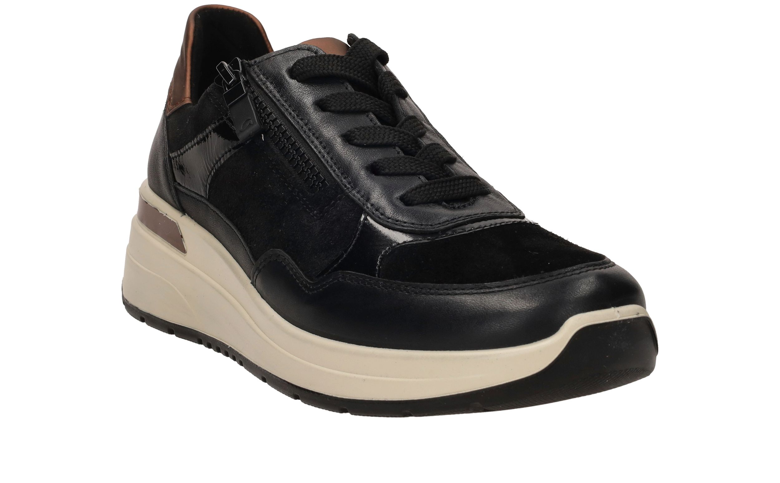 Sportieve Ara Garda sneaker voor dames. Deze zwarte damessneaker loopt heel fijn door de High Soft binnenzool. Ook stap je makkelijk in de schoen door de veter- en ritssluiting.