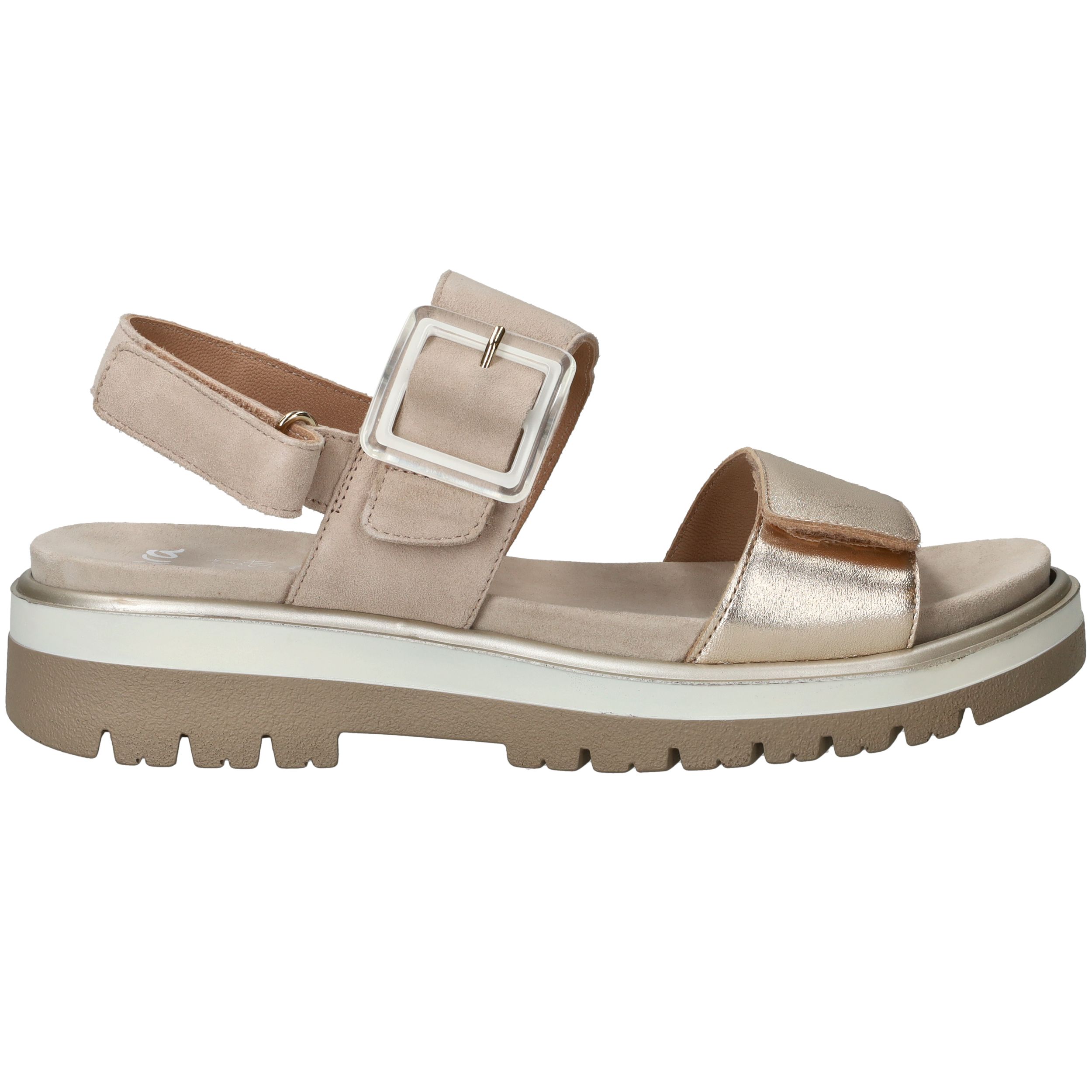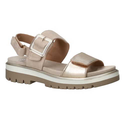 Trendy en comfortabele Ara Malaga S damessandaal. De beige sandaal is makkelijk te combineren en heeft een leuke siergesp.