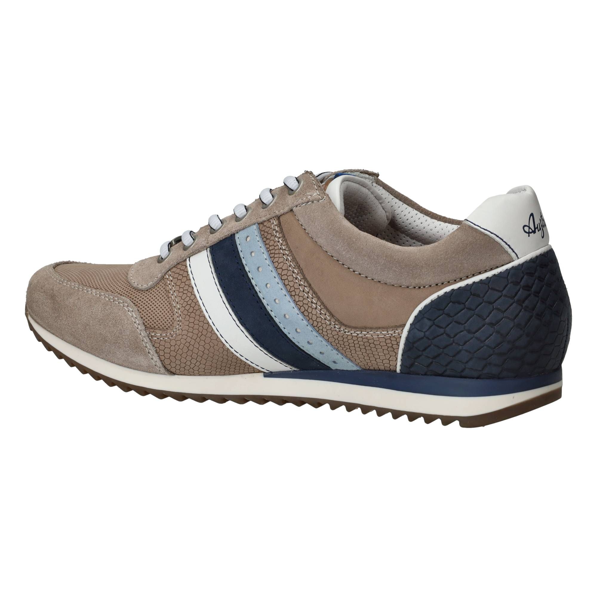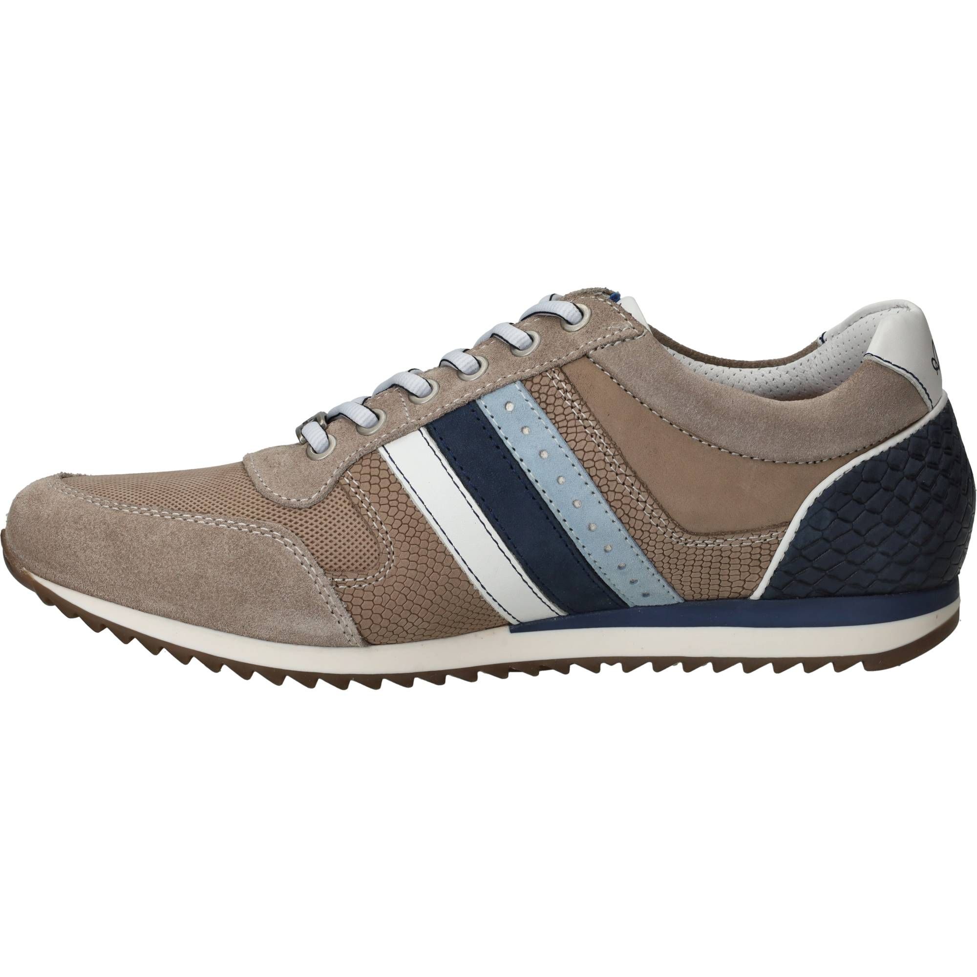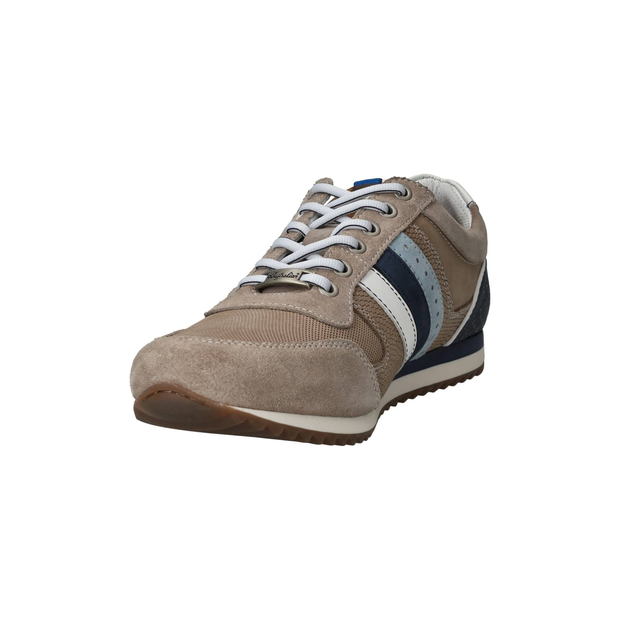 De heren sneakers Australian Camaro in de kleur taupe zijn een fijne toevoeging aan je garderobe. Deze stijlvolle schoen van Australian combineert een sportieve uitstraling met de warme, aardse tint van taupe, waardoor hij gemakkelijk te combineren is met diverse outfits. De schoen voelt licht en comfortabel aan je voeten en is ideaal voor dagelijks gebruik. De zorgvuldige opbouw van de zool zorgt voor een prettige schokdemping bij elke stap, wat bijdraagt aan een ontspannen loopgevoel gedurende de dag.
