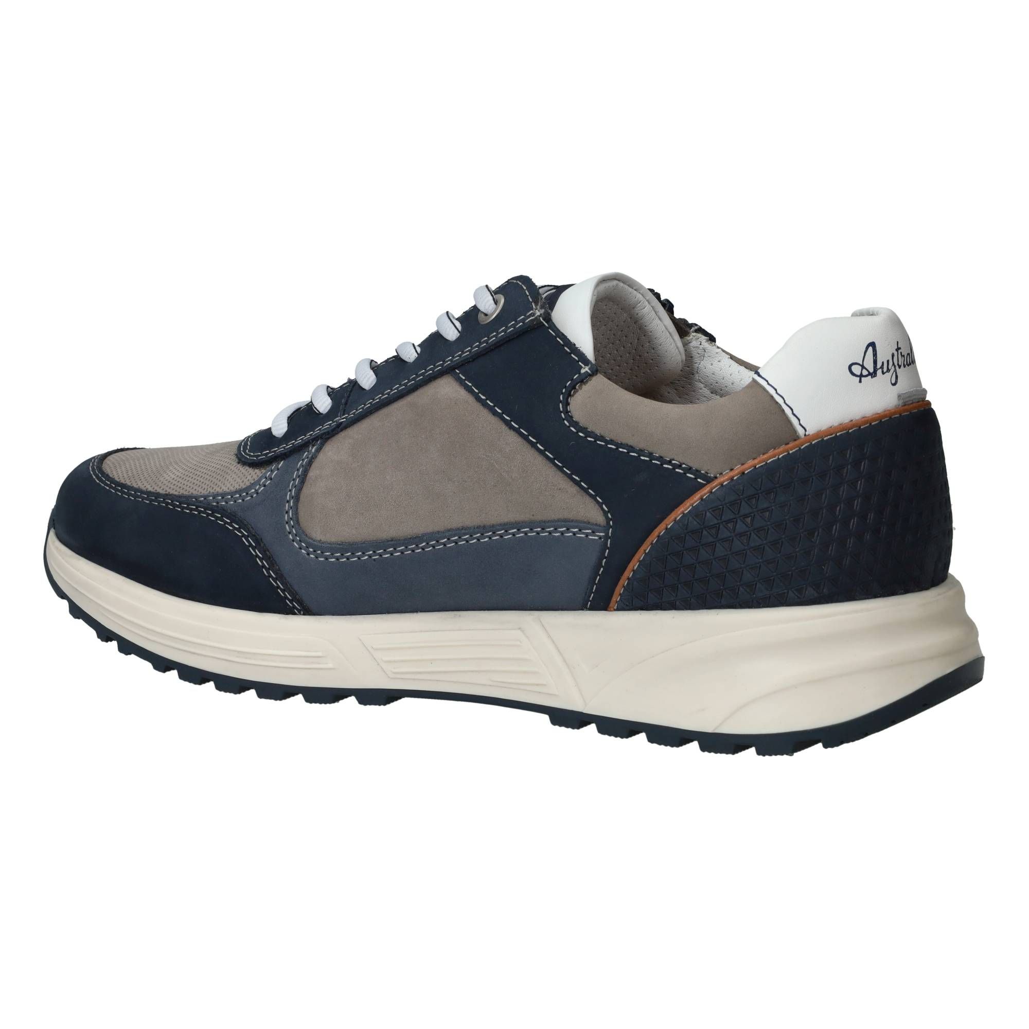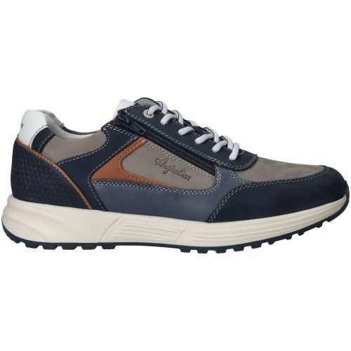 De heren sneakers van Australian, model Australian Hawker, zijn een stijlvolle toevoeging aan elke garderobe, uitgevoerd in een diepblauwe kleur die zowel tijdloos als modern aanvoelt. Deze schoenen combineren het beste van twee werelden: het sportieve van sneakers met het geklede van een nette schoen. Het model heeft een klassieke vetersluiting, aangevuld met een handige rits aan de zijkant, waardoor je de schoen gemakkelijk aan- en uittrekt zonder elke keer de veters opnieuw te hoeven strikken. Het soepele leer vormt zich prettig naar de voet en zorgt voor een comfortabele pasvorm, terwijl de zool een fijne demping biedt die elke stap verzacht en zo bijdraagt aan een rustig loopgevoel gedurende de dag.- De vetersluiting en extra ritssluiting zorgen ervoor dat de schoen goed aansluit en je hem toch gemakkelijk aan- en uit kunt doen.