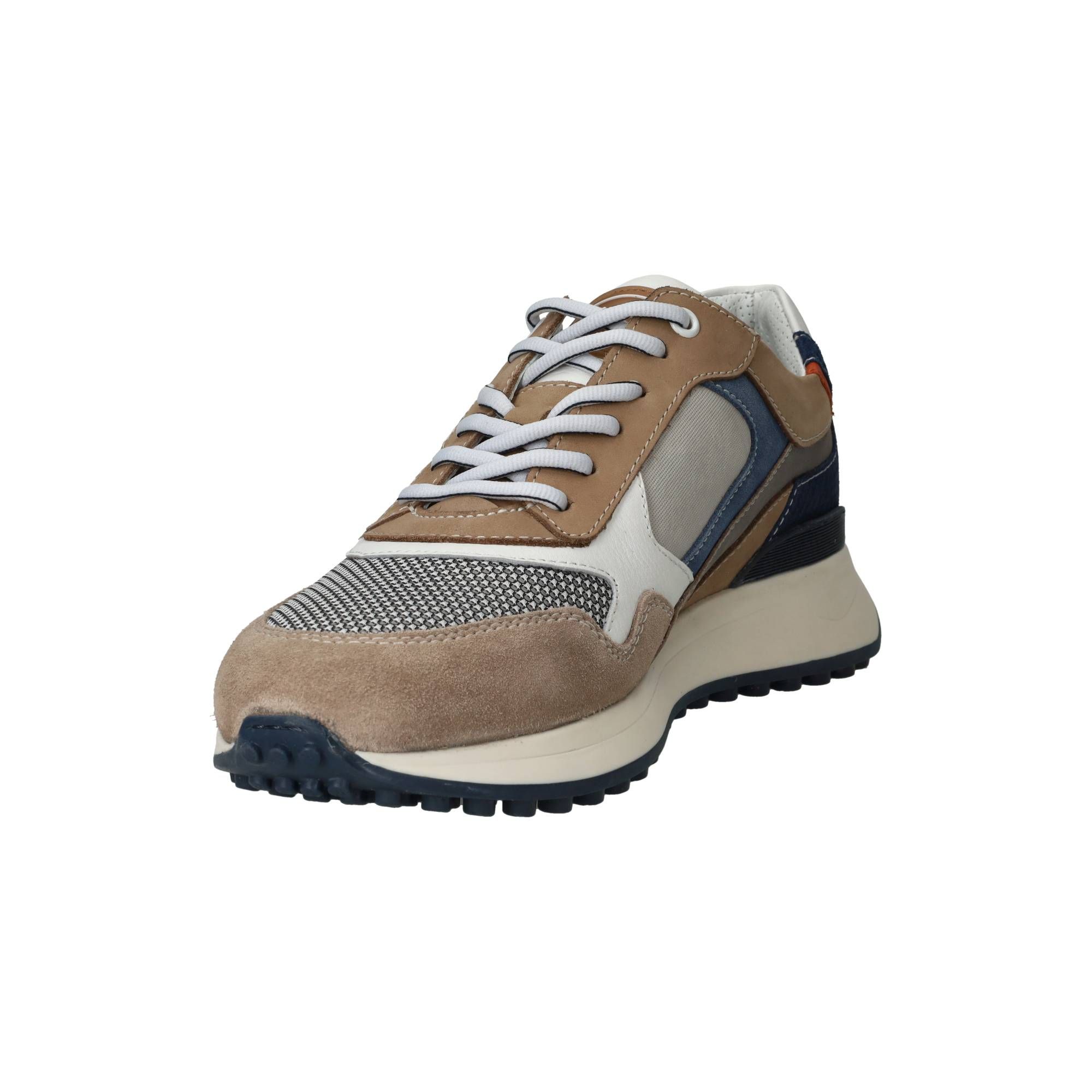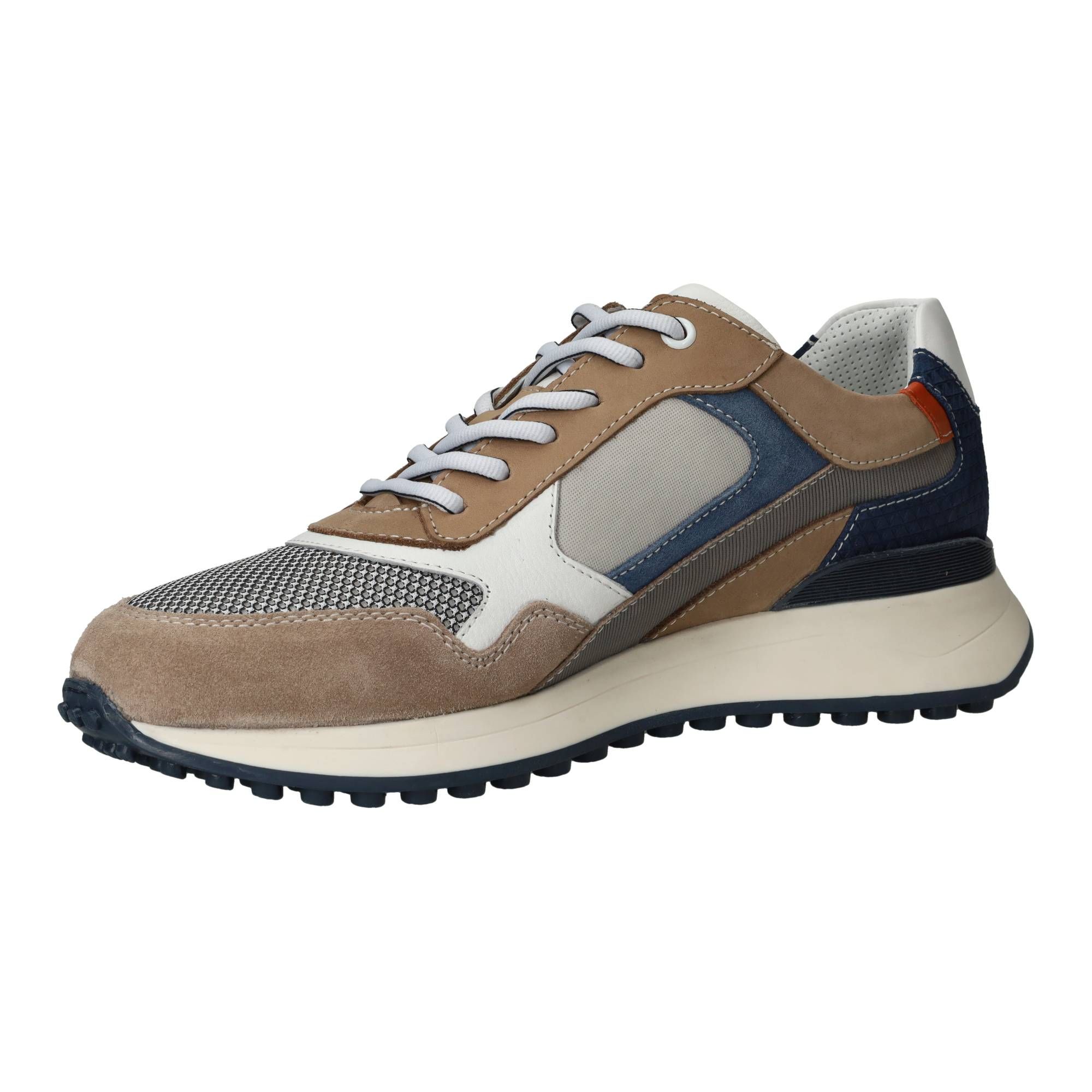 - Het bovenwerk combineert leer en textiel, materialen die samen zorgen voor een prettige ventilatie en een soepel gevoel om de voet.