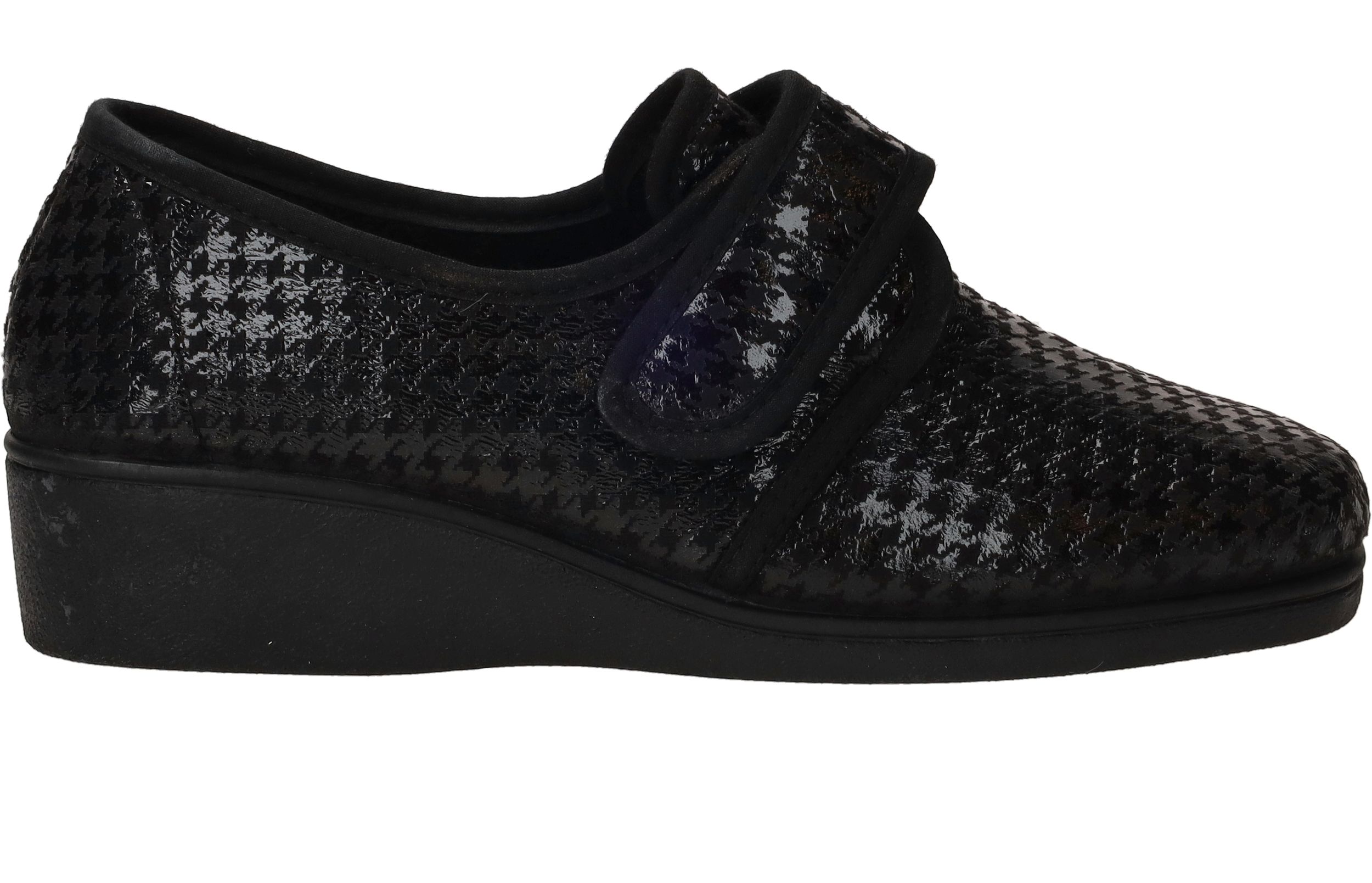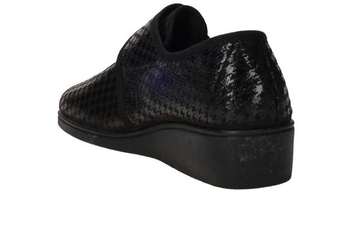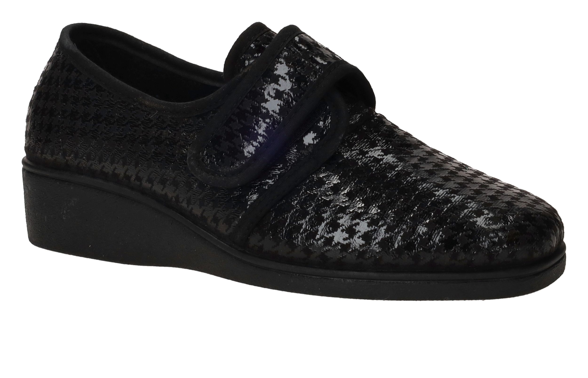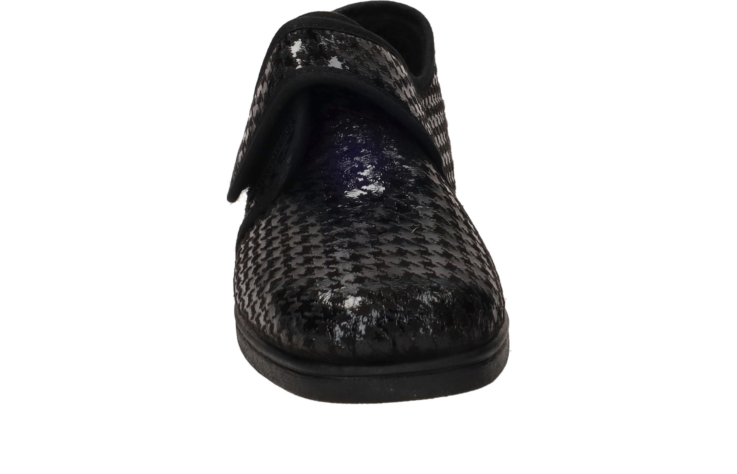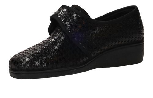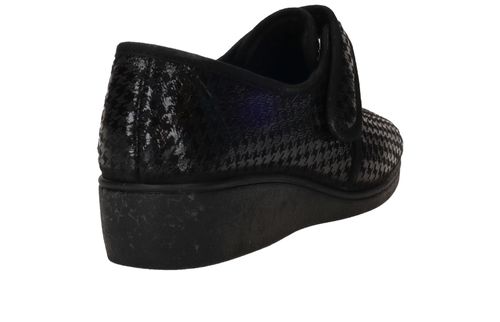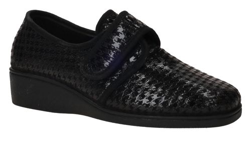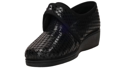 - De damespantoffel heeft een klittenbandsluiting.