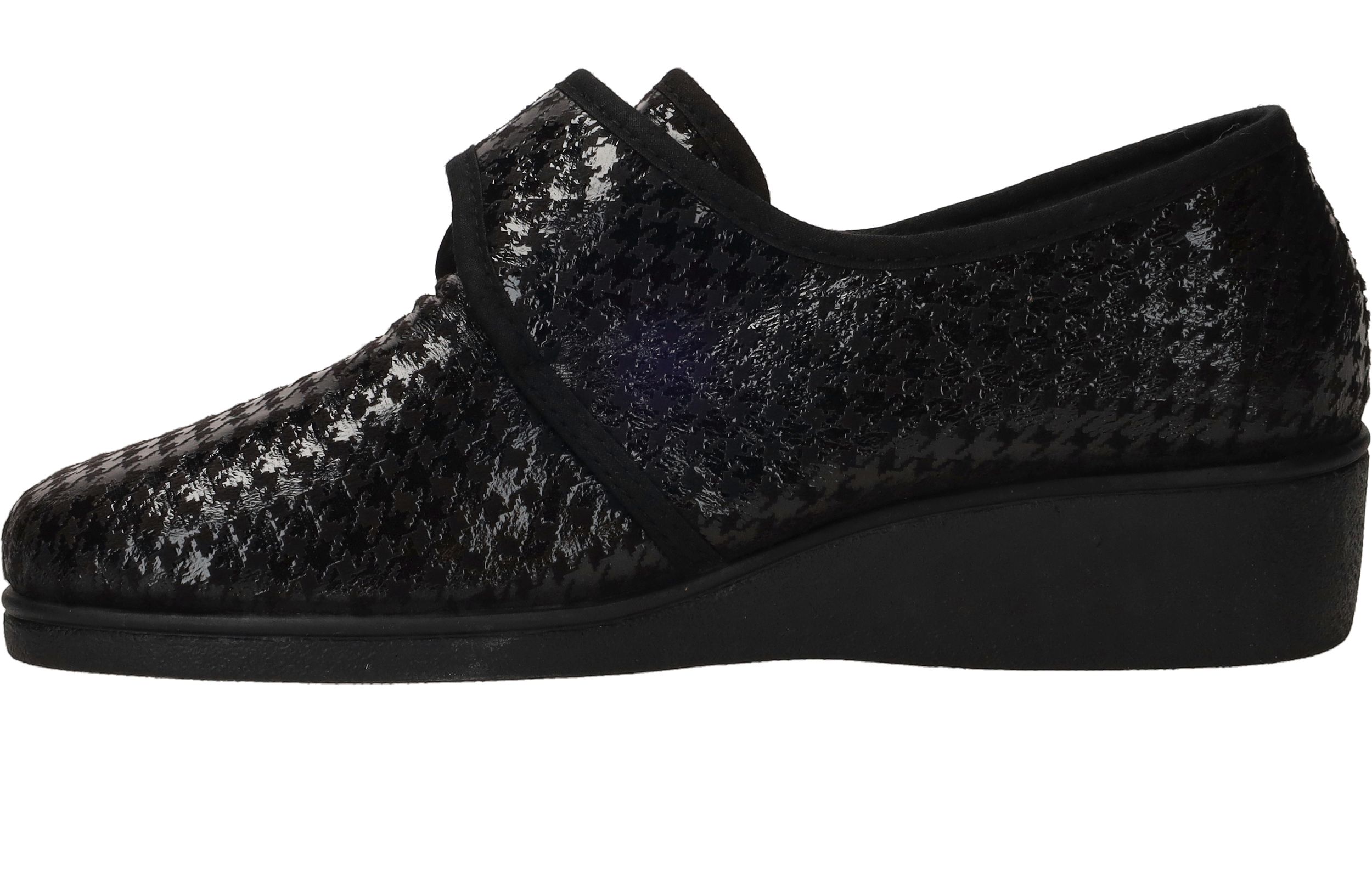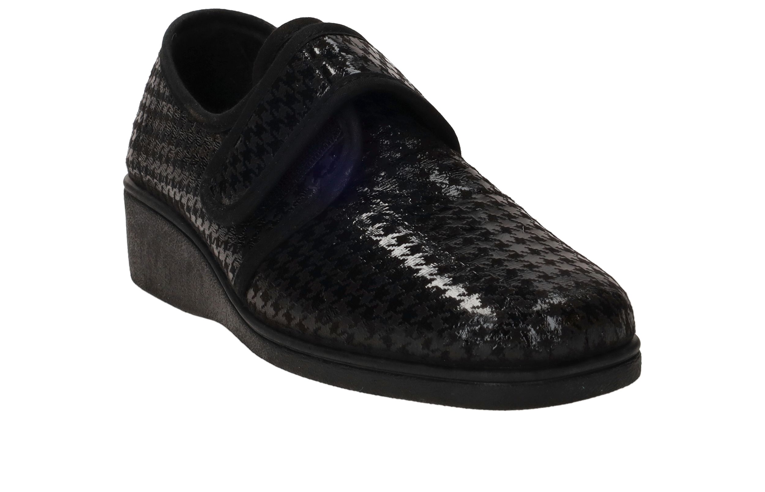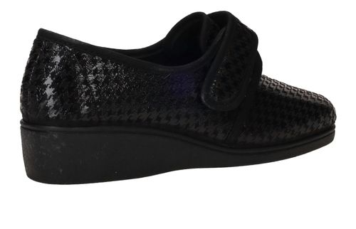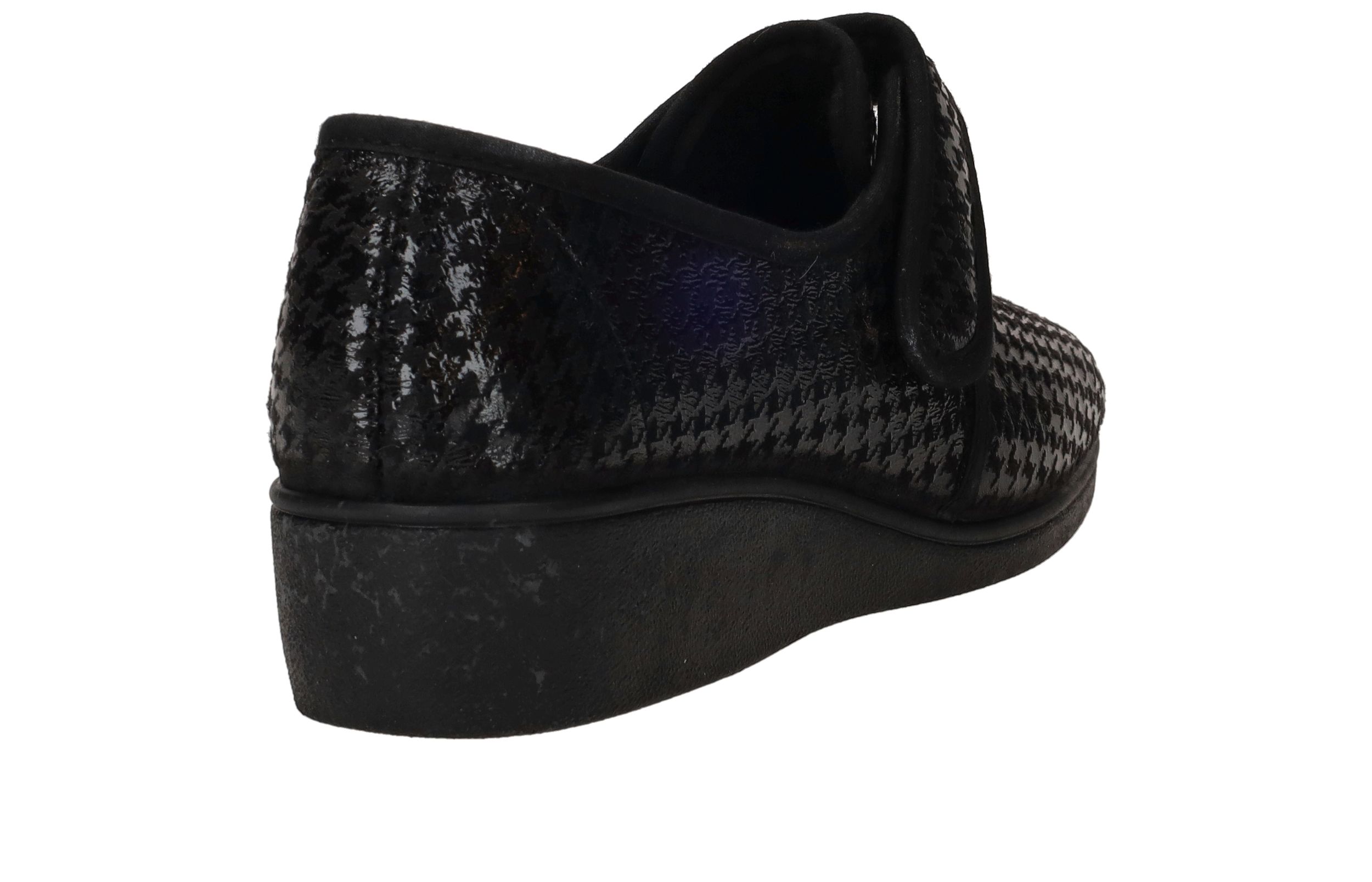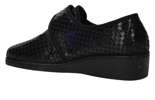 - De damespantoffel heeft een klittenbandsluiting.
