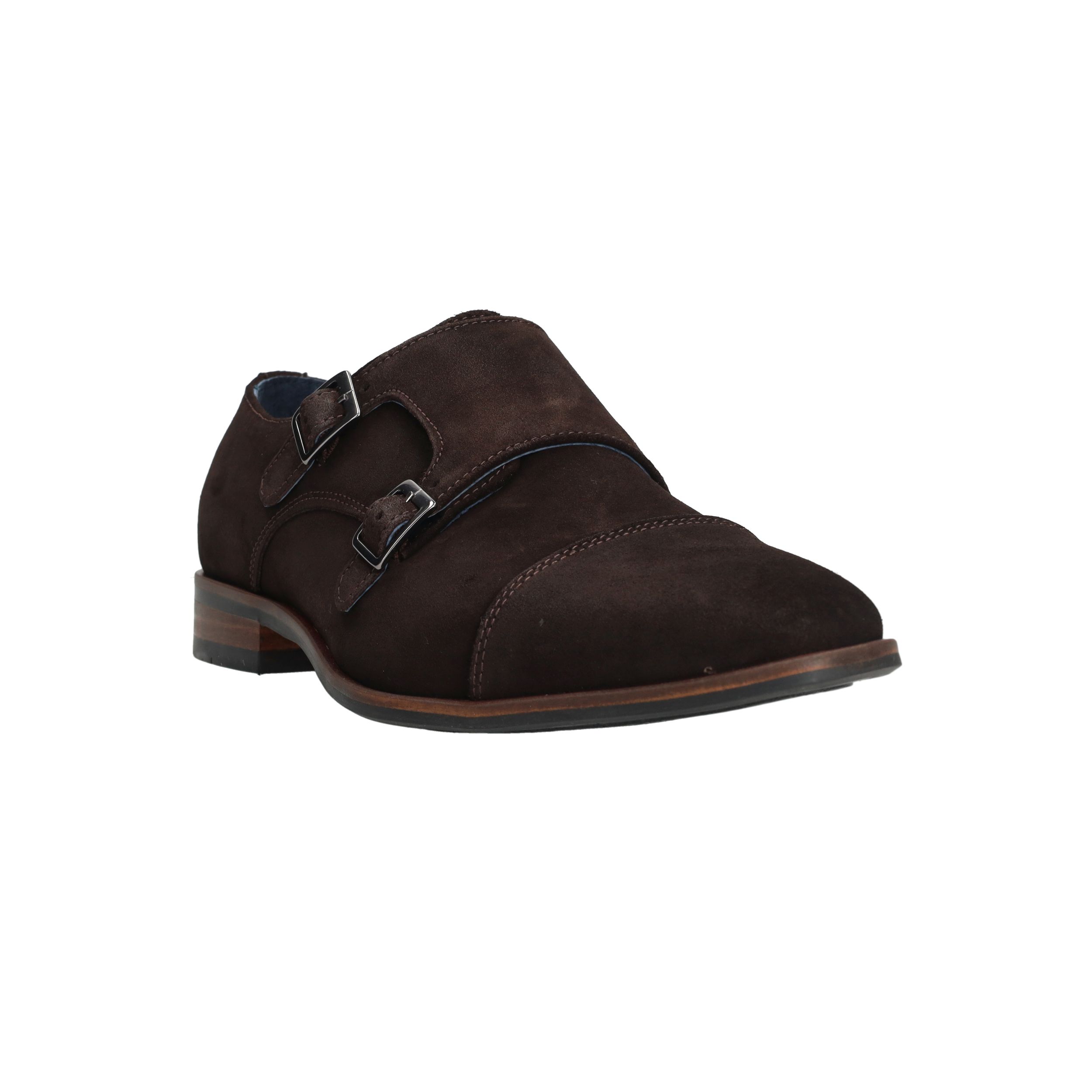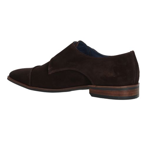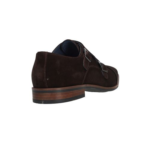 Deze stijlvolle heren schoenen van Berkelmans zijn uitgevoerd in donkerbruin suède voor een luxe, klassieke uitstraling met een eigentijdse twist. Het model Monaco is voorzien van een dubbele gesp en een elegante belijning. Dankzij de leren voering en normale voetbreedte G biedt deze schoen naast stijl ook optimaal draagcomfort.