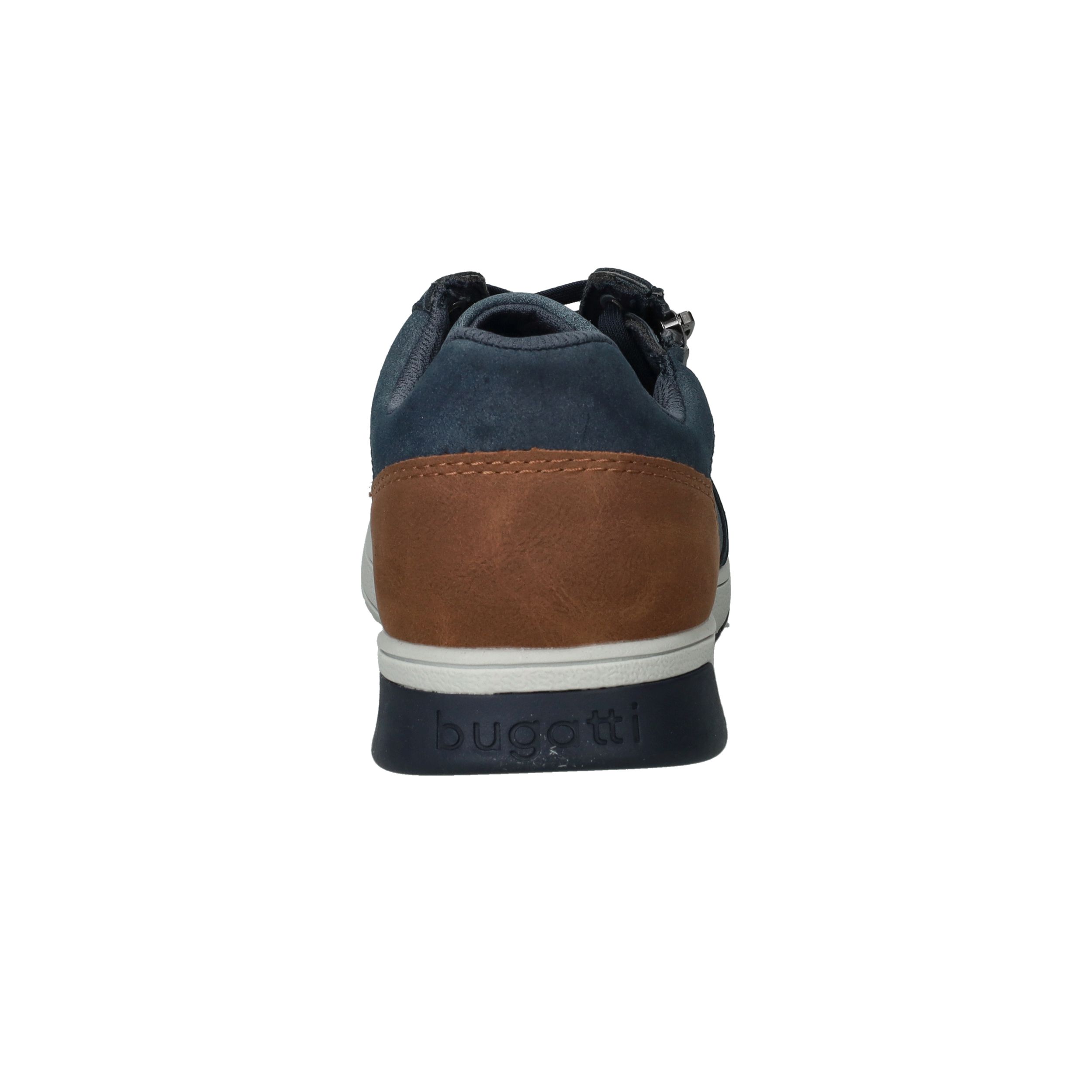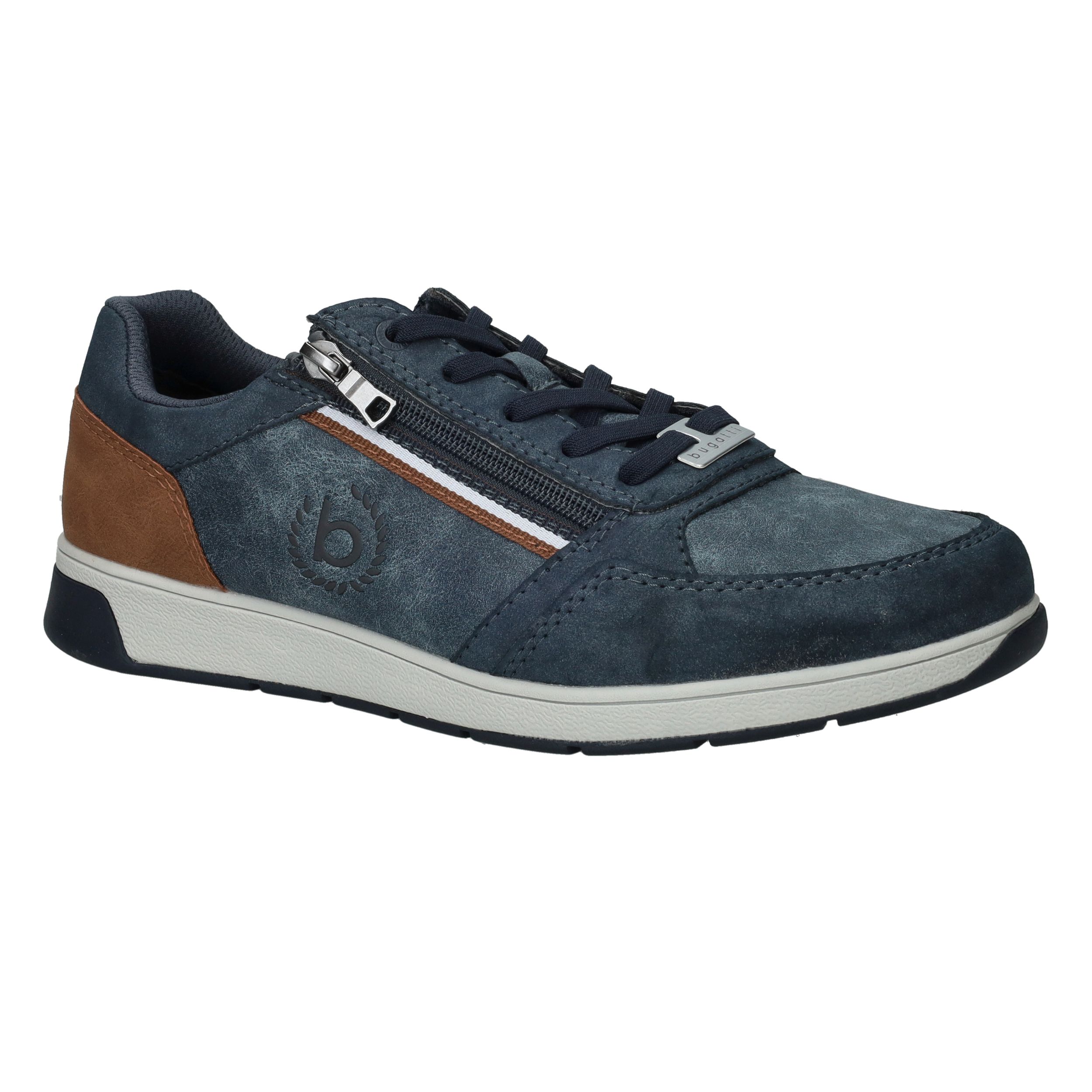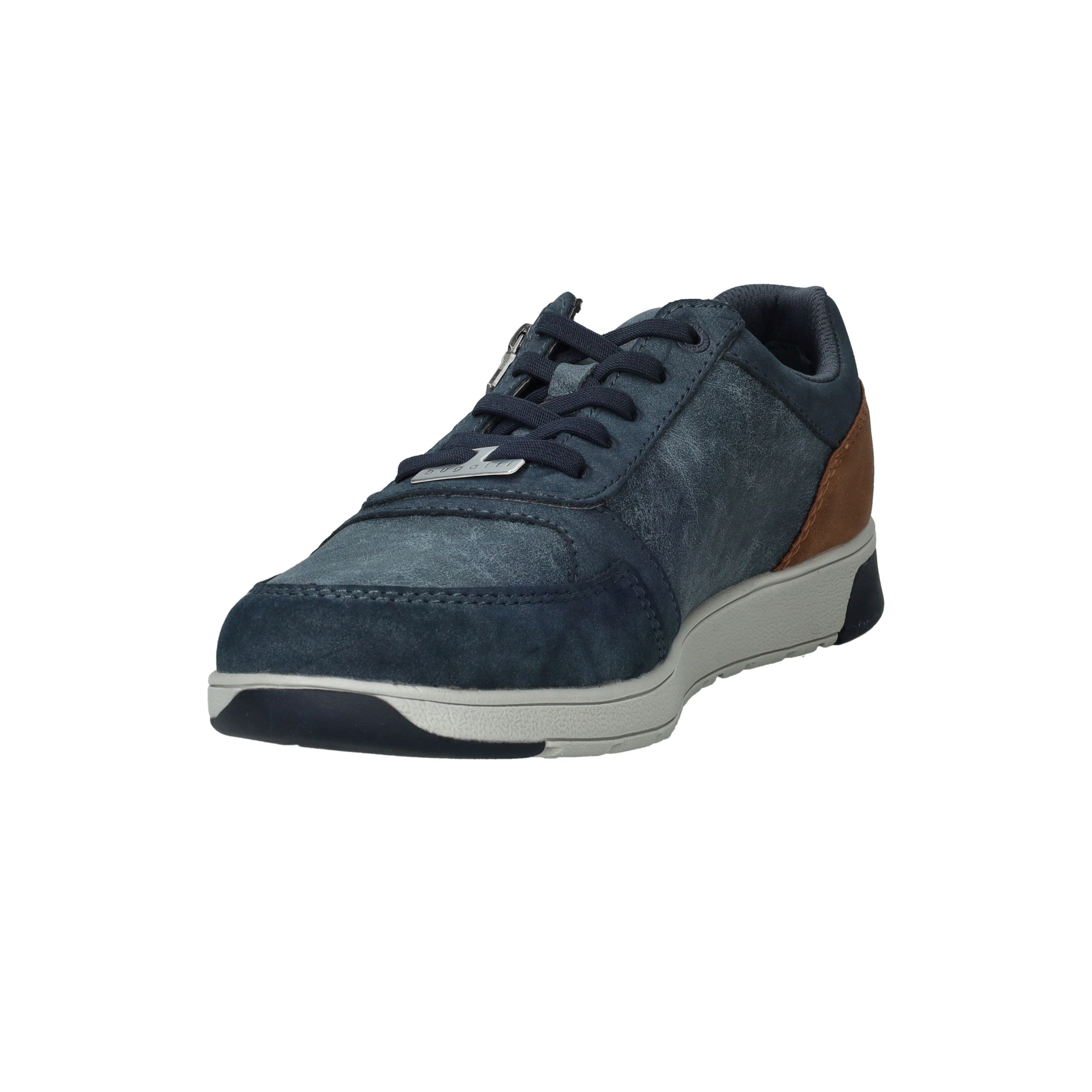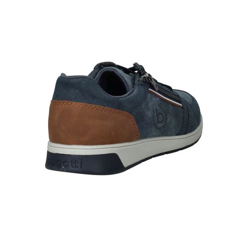 Deze blauwe Bugatti veterschoen voor heren is licht van gewicht en gemaakt van een combinatie van kunstleer en textiel. Dankzij de veter- en ritssluiting trek je de schoen eenvoudig aan en uit. De bruine accentstukken geven het model een sportieve en moderne uitstraling.