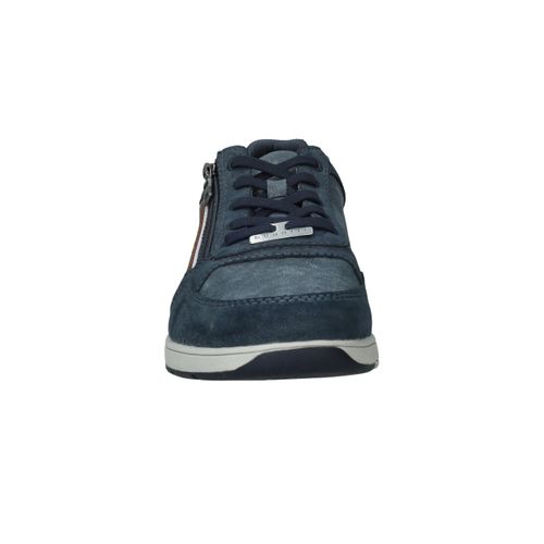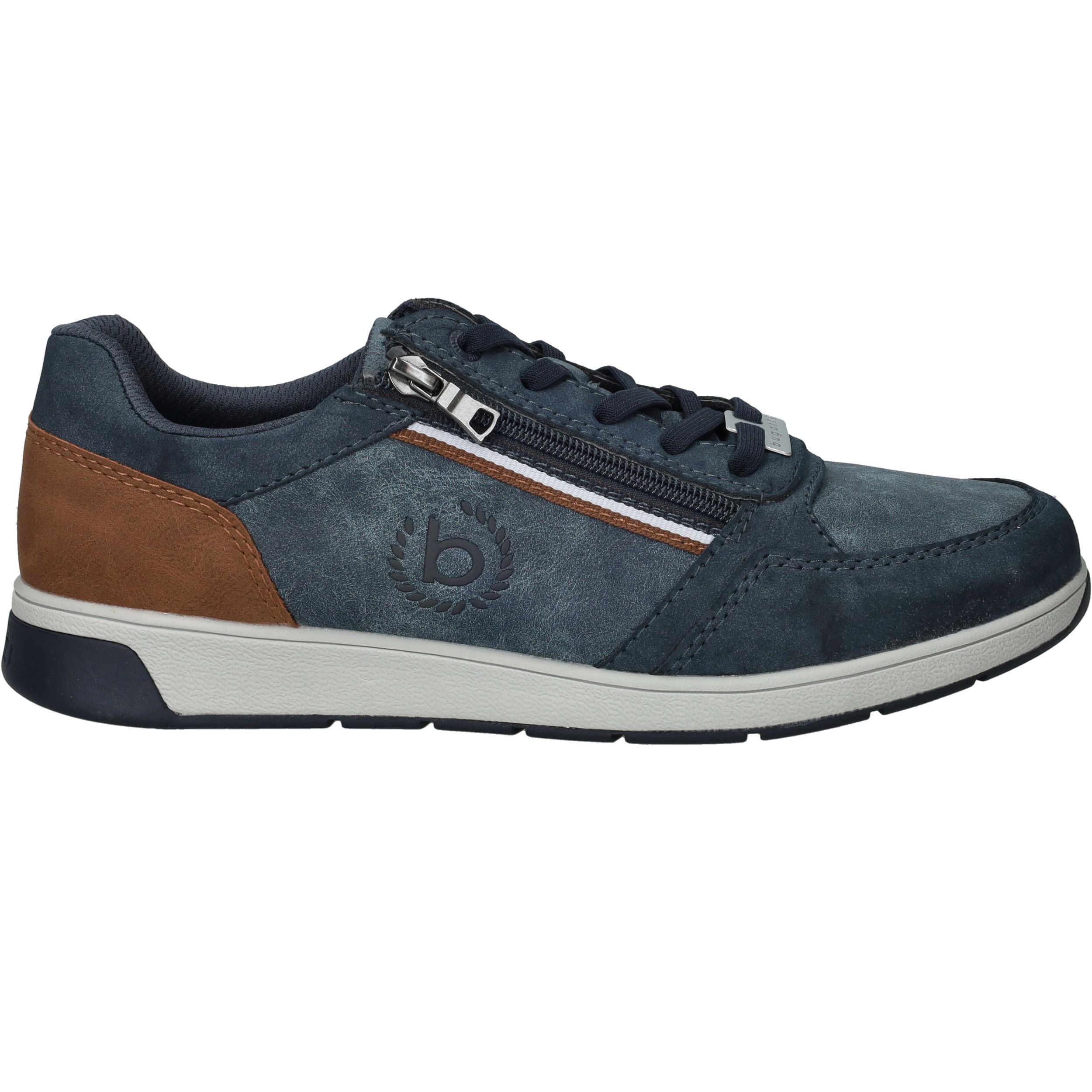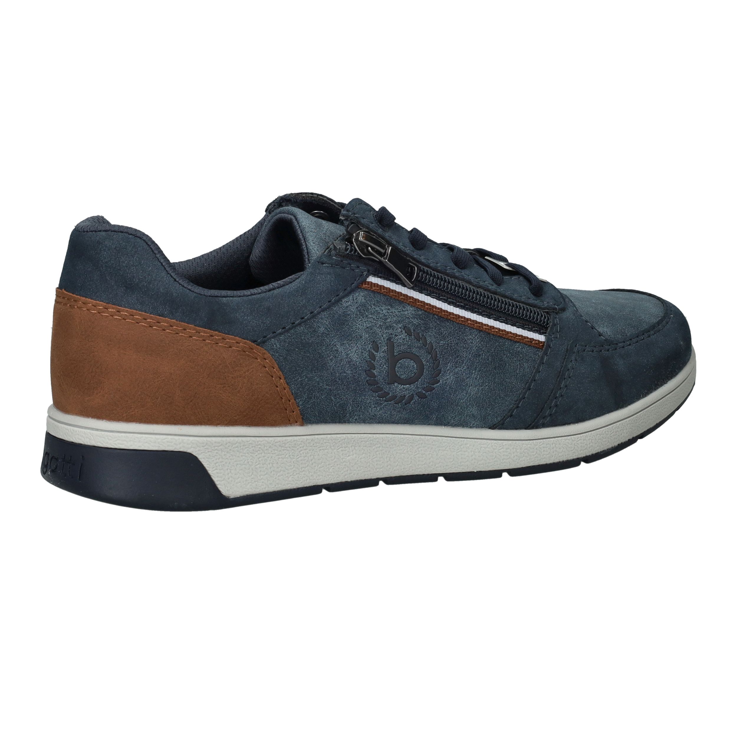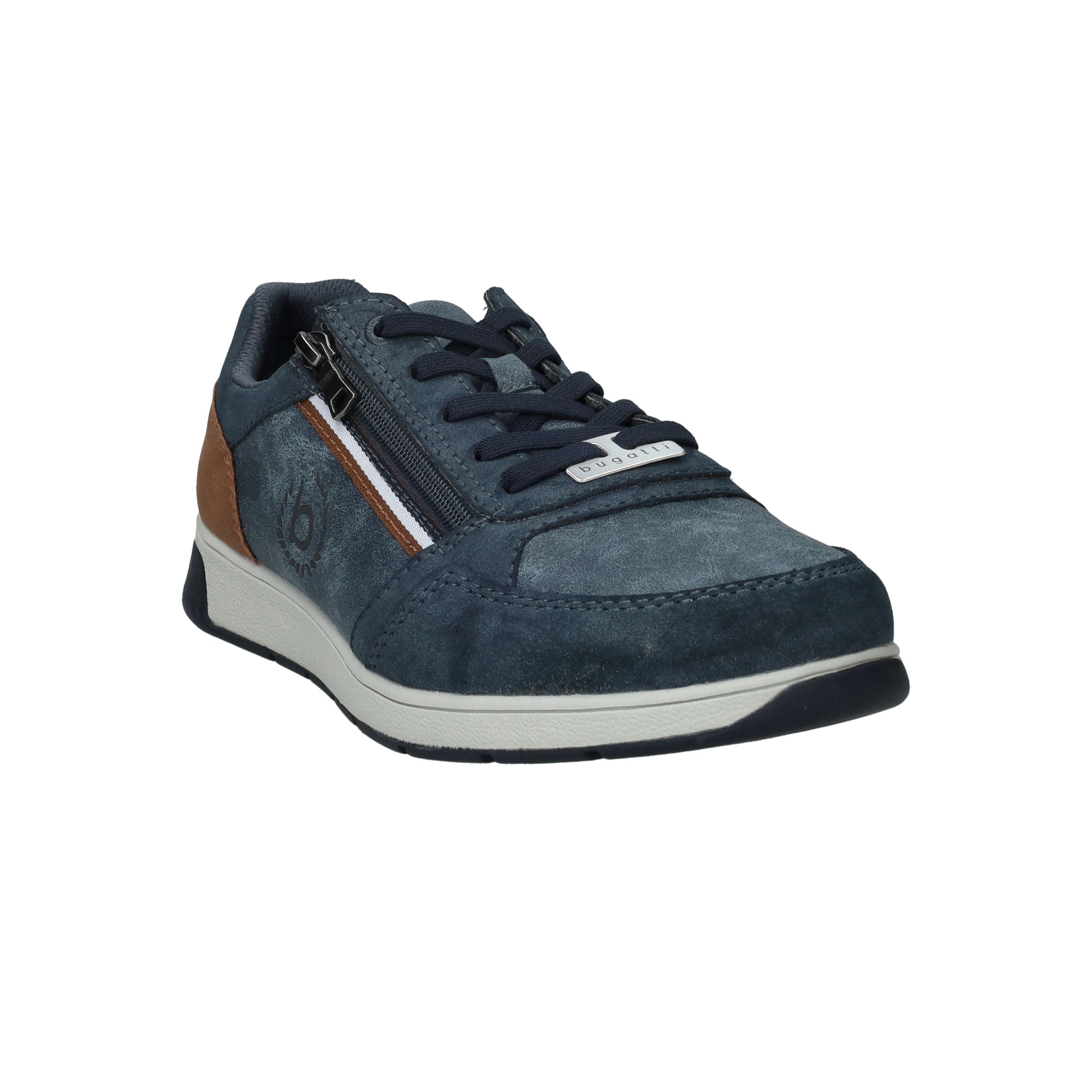 Deze blauwe Bugatti veterschoen voor heren is licht van gewicht en gemaakt van een combinatie van kunstleer en textiel. Dankzij de veter- en ritssluiting trek je de schoen eenvoudig aan en uit. De bruine accentstukken geven het model een sportieve en moderne uitstraling.