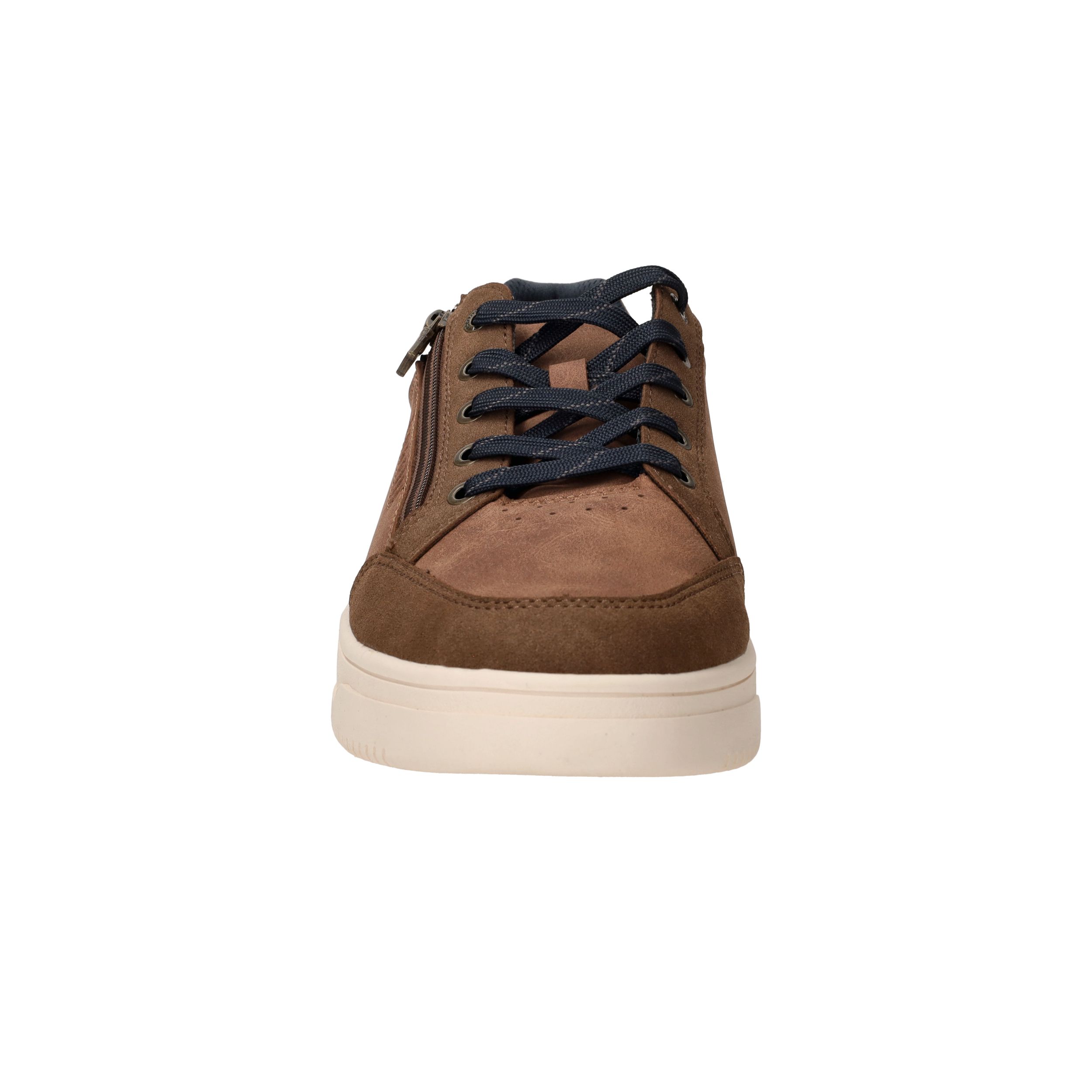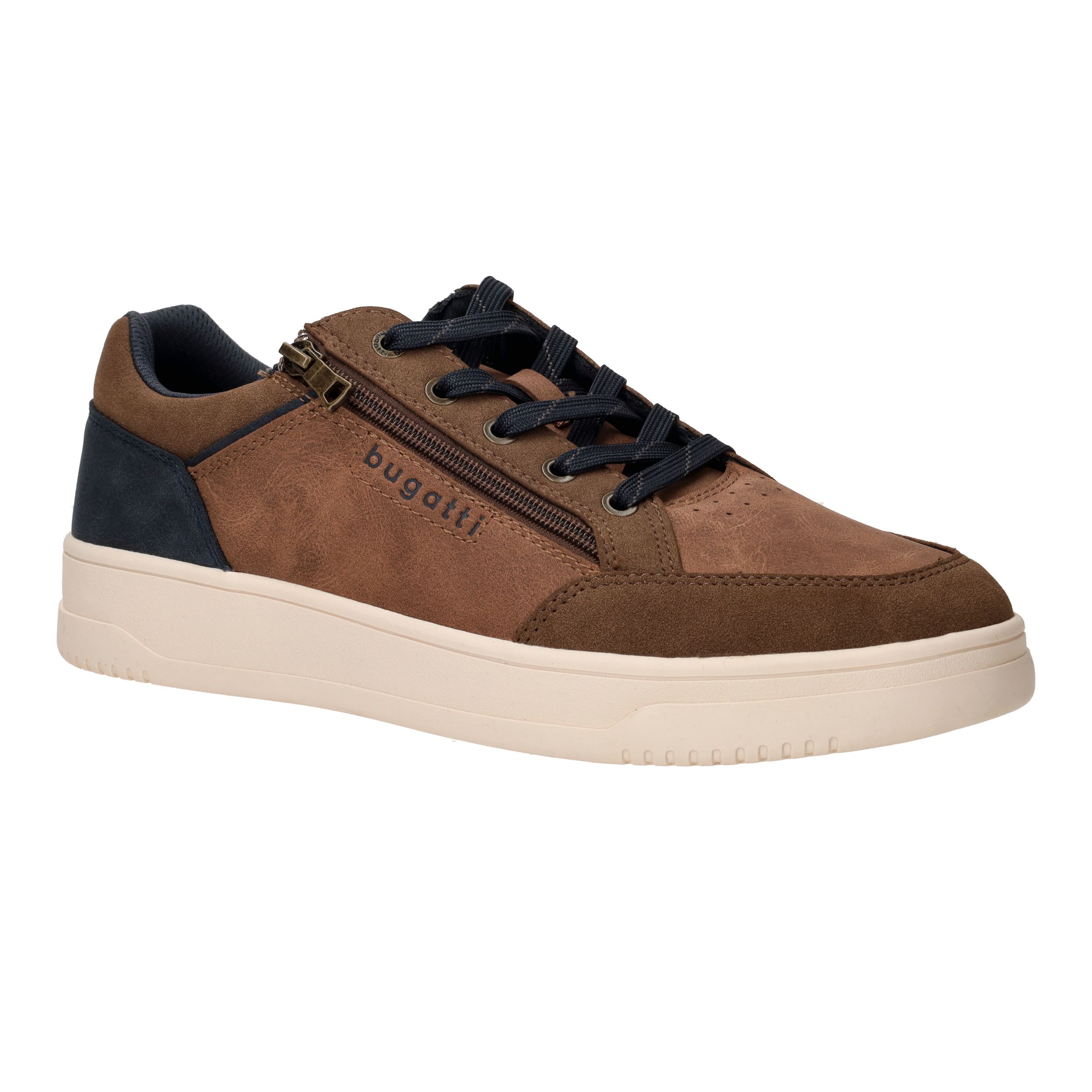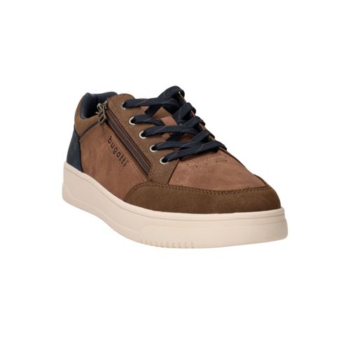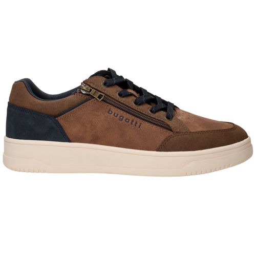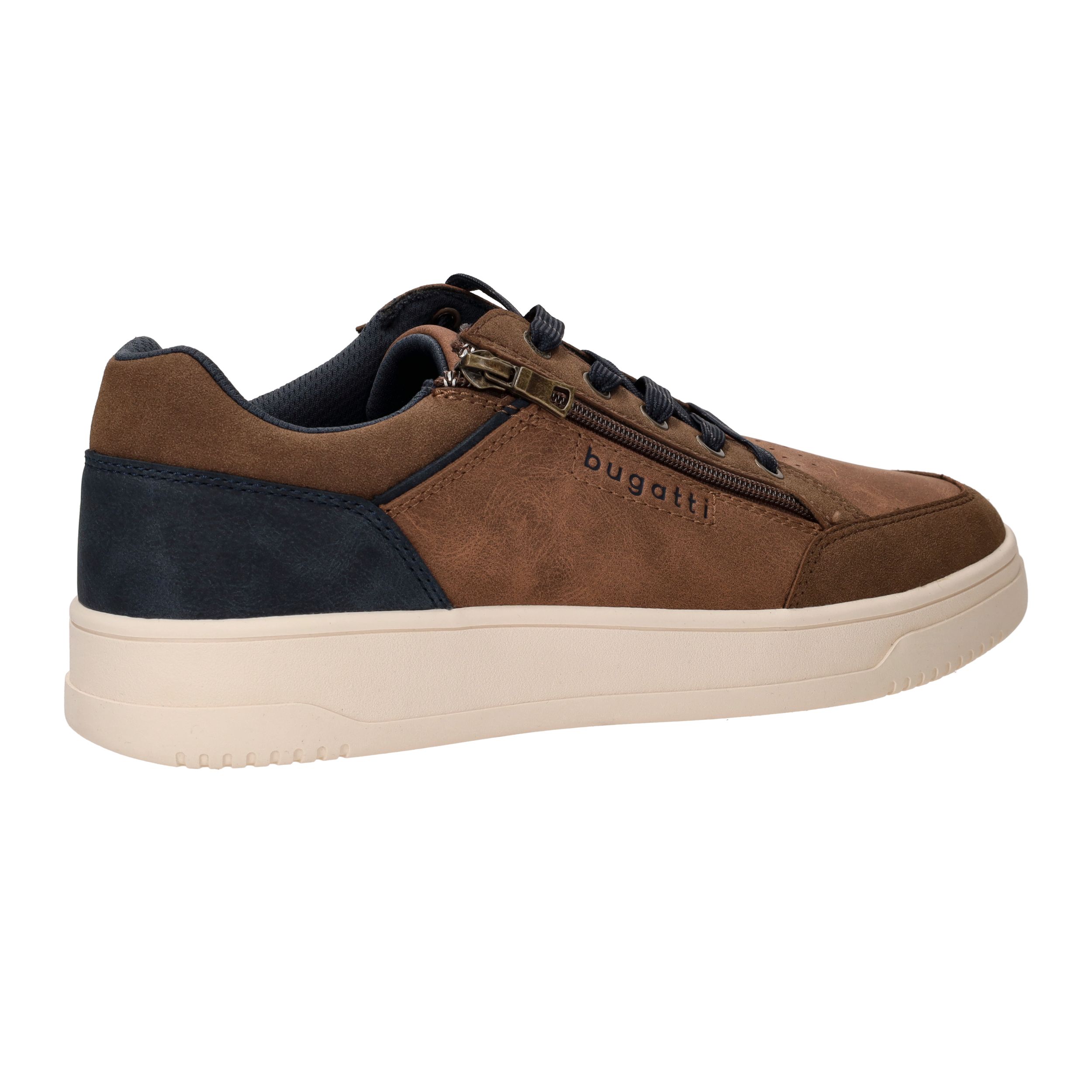 Sportieve Bugatti Spinaker sneaker voor heren waar je makkelijk instapt door de veter- en ritssluiting. De sneaker heeft een warme bruine kleur en stevige zool.