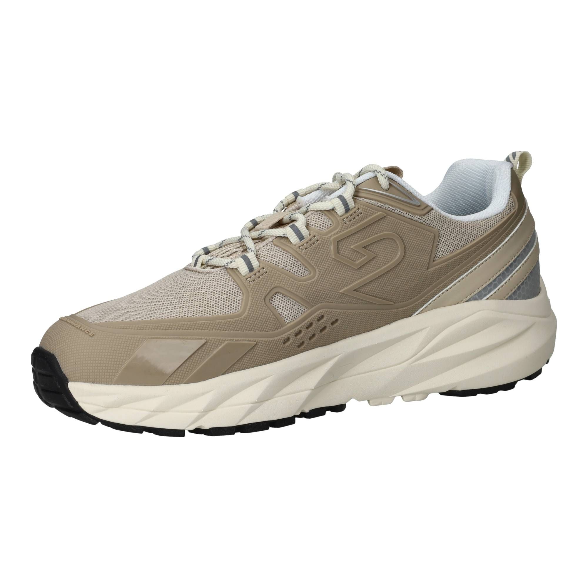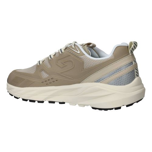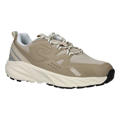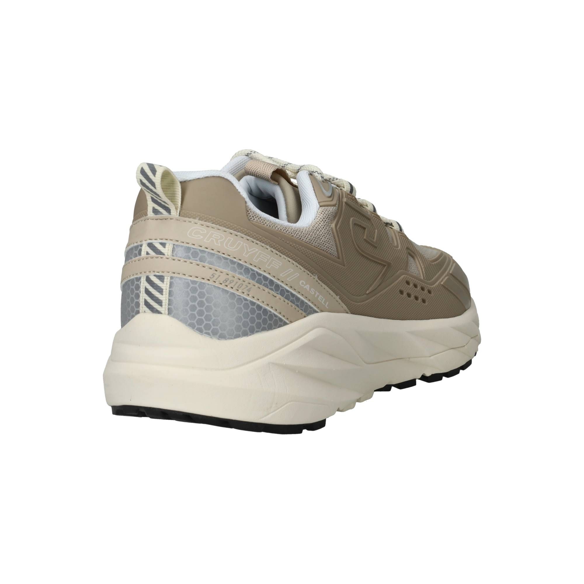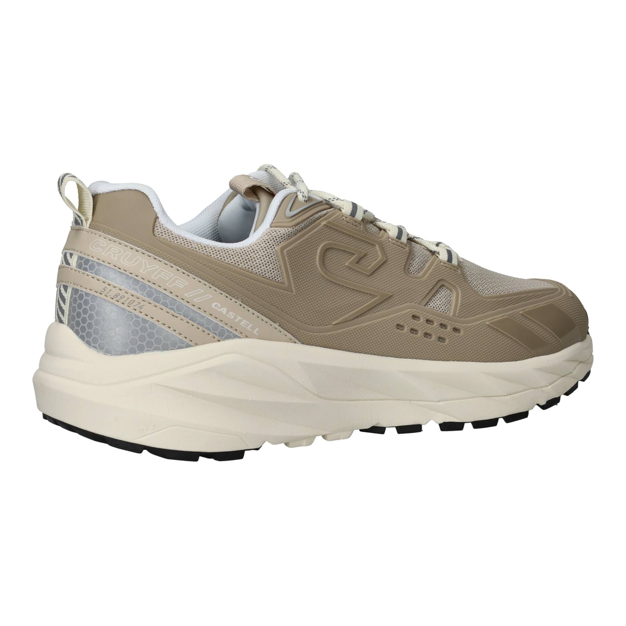 De heren sneakers Cruyff Castell in het beige zijn een stijlvolle toevoeging aan elke garderobe, perfect voor heren die waarde hechten aan comfort en een verzorgde uitstraling. Deze sneakers van Cruyff combineren een elegante look met praktische kenmerken. Het synthetische en textiele bovenwerk, uitgevoerd in een rustige beigetint, maakt deze schoen veelzijdig en gemakkelijk te combineren. Tijdens het lopen en staan ervaar je een aangename demping, waardoor elke stap licht voelt en de druk goed over de voet wordt verdeeld. Het ontwerp zorgt voor een prettige afwikkeling, wat bijdraagt aan een ontspannen loopervaring de hele dag door.- De vetersluiting zorgt ervoor dat je de schoen precies aanpast aan de voet, voor optimale steun en een comfortabele pasvorm.