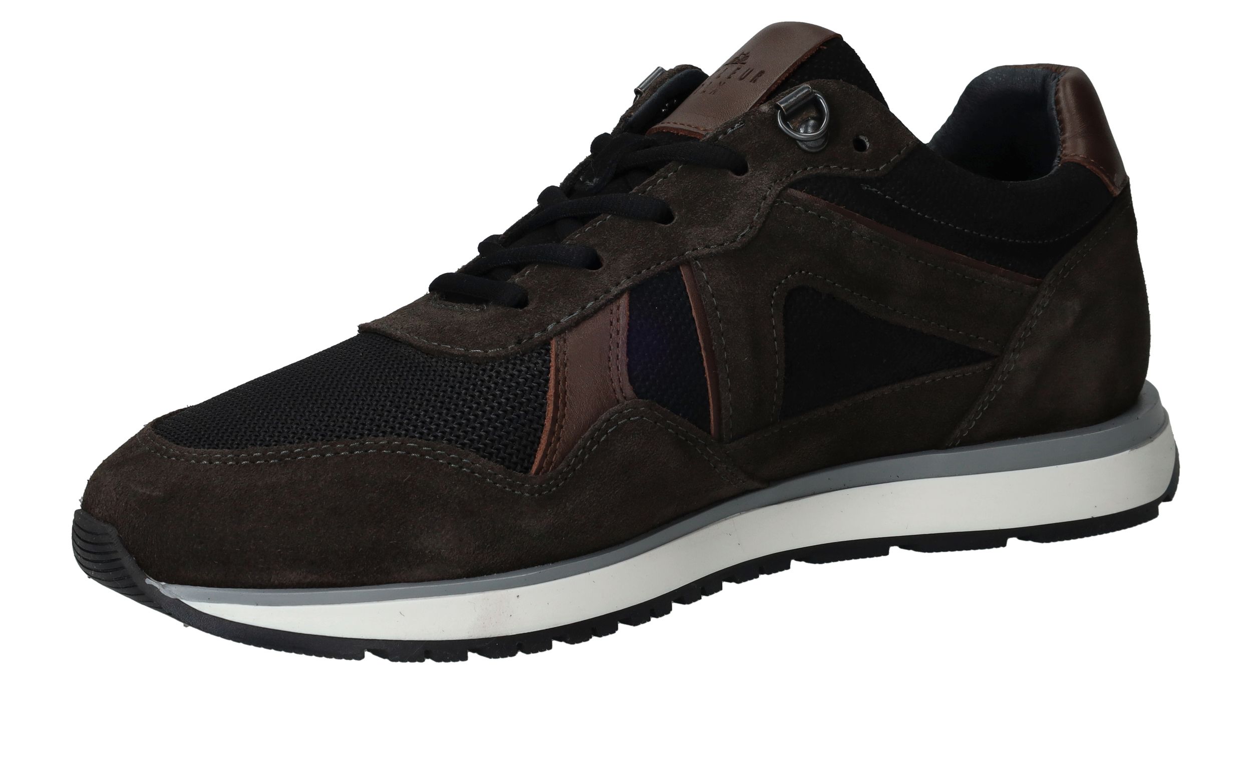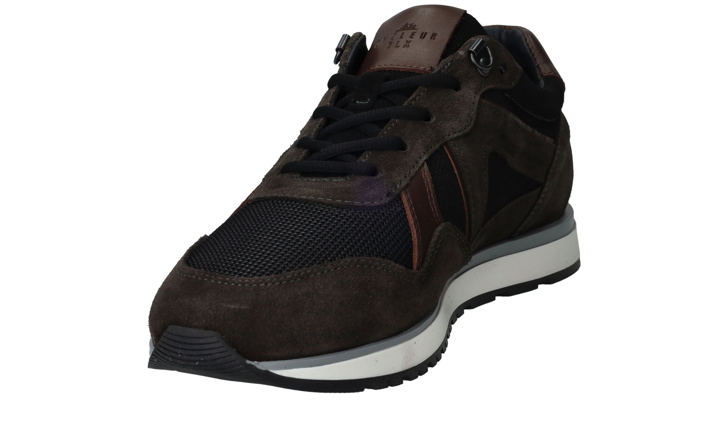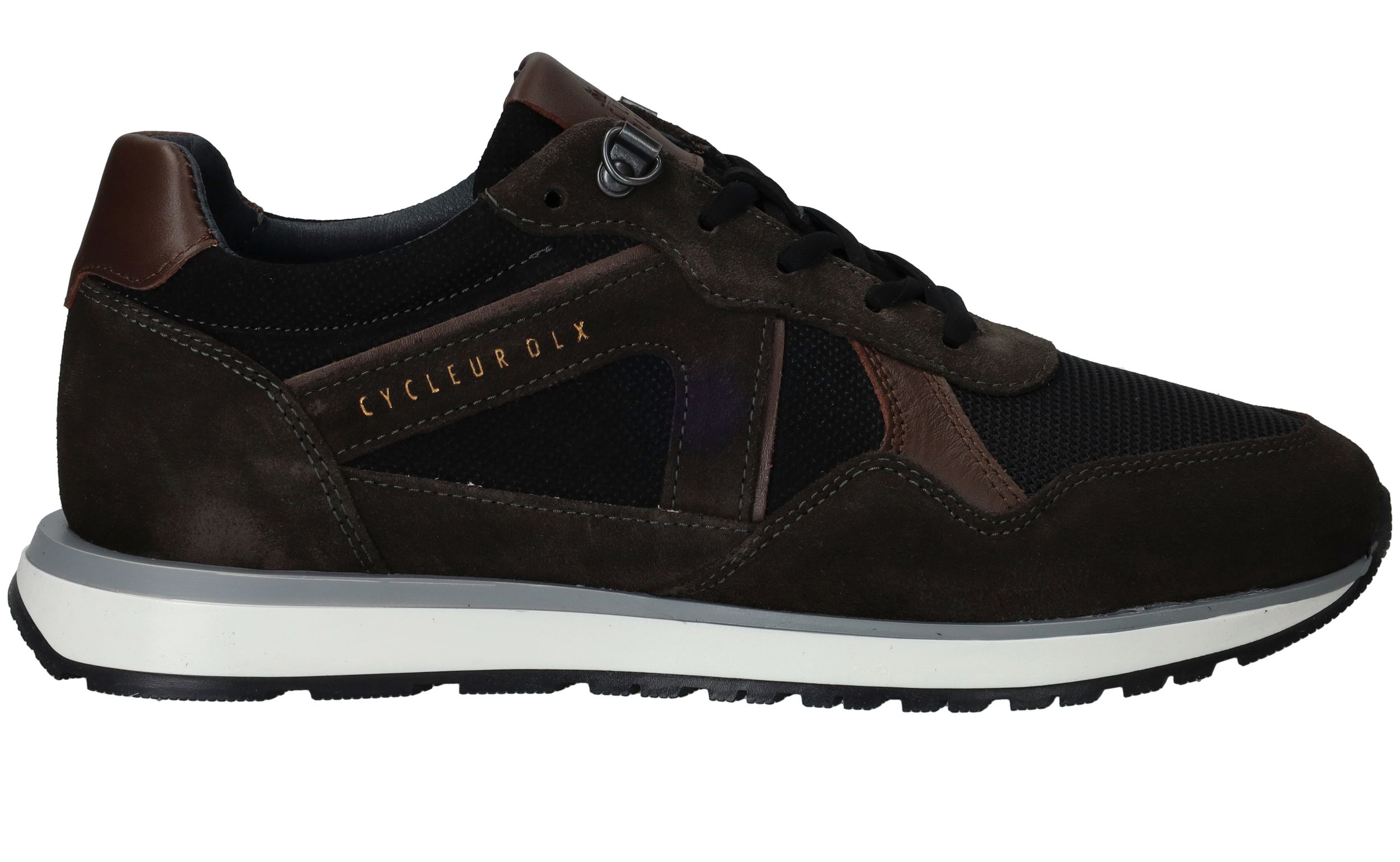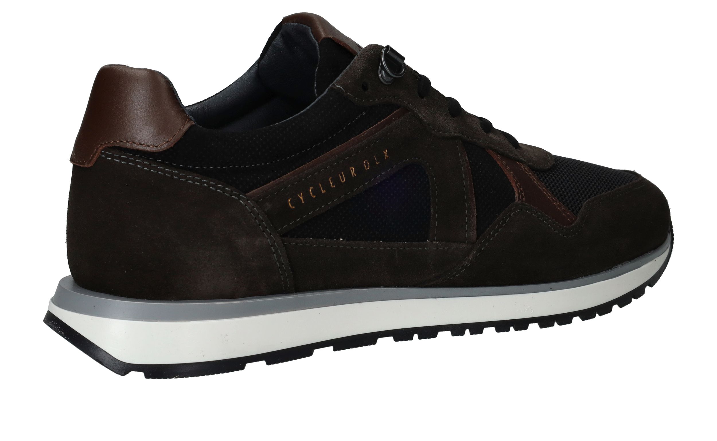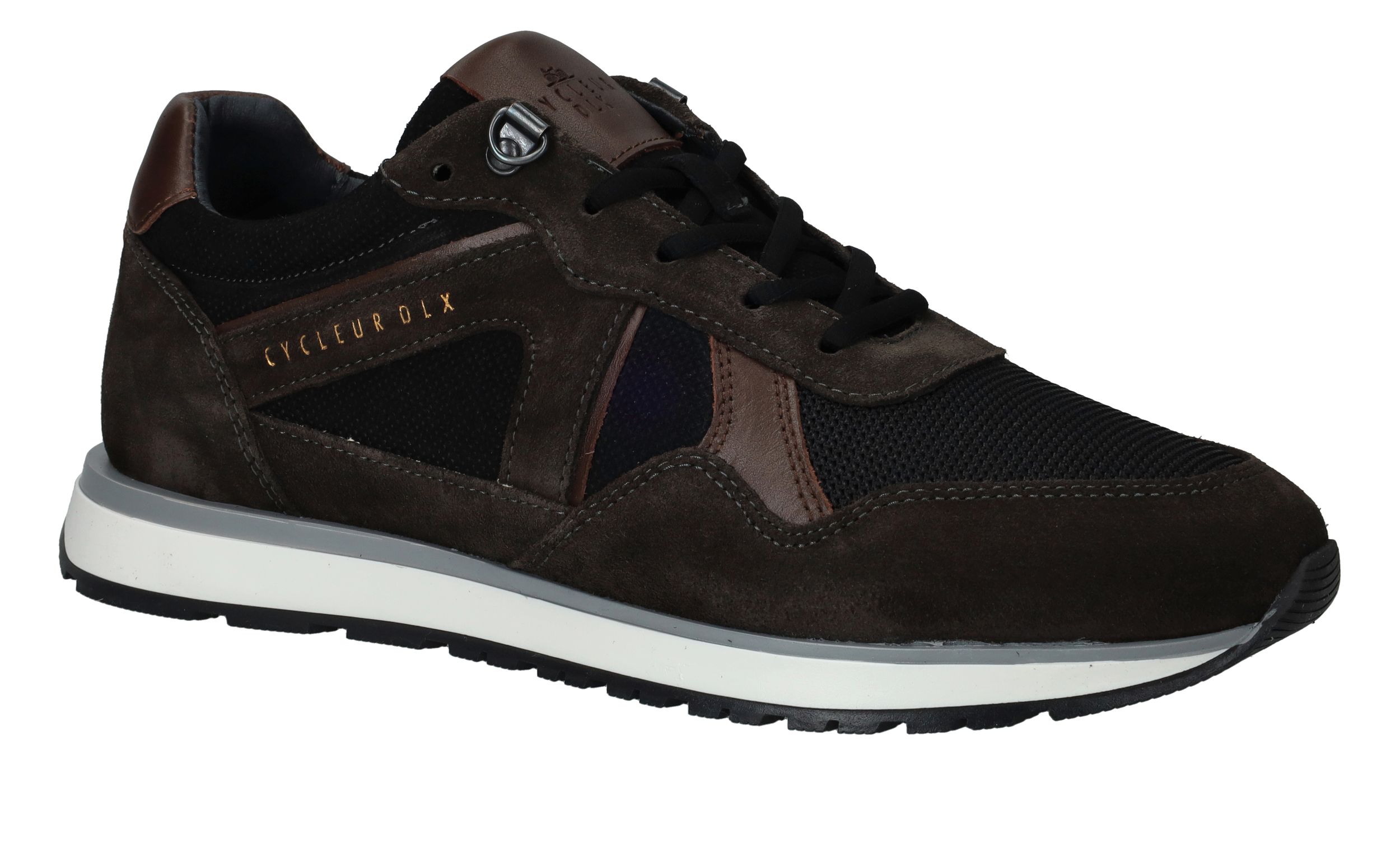 Sportieve Cycleur DLX Coffin sneaker voor heren in het bruin met zwart. De sneaker is helemaal gemaakt van suède.