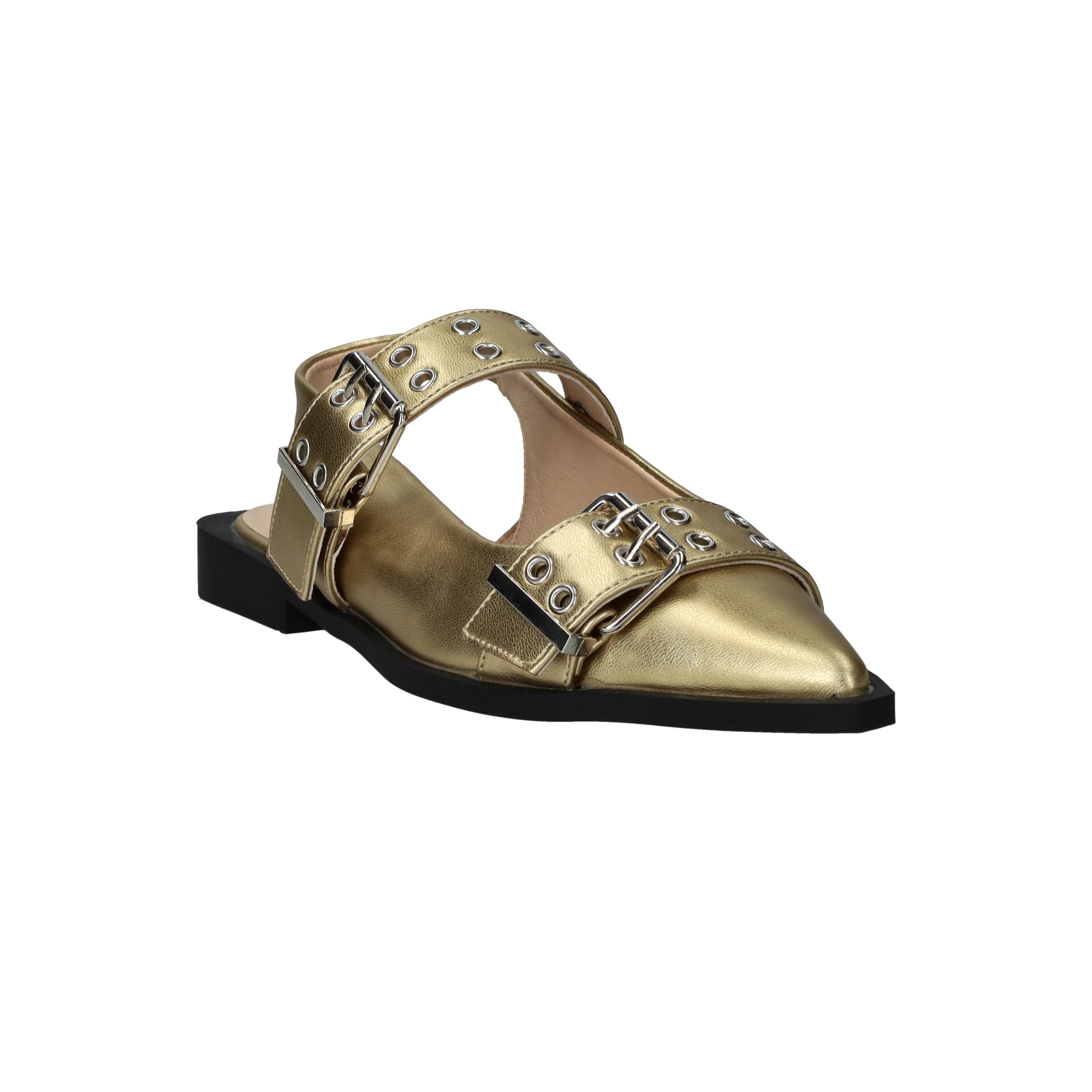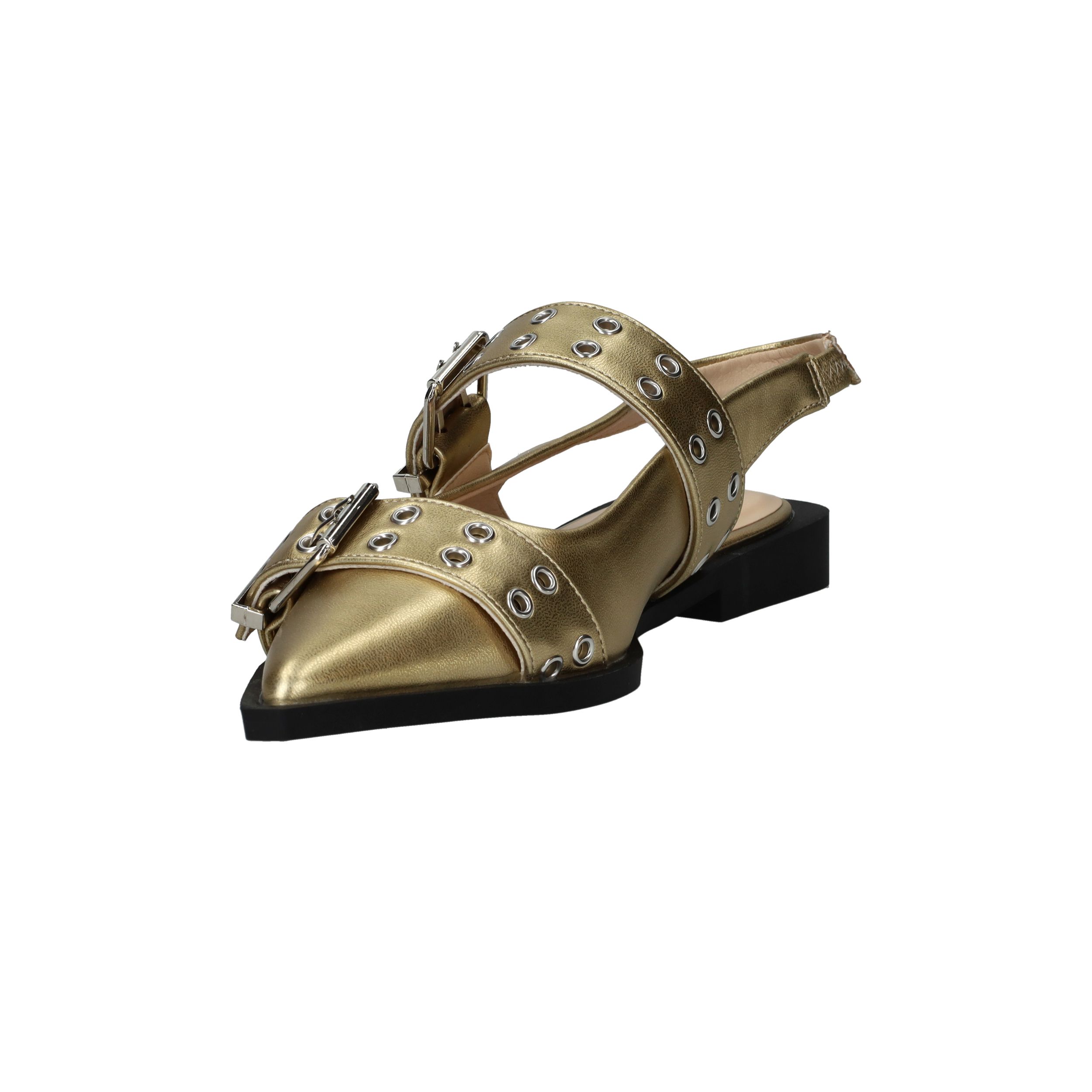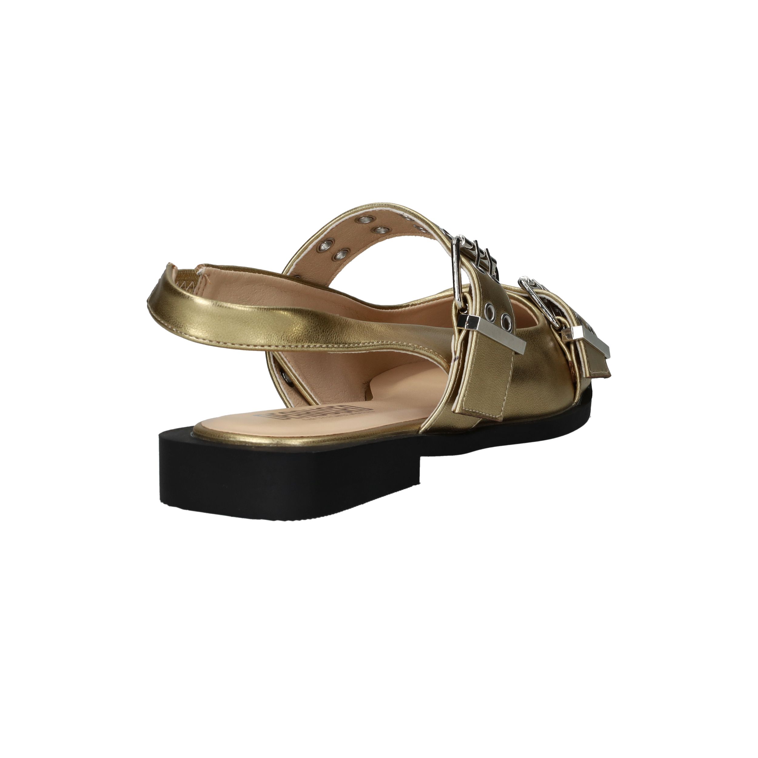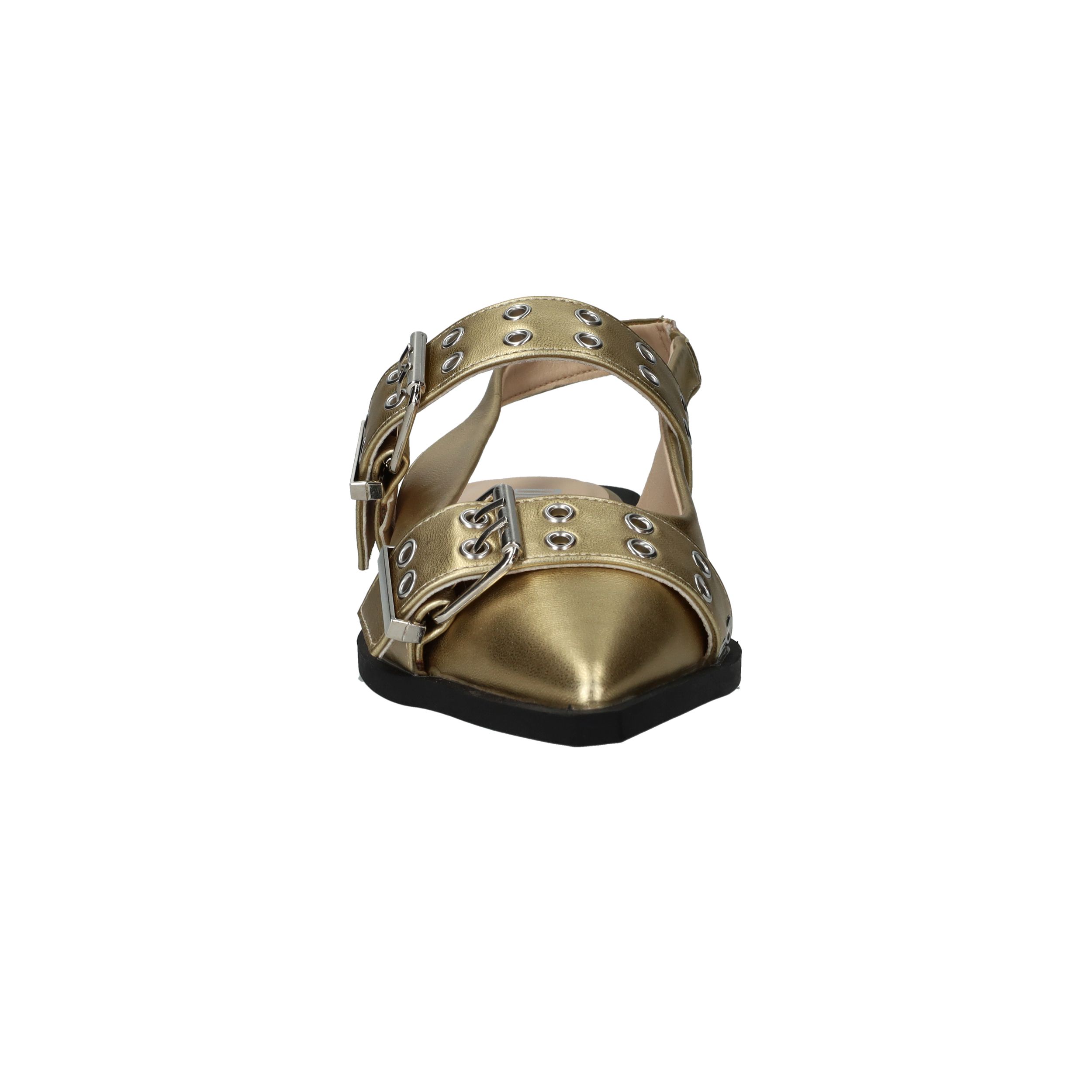 Super toffe Deabused slingback voor dames! De metallic gouden slingback heeft grote opvallende gespen.