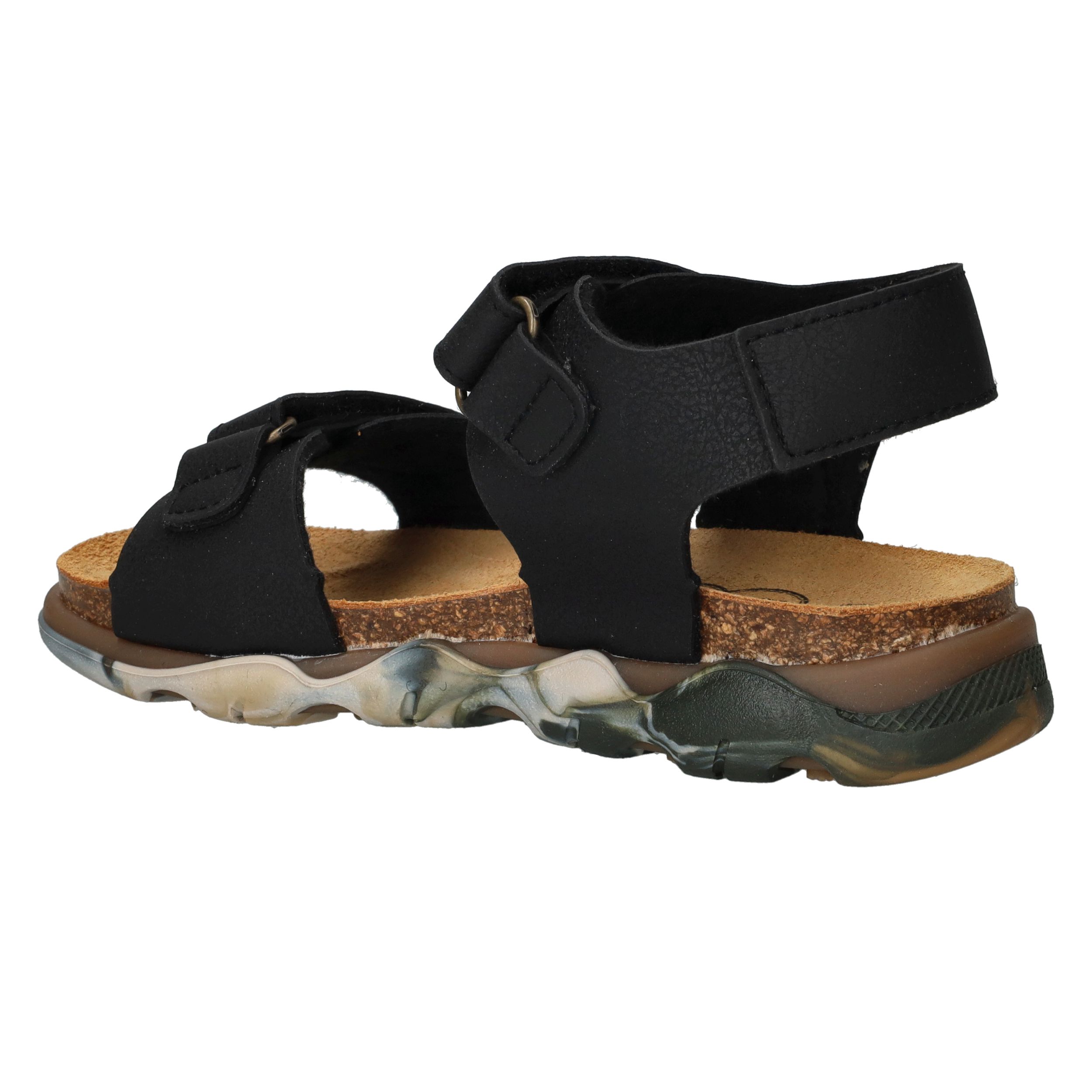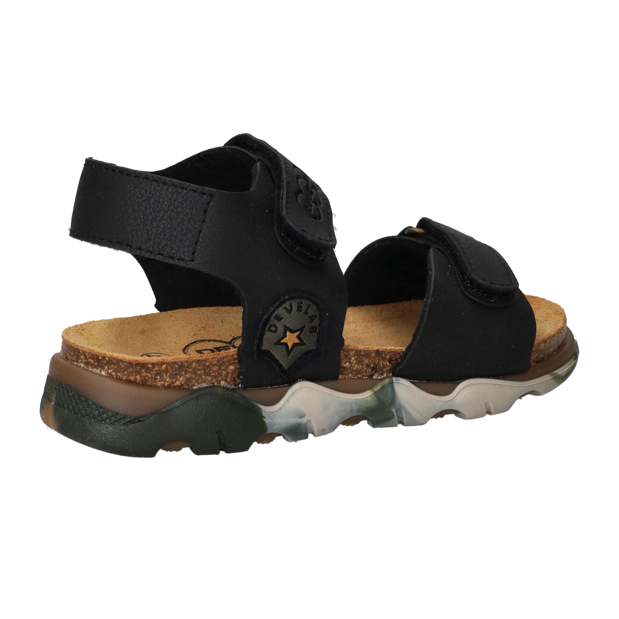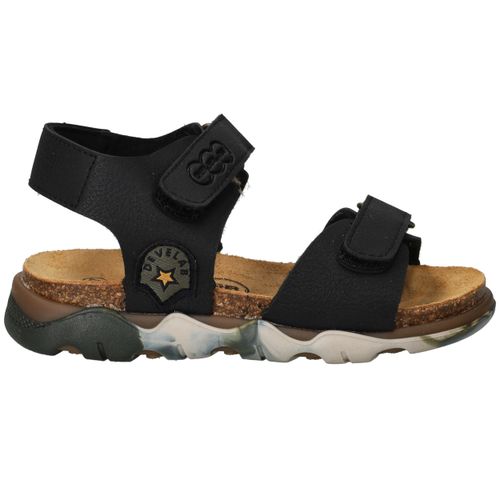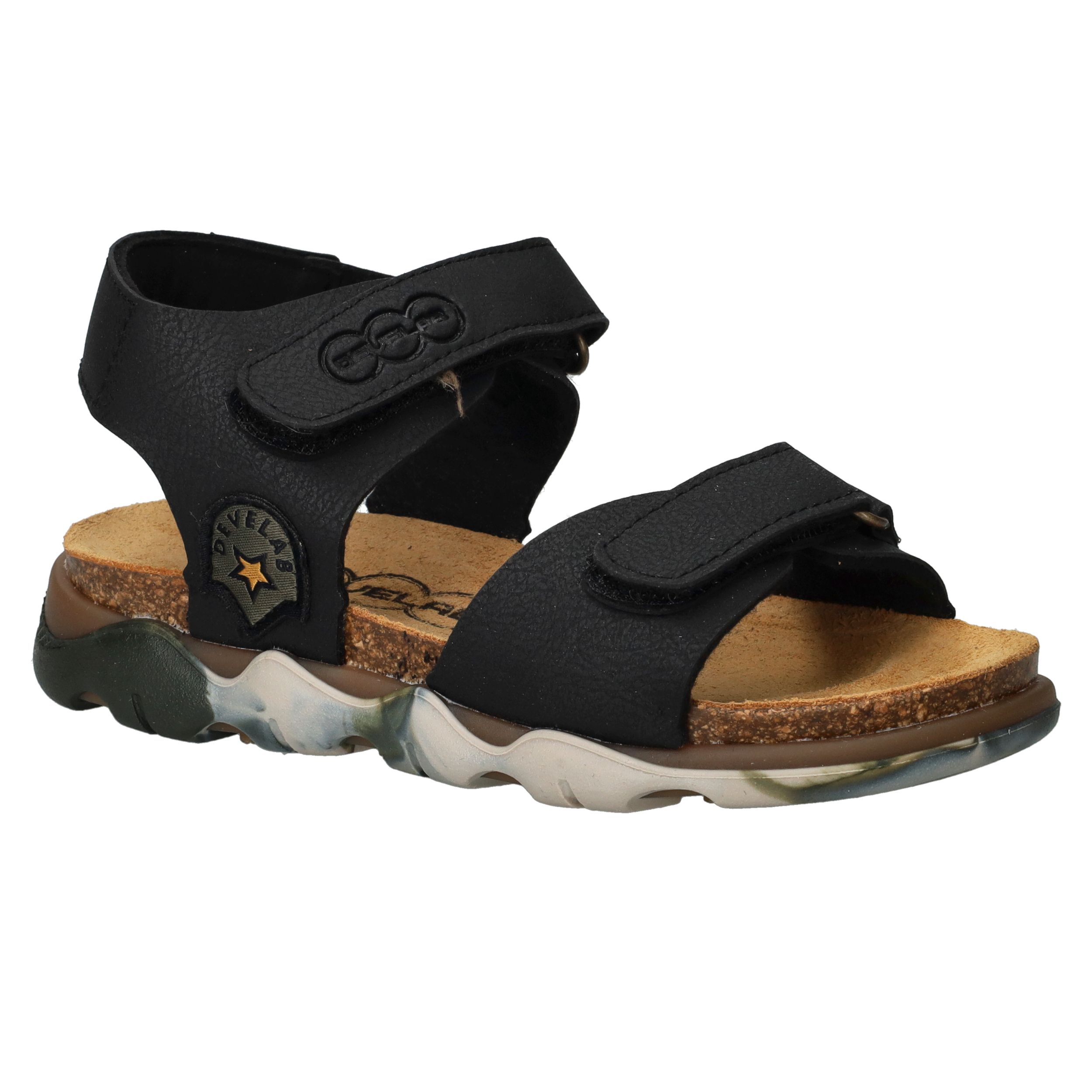 Deze stoere sandalen van Develab zijn perfect voor actieve jongens. Het zwarte kunstleer is stevig en goed bestand tegen een stootje. De comfortabele kurkzool met stevige rubberen buitenzool zorgt voor grip tijdens spelen en rennen. Dankzij de dubbele klittenbandsluiting zijn deze sandalen makkelijk aan en uit te trekken.