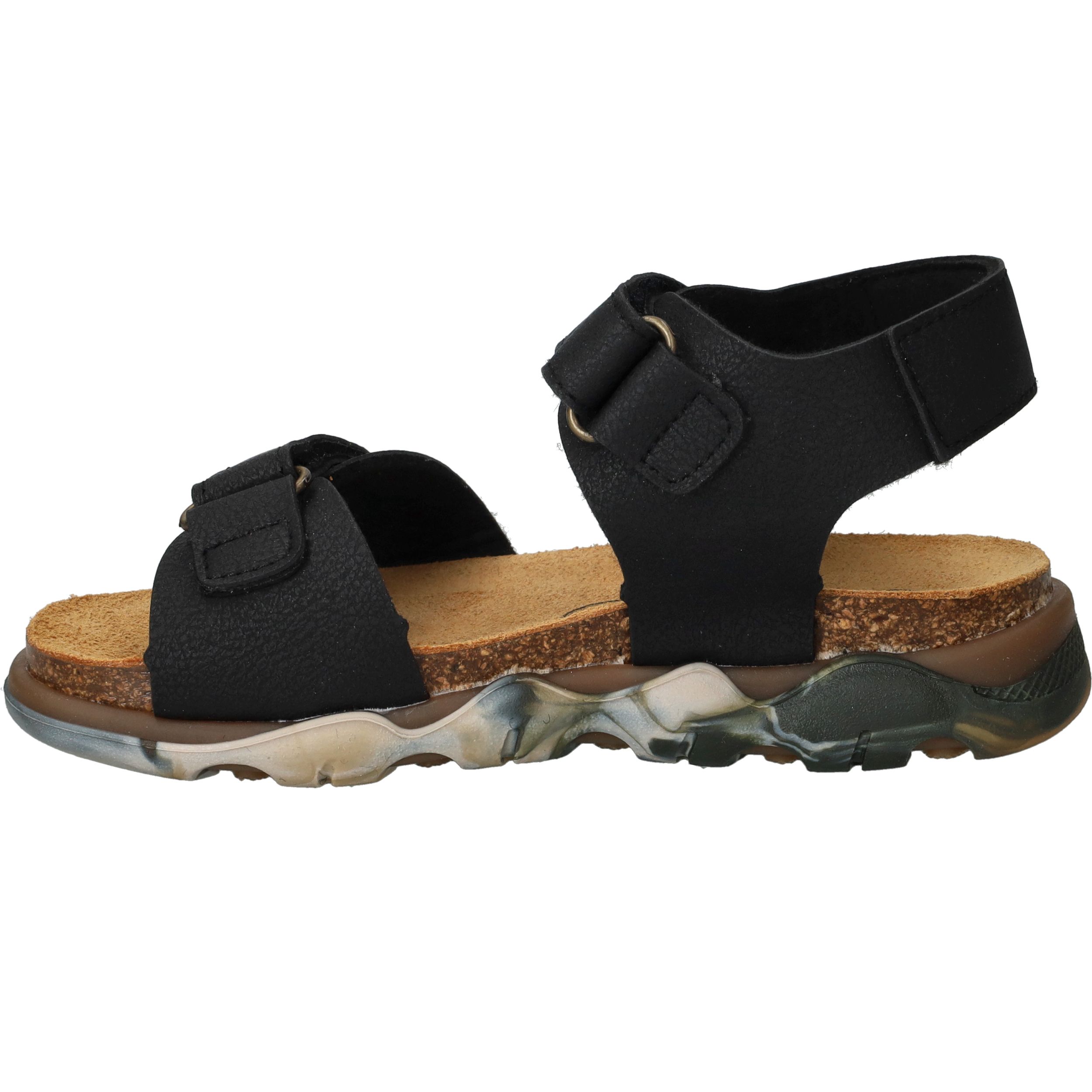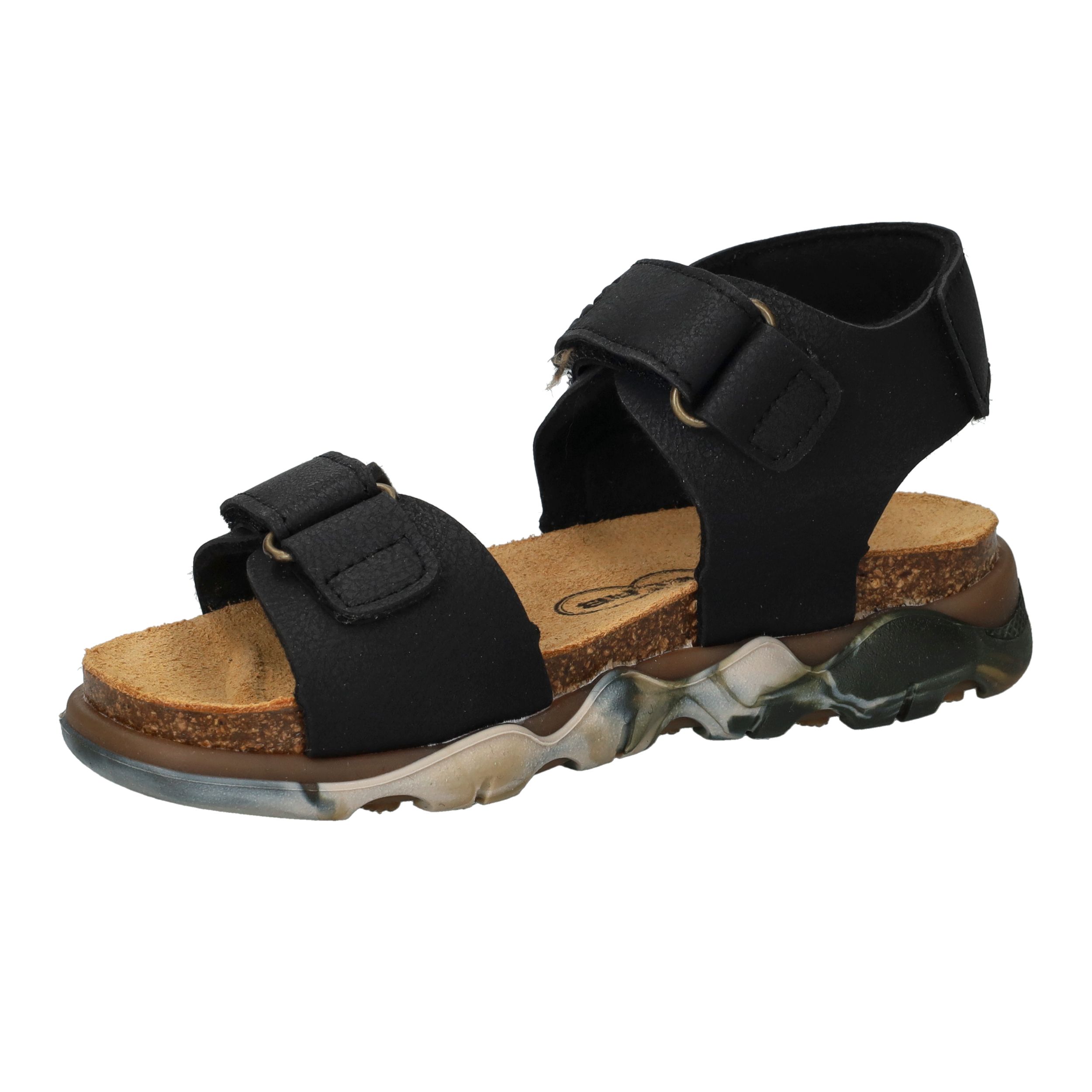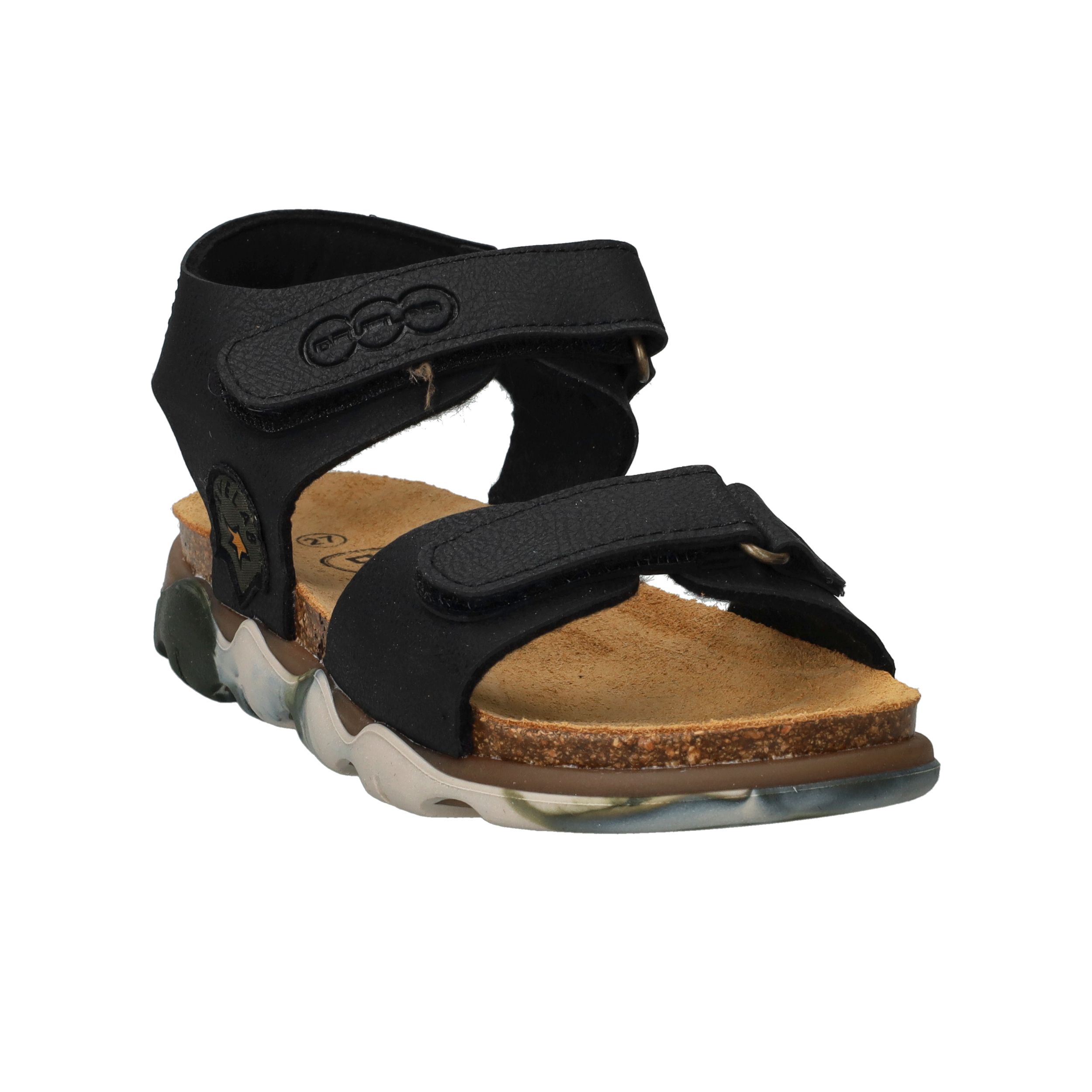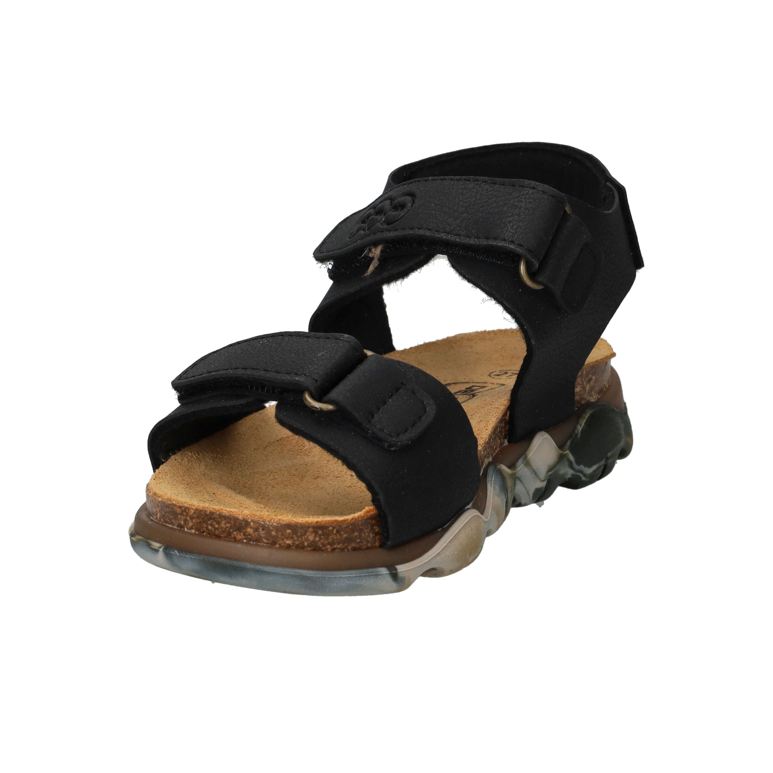Deze stoere sandalen van Develab zijn perfect voor actieve jongens. Het zwarte kunstleer is stevig en goed bestand tegen een stootje. De comfortabele kurkzool met stevige rubberen buitenzool zorgt voor grip tijdens spelen en rennen. Dankzij de dubbele klittenbandsluiting zijn deze sandalen makkelijk aan en uit te trekken.
