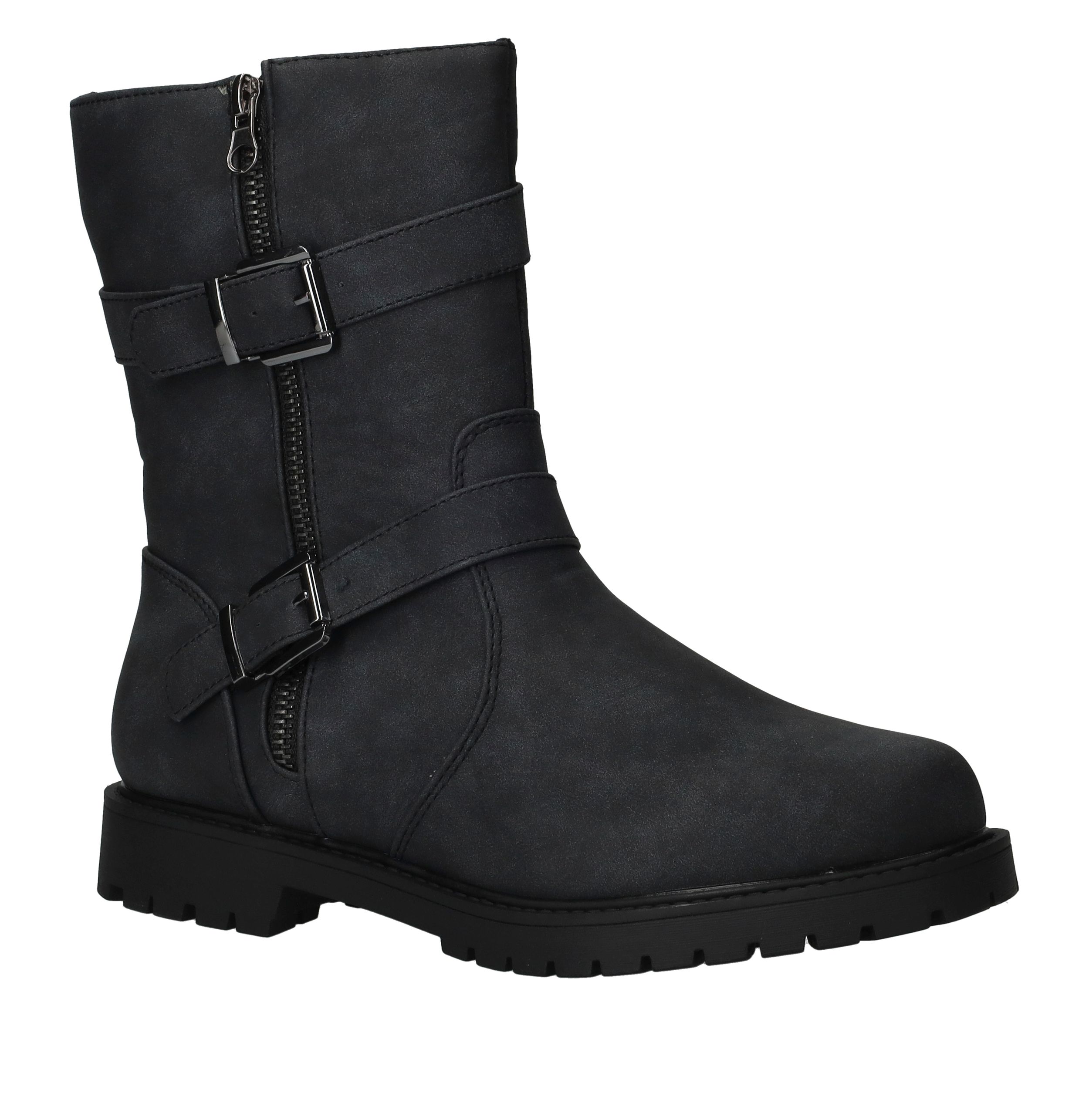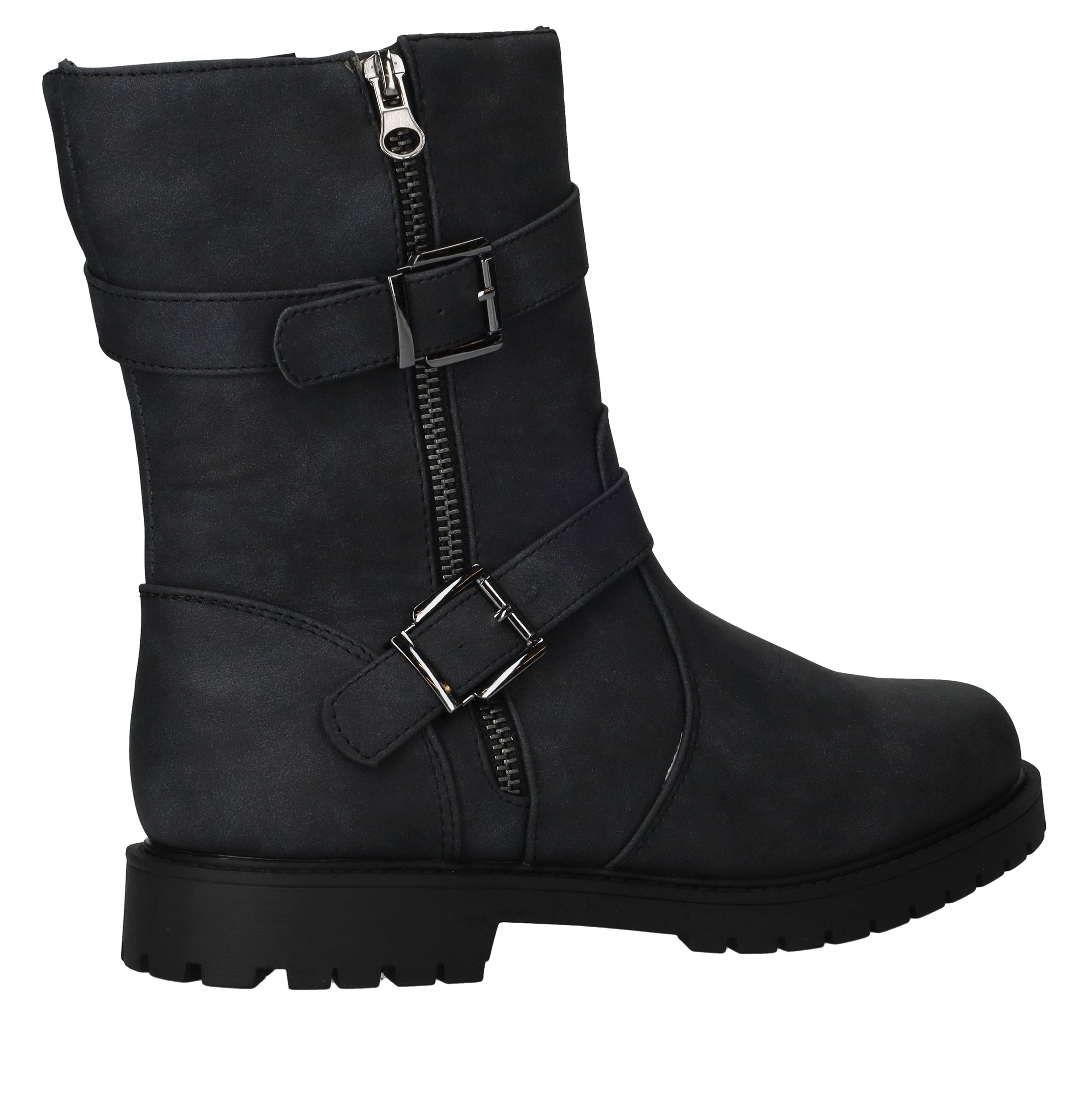 - De bikerboots zijn gemaakt van kunstleer en textiel.