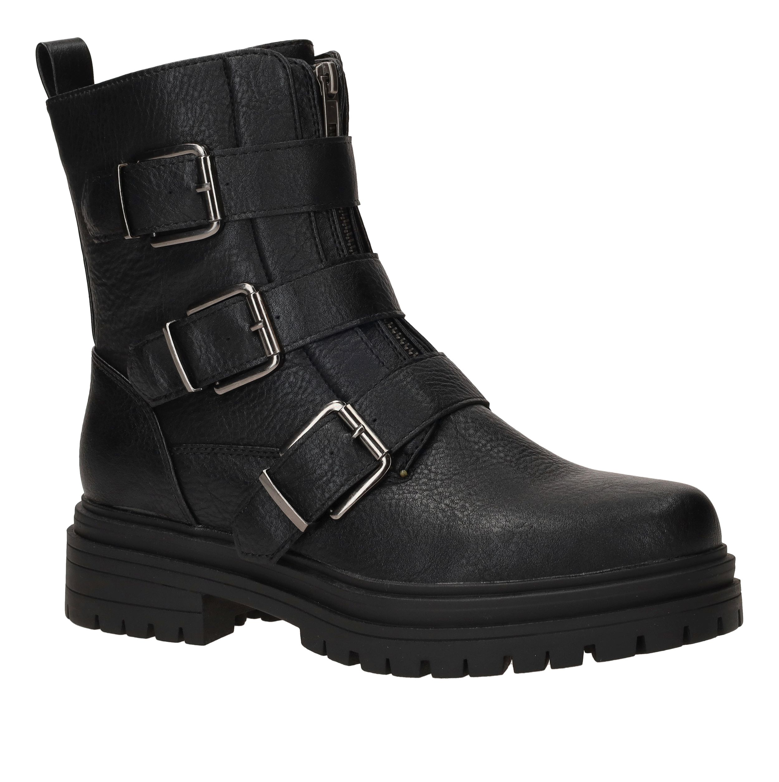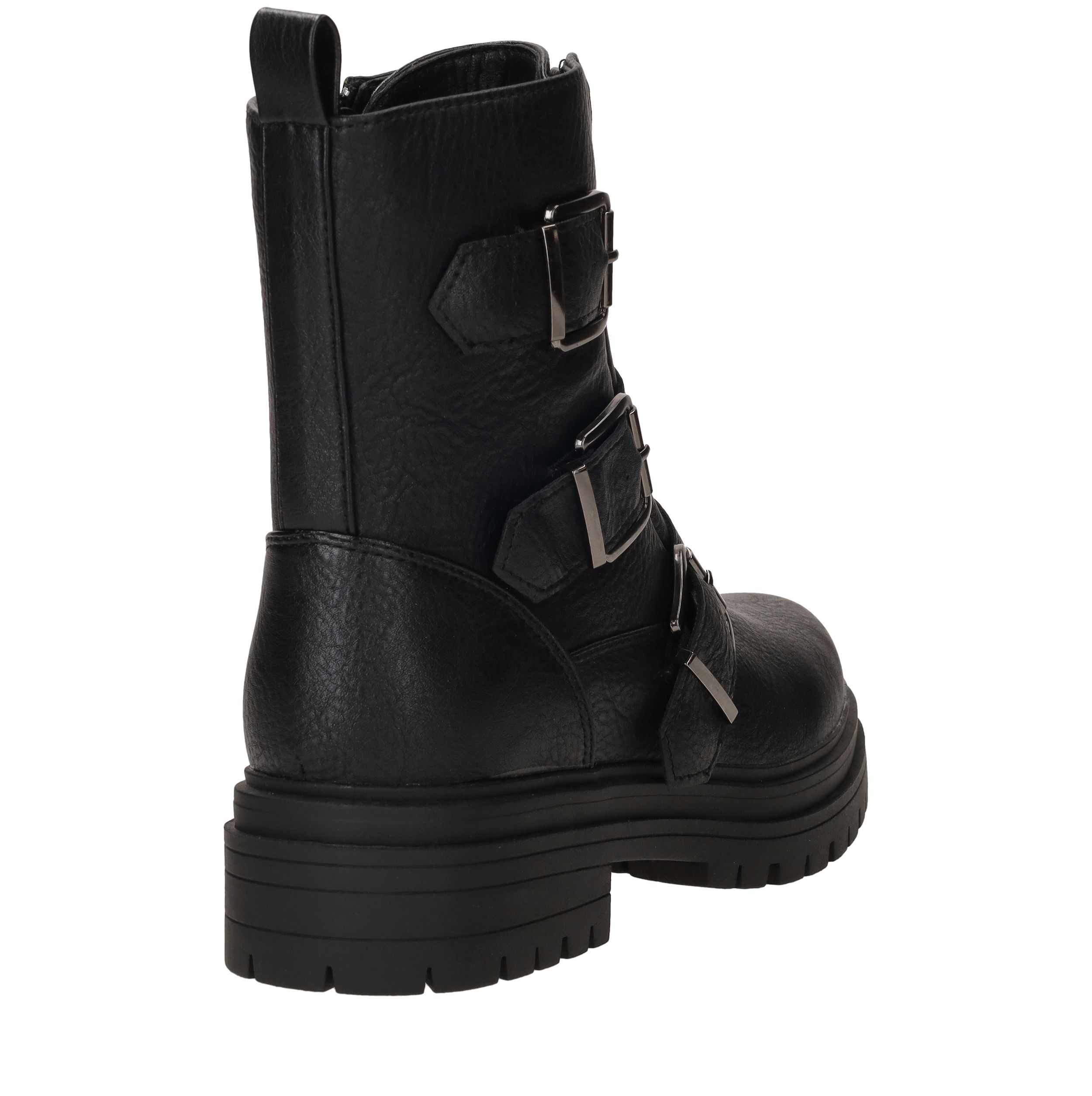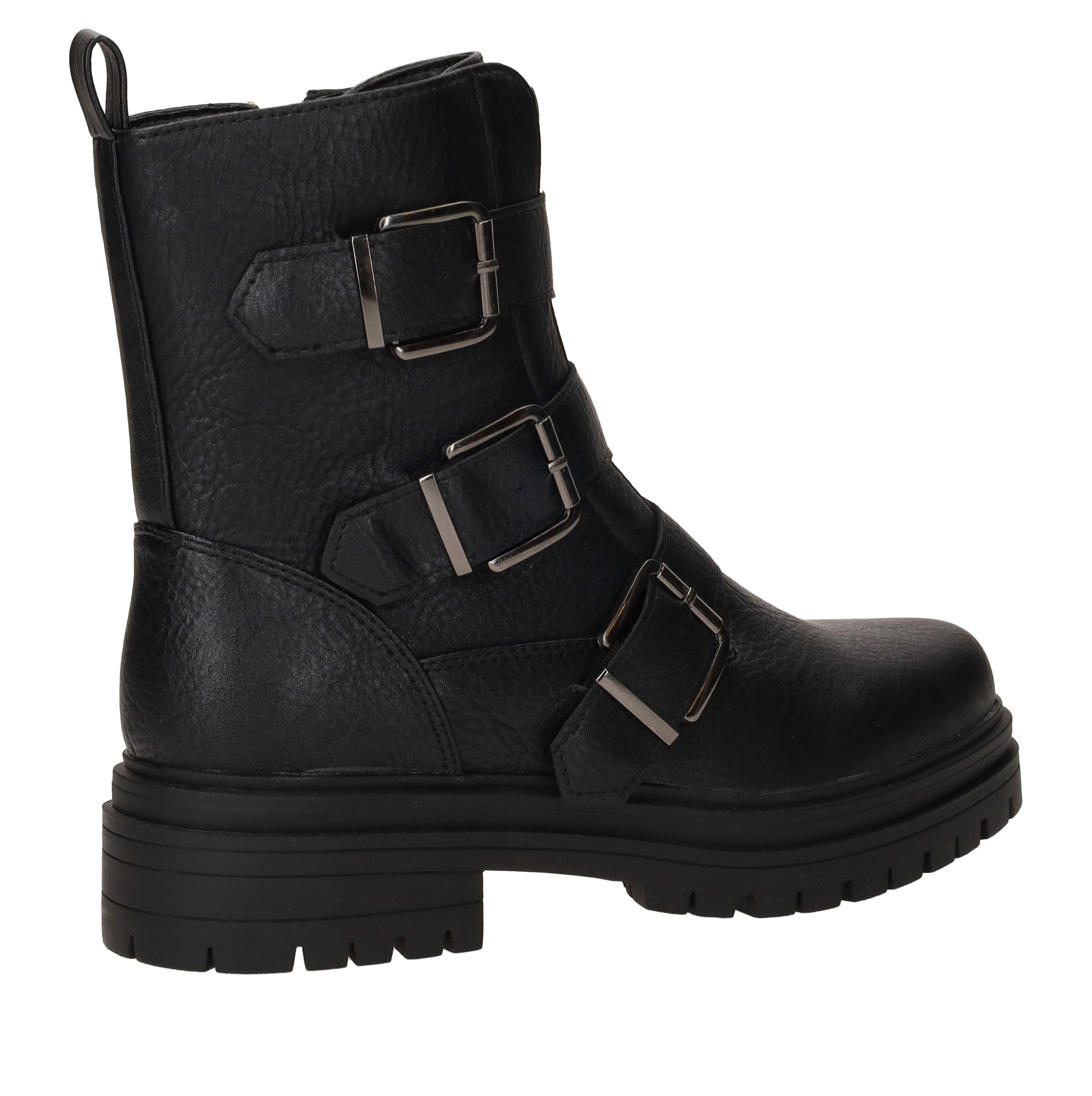 - De bikerboots zijn gemaakt van kunstleer en textiel.