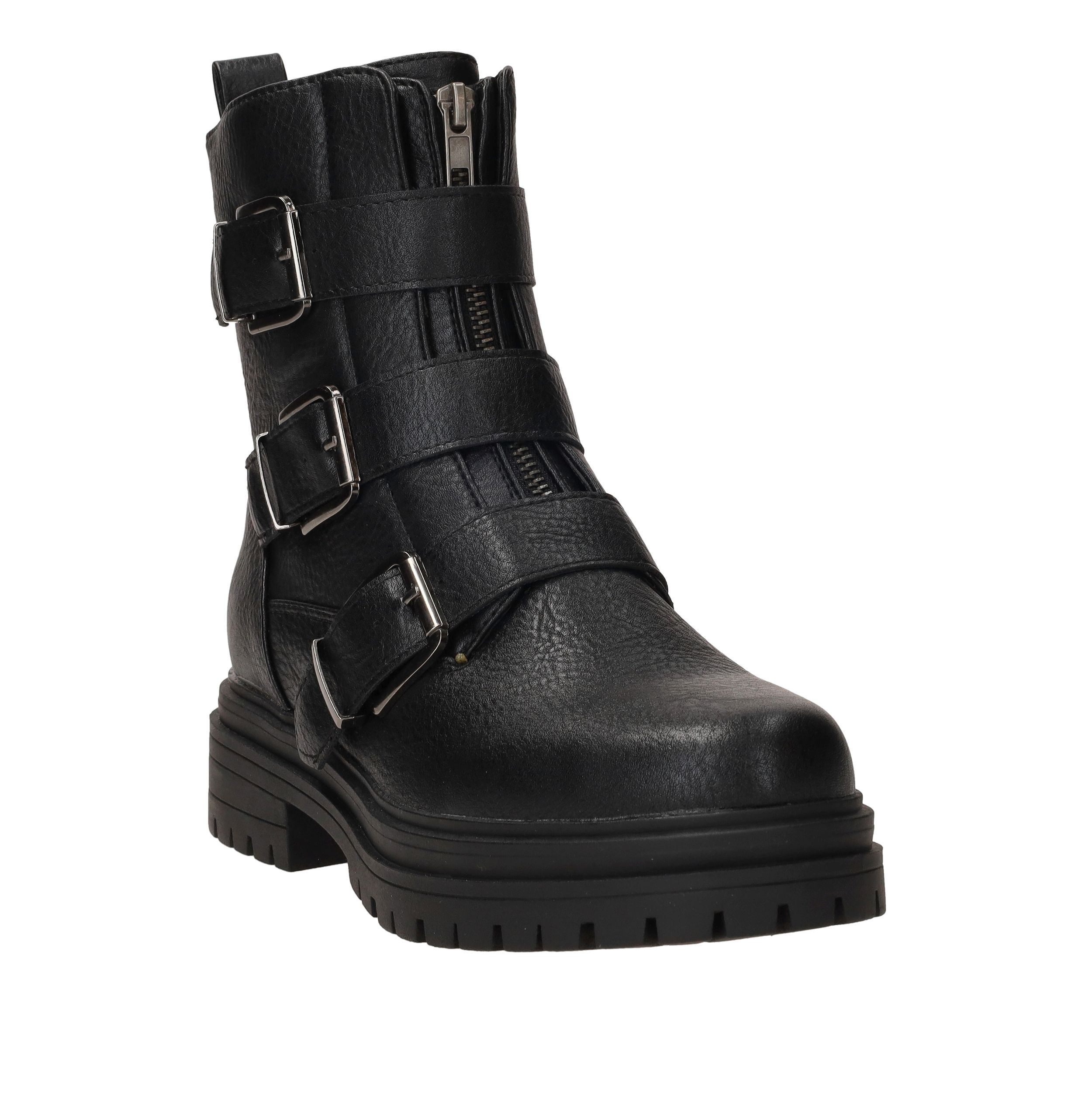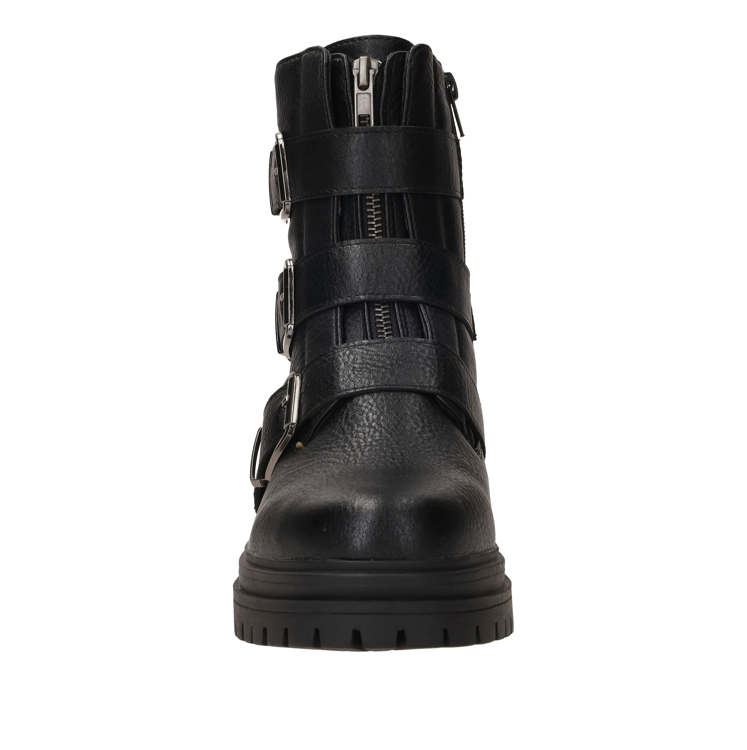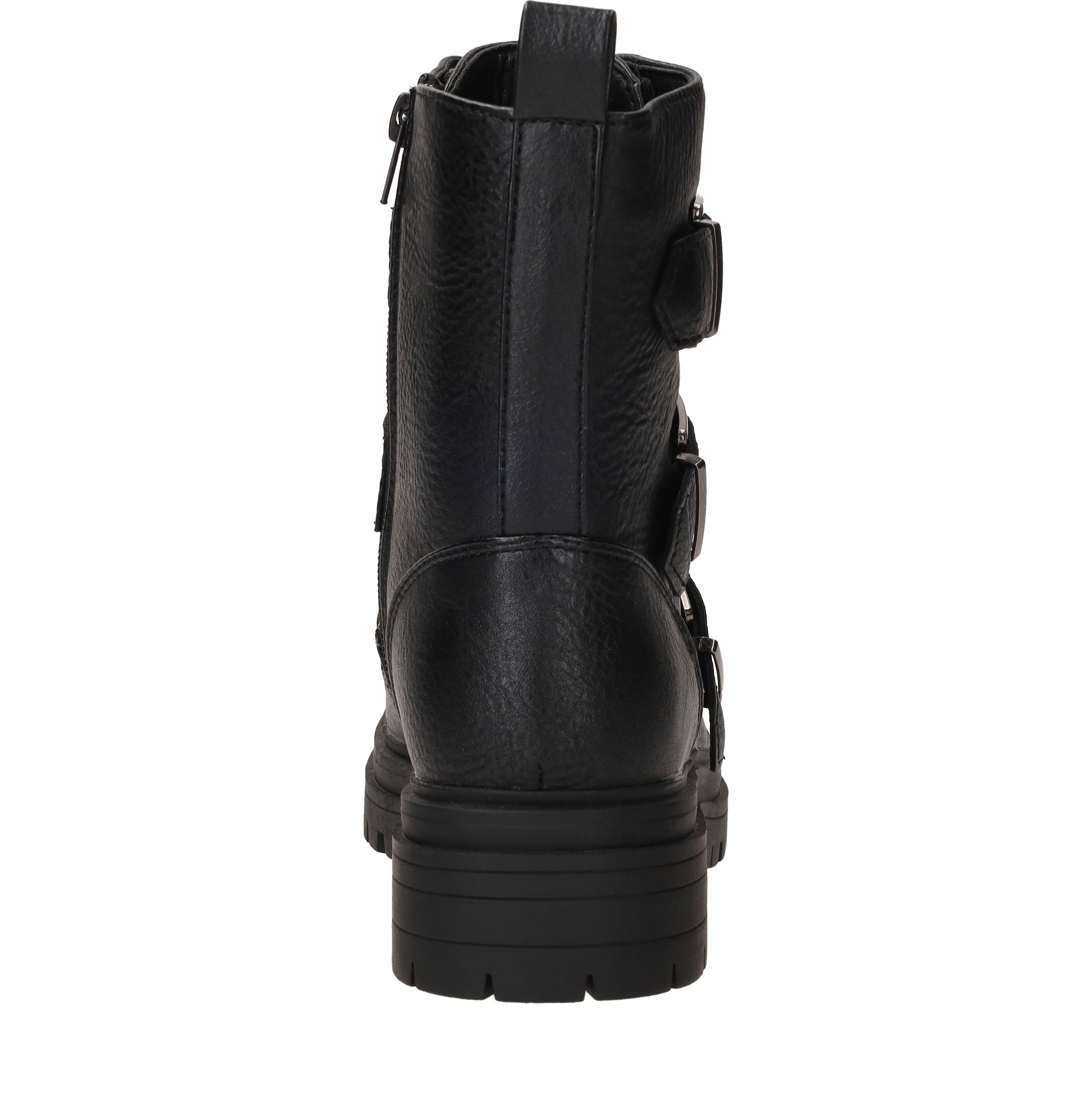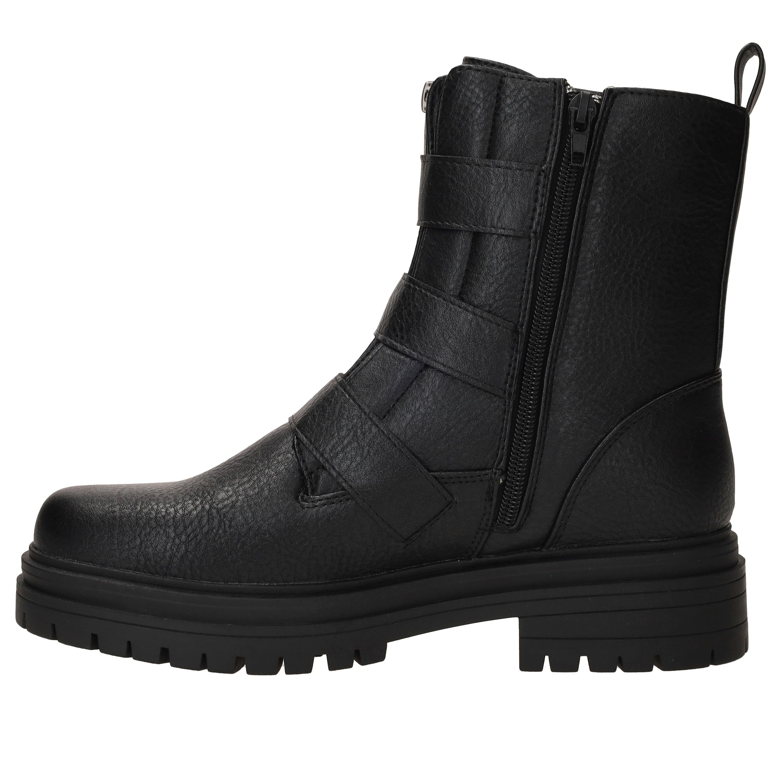 - De bikerboots zijn gemaakt van kunstleer en textiel.