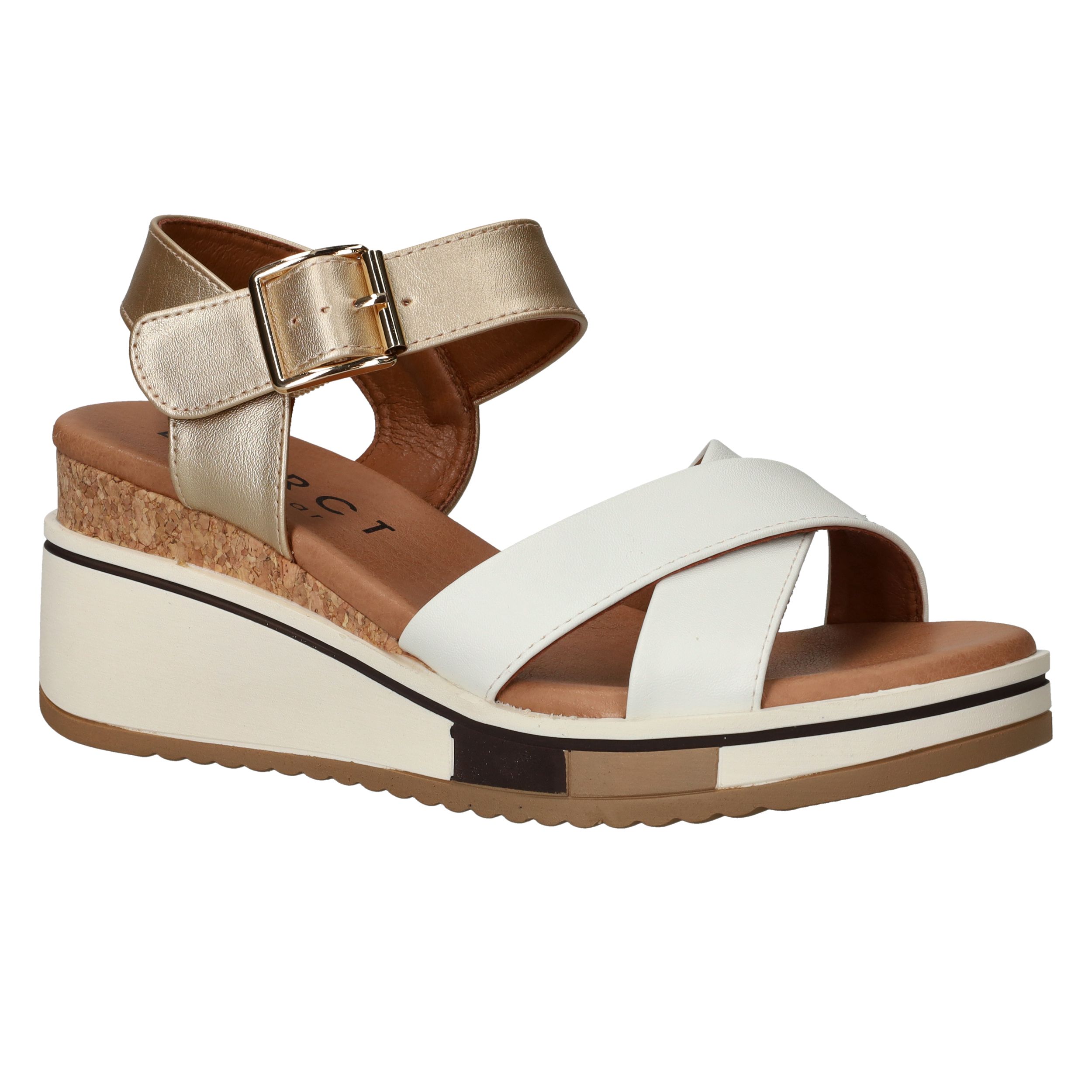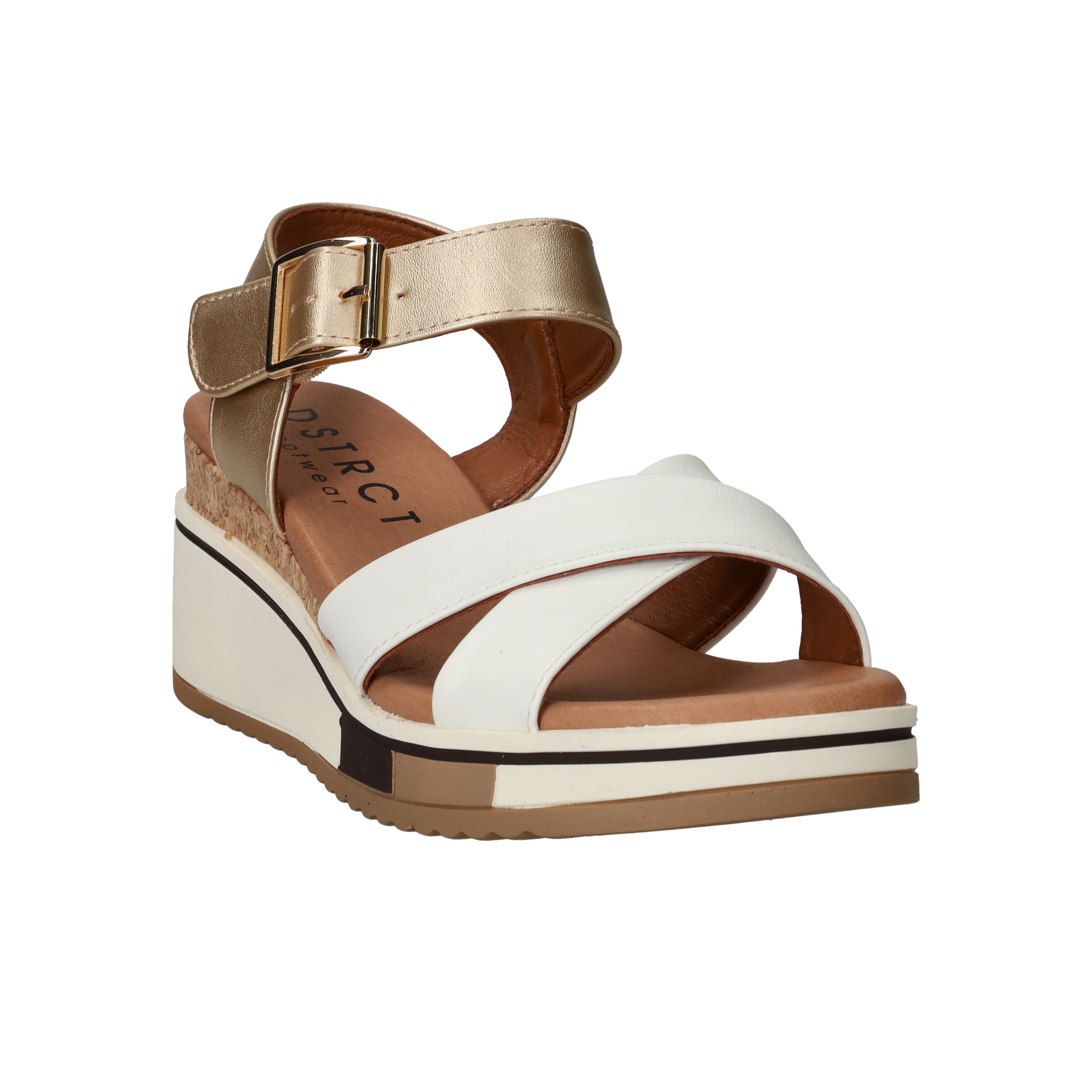 - de combinatie van wit en goud leer geeft de sandaal een frisse en modieuze look