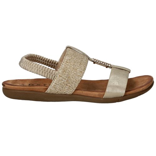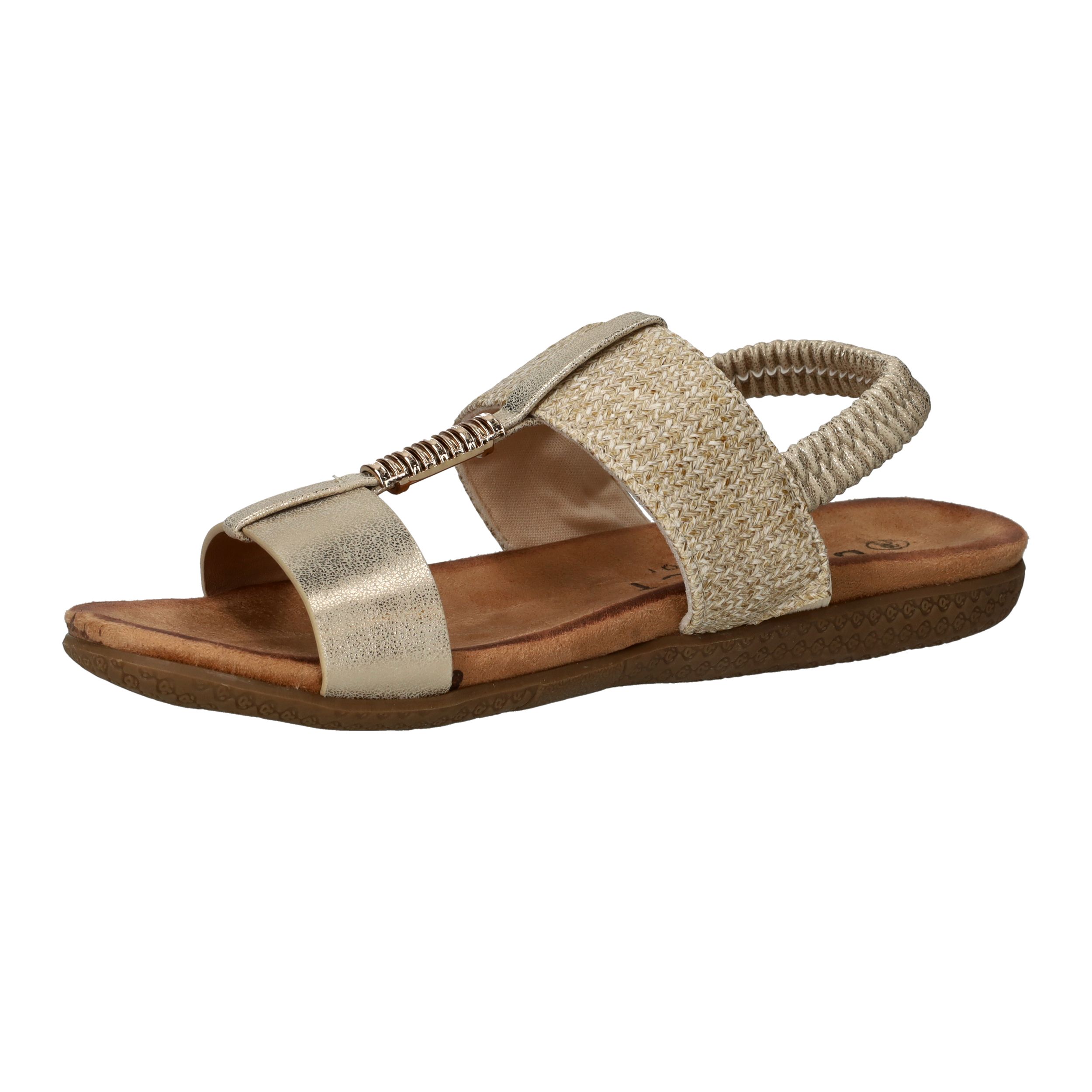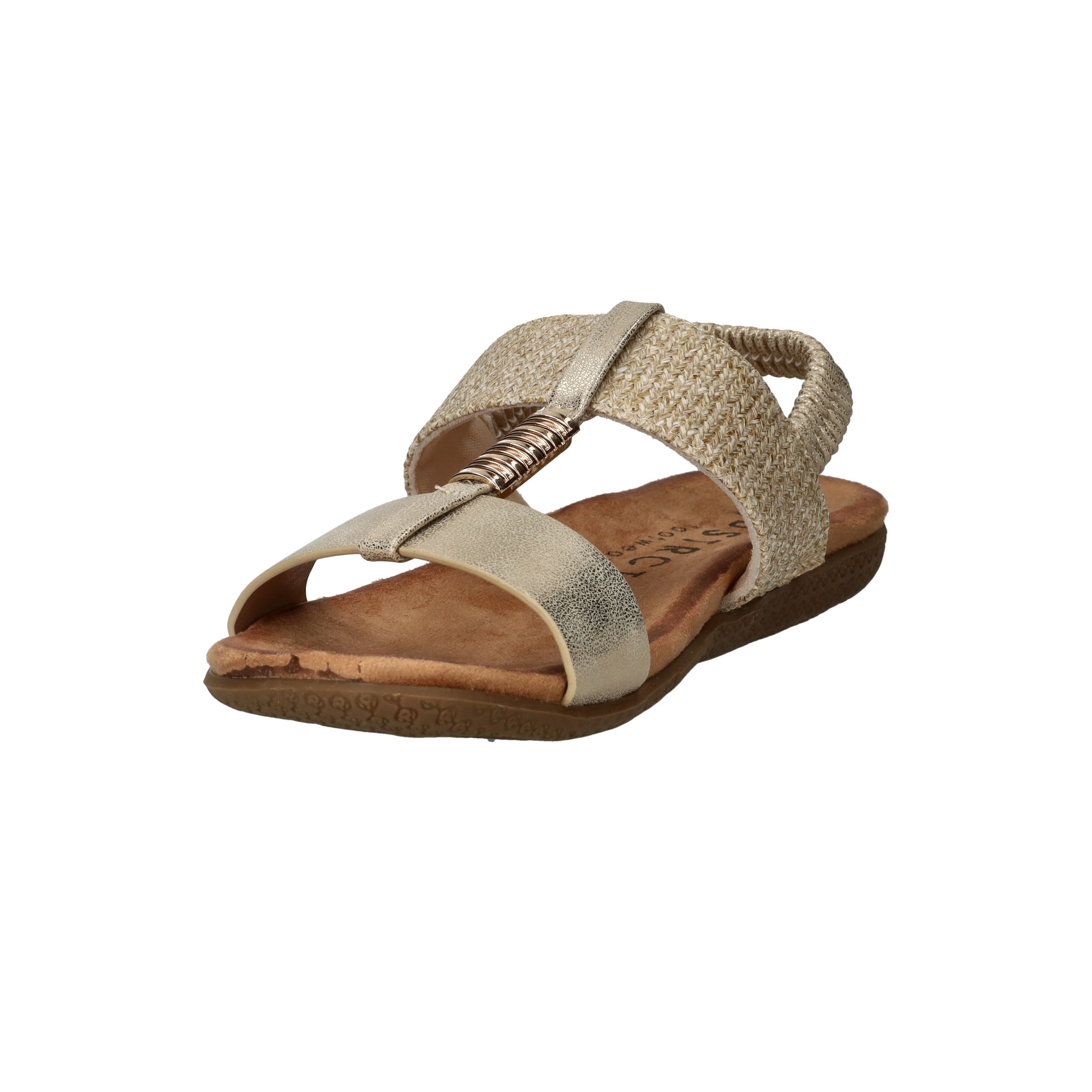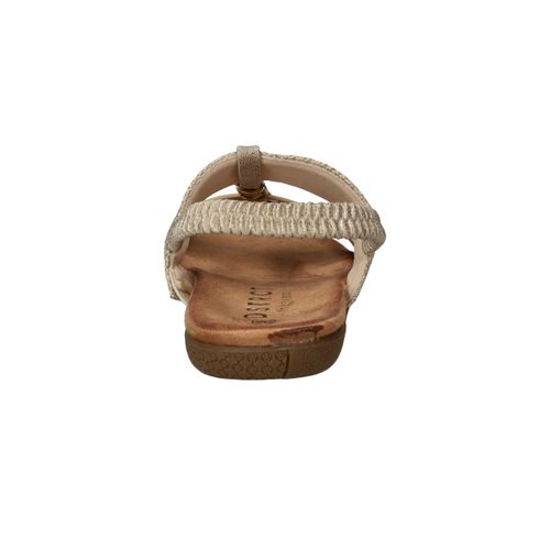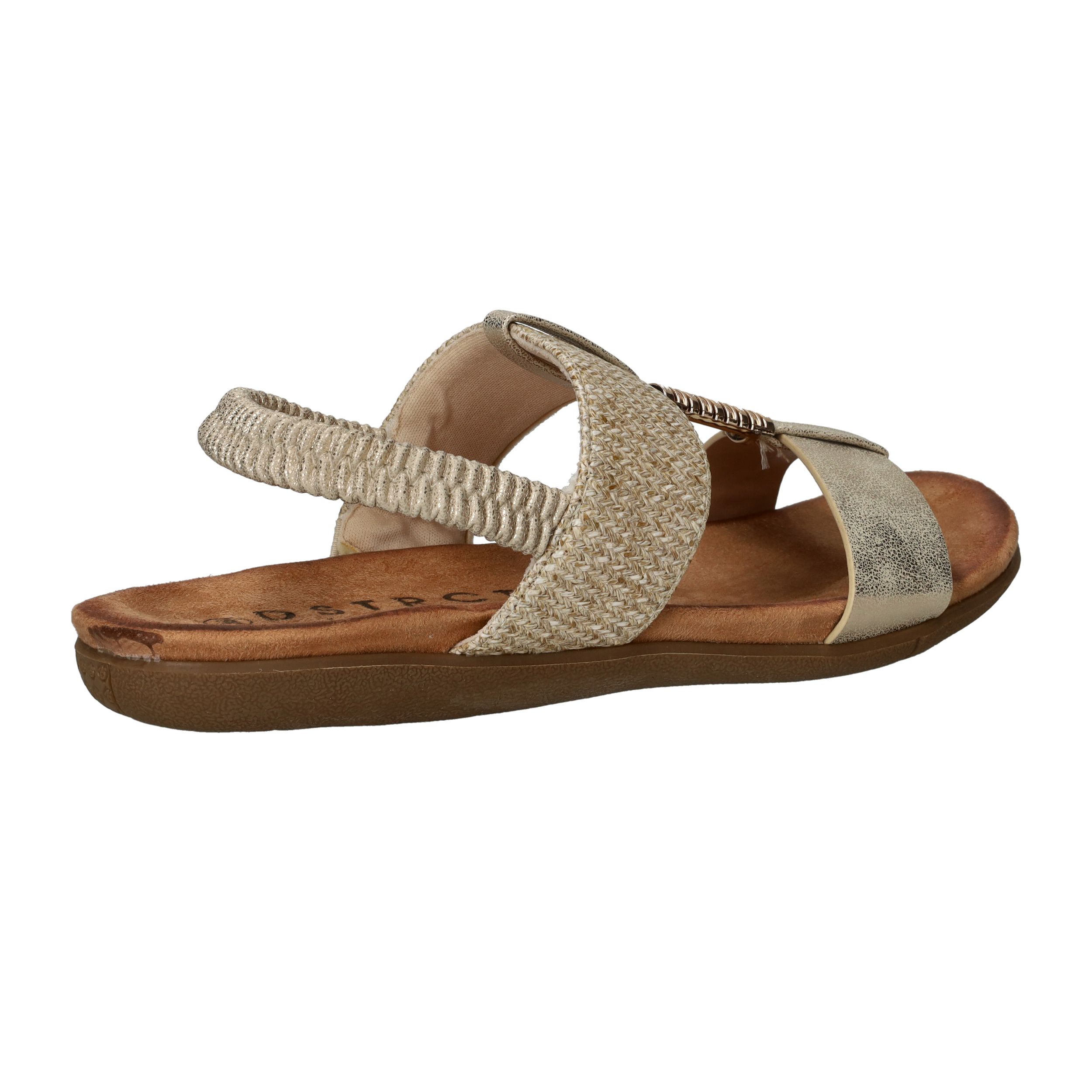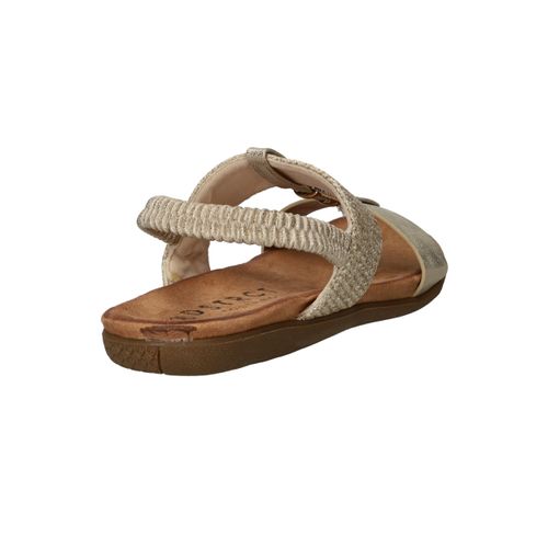 Deze stijlvolle sandalen van DSTRCT combineren comfort met een modieuze uitstraling. De mix van zacht textiel en subtiel glanzend kunstleer geeft deze sandaal een verfijnde look. Dankzij de elastische band trek je ze makkelijk aan, en het zachte voetbed zorgt voor aangenaam loopcomfort. Perfect voor dames die stijl en gemak zoeken op zomerse dagen.