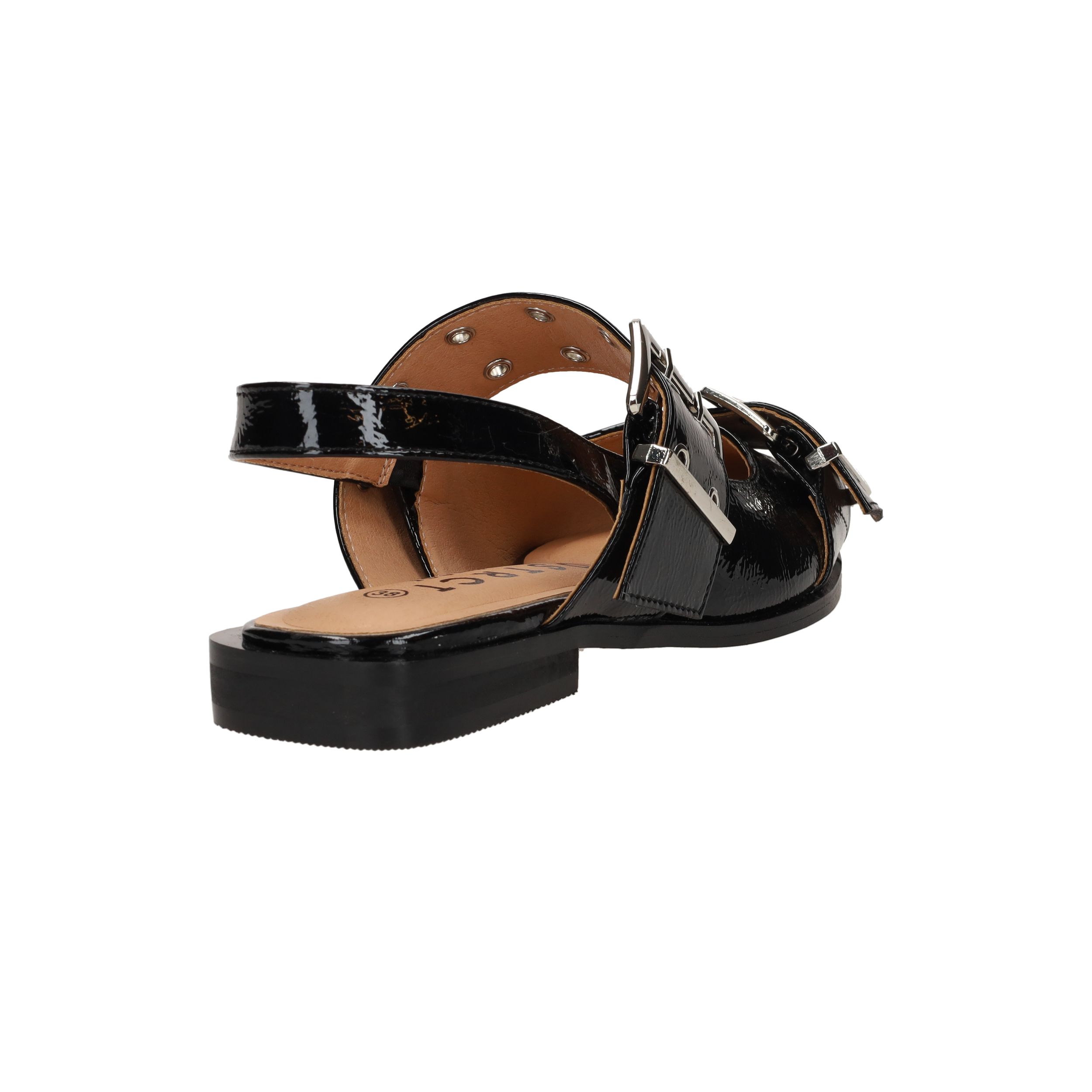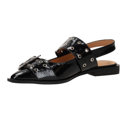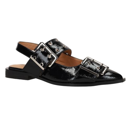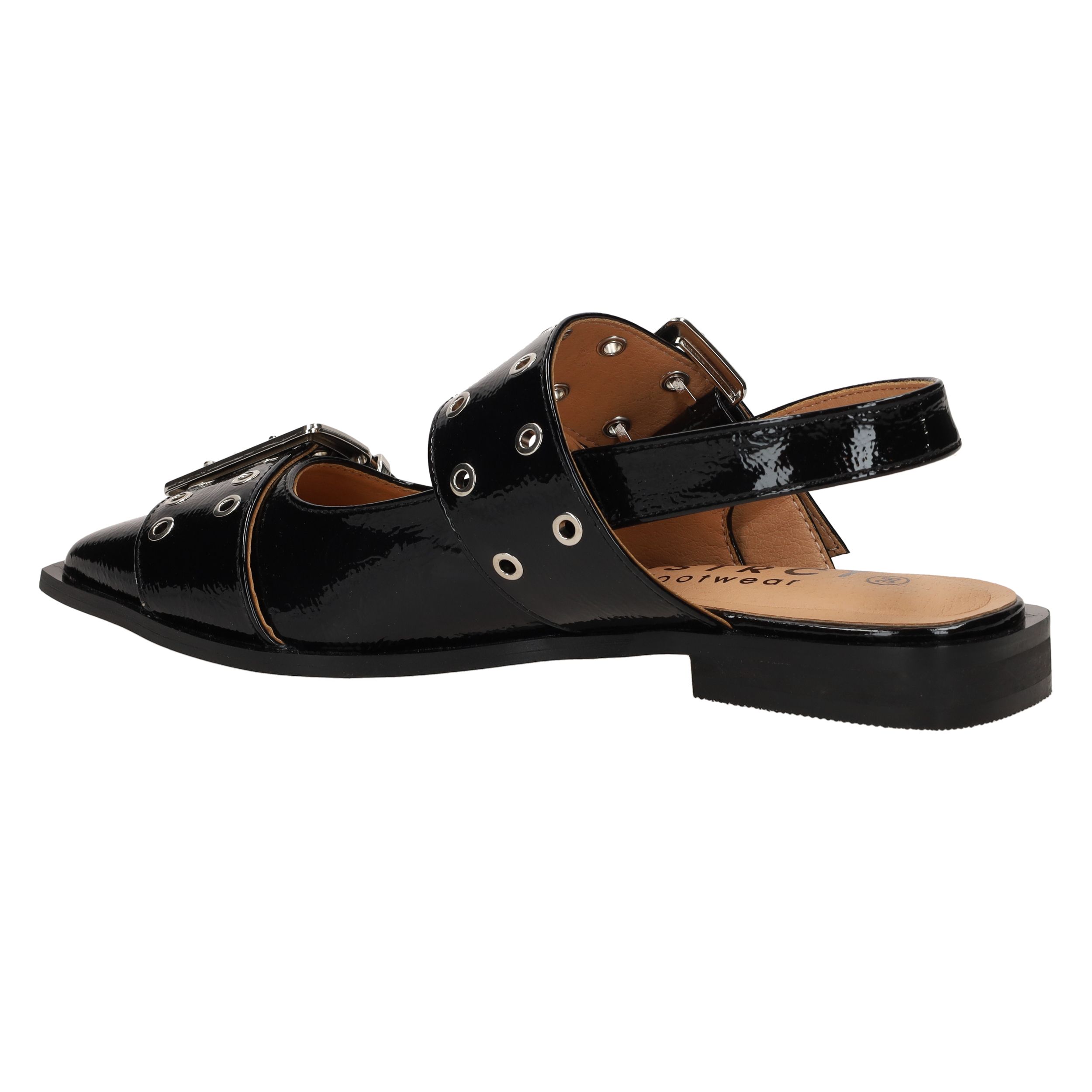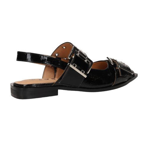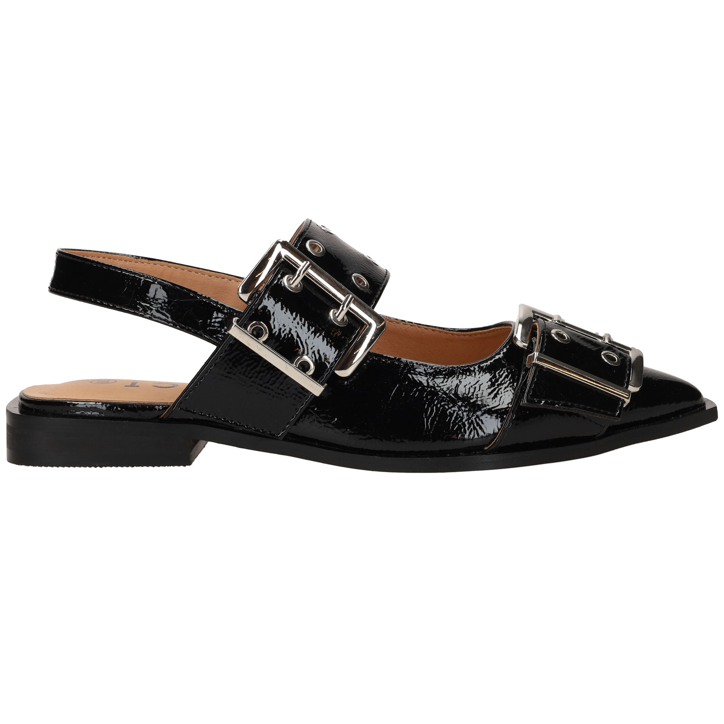 Super toffe DSTRCT slingback voor dames! De slingback heeft een gave lakzwarte kleur en grote opvallende gespen.