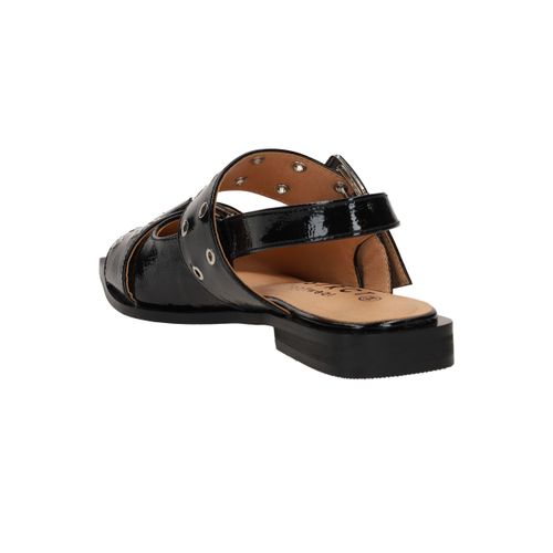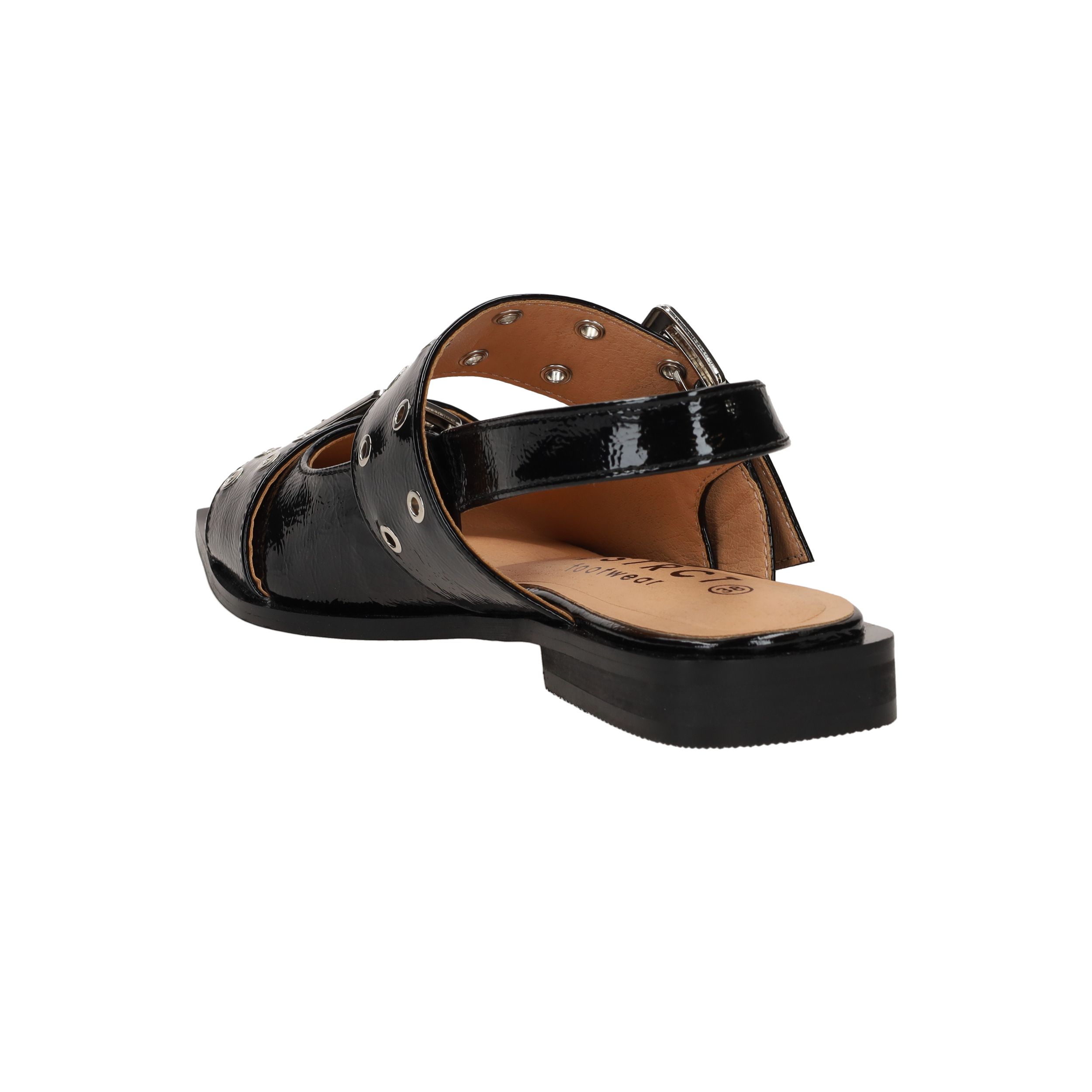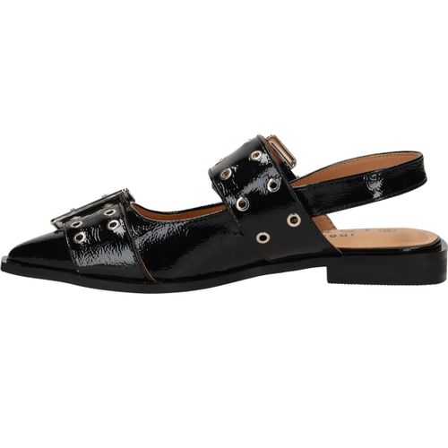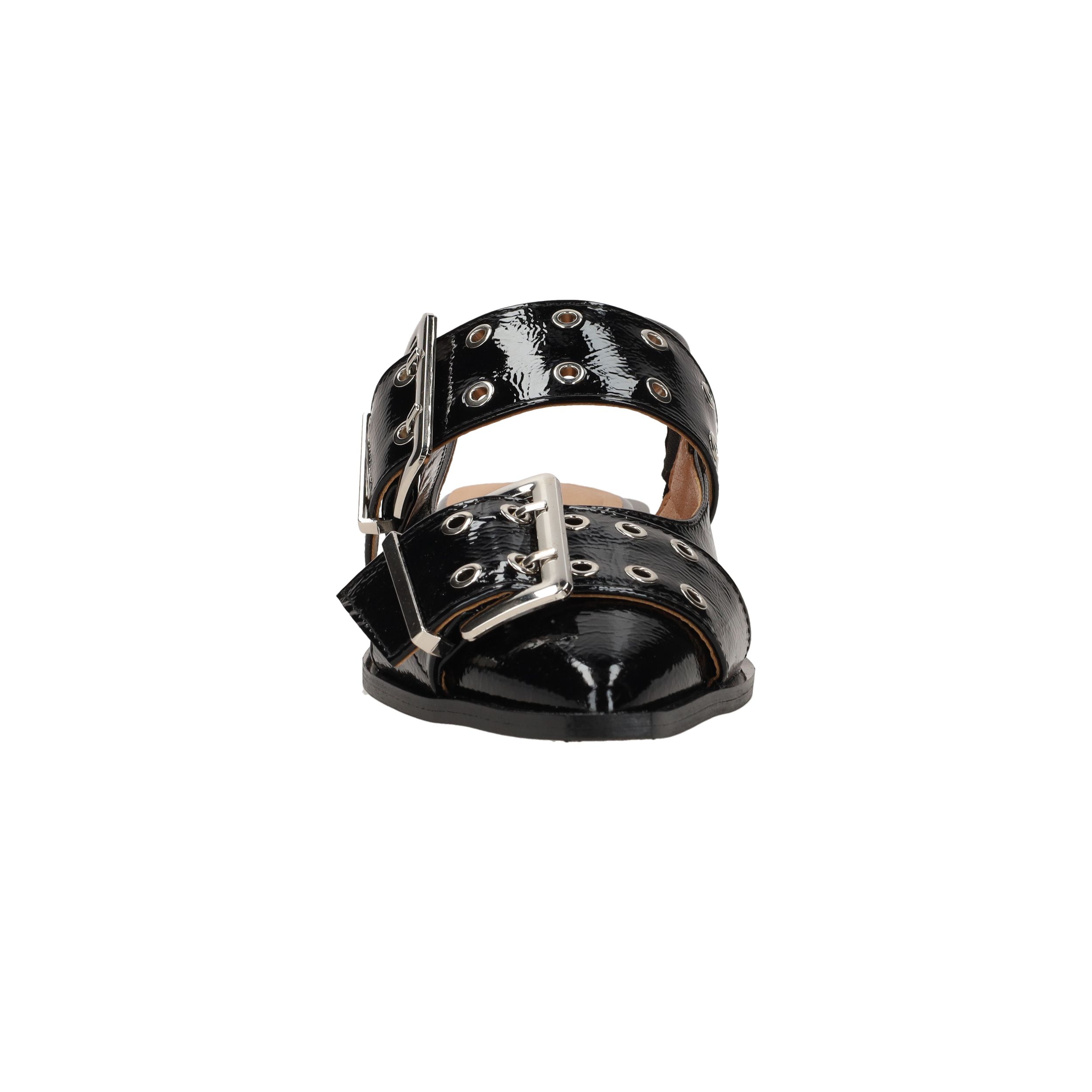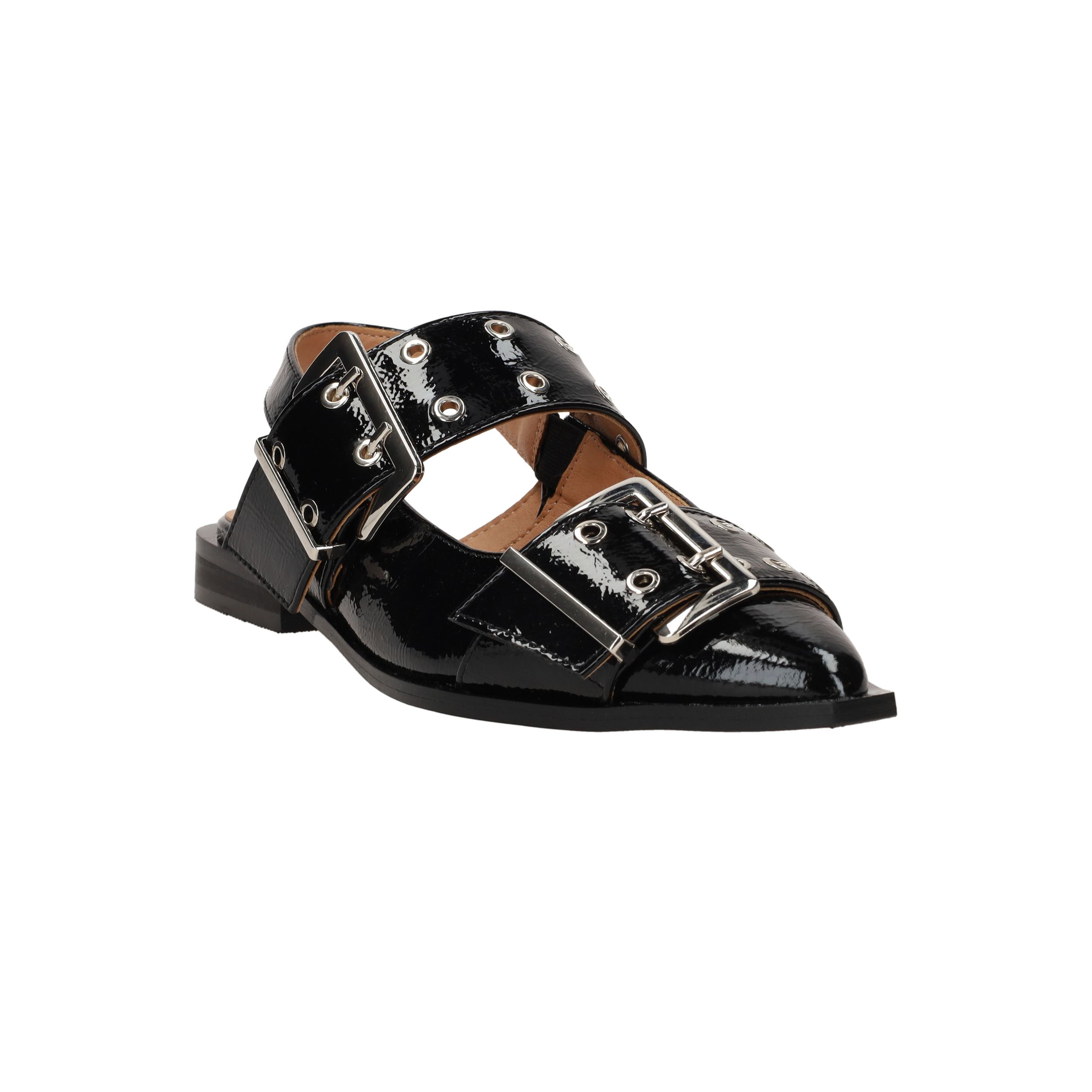 Super toffe DSTRCT slingback voor dames! De slingback heeft een gave lakzwarte kleur en grote opvallende gespen.