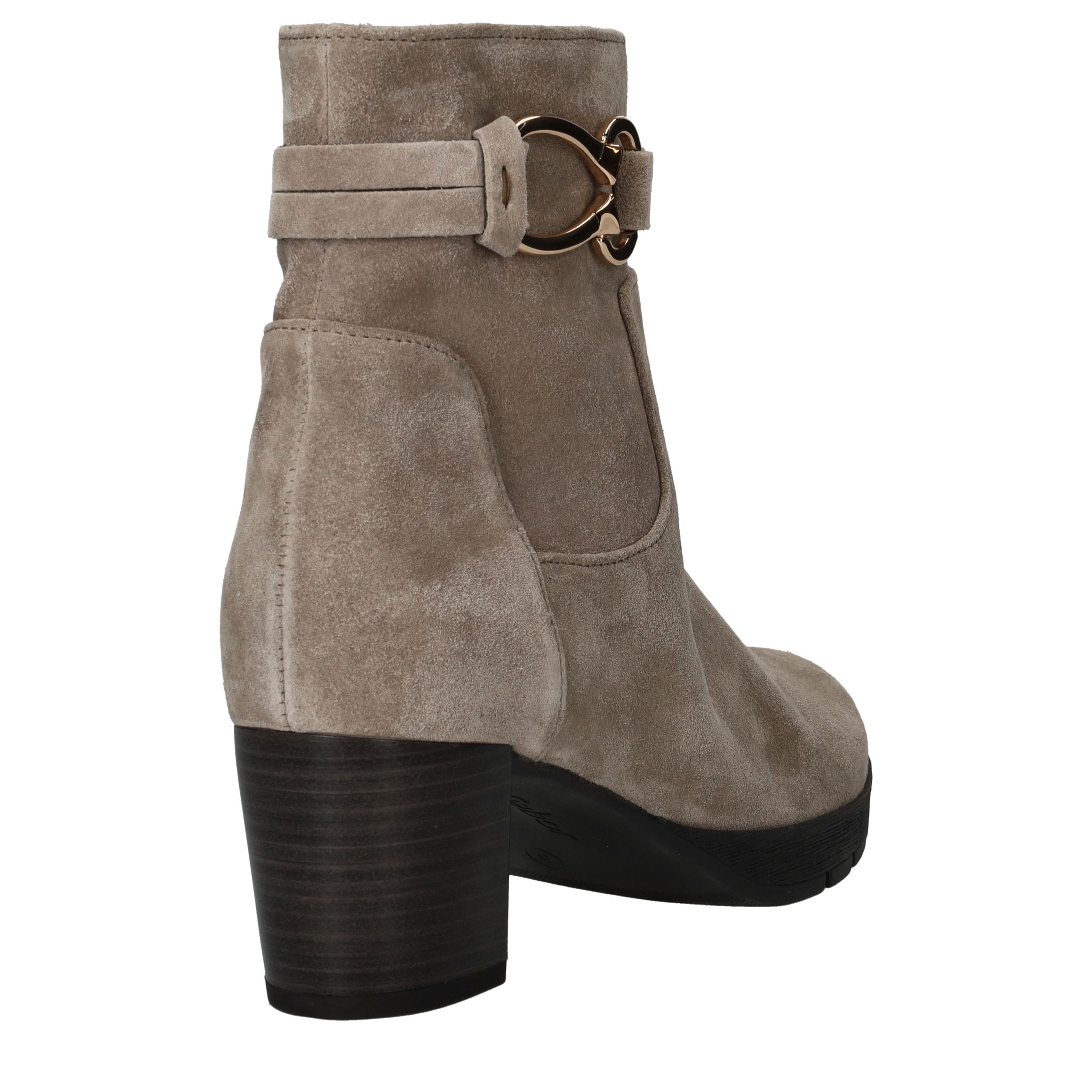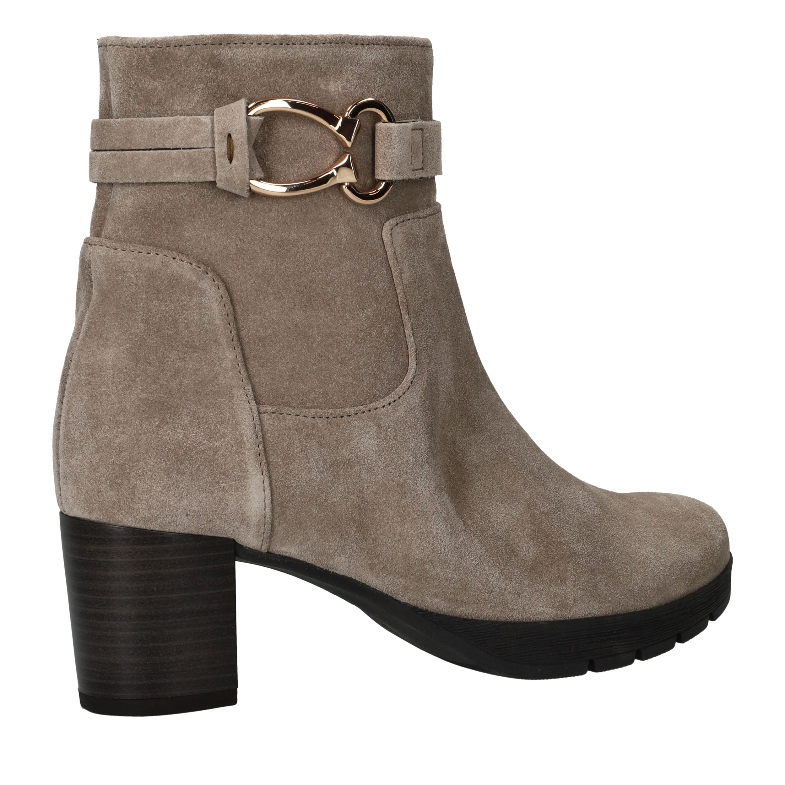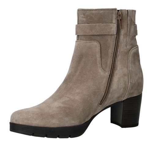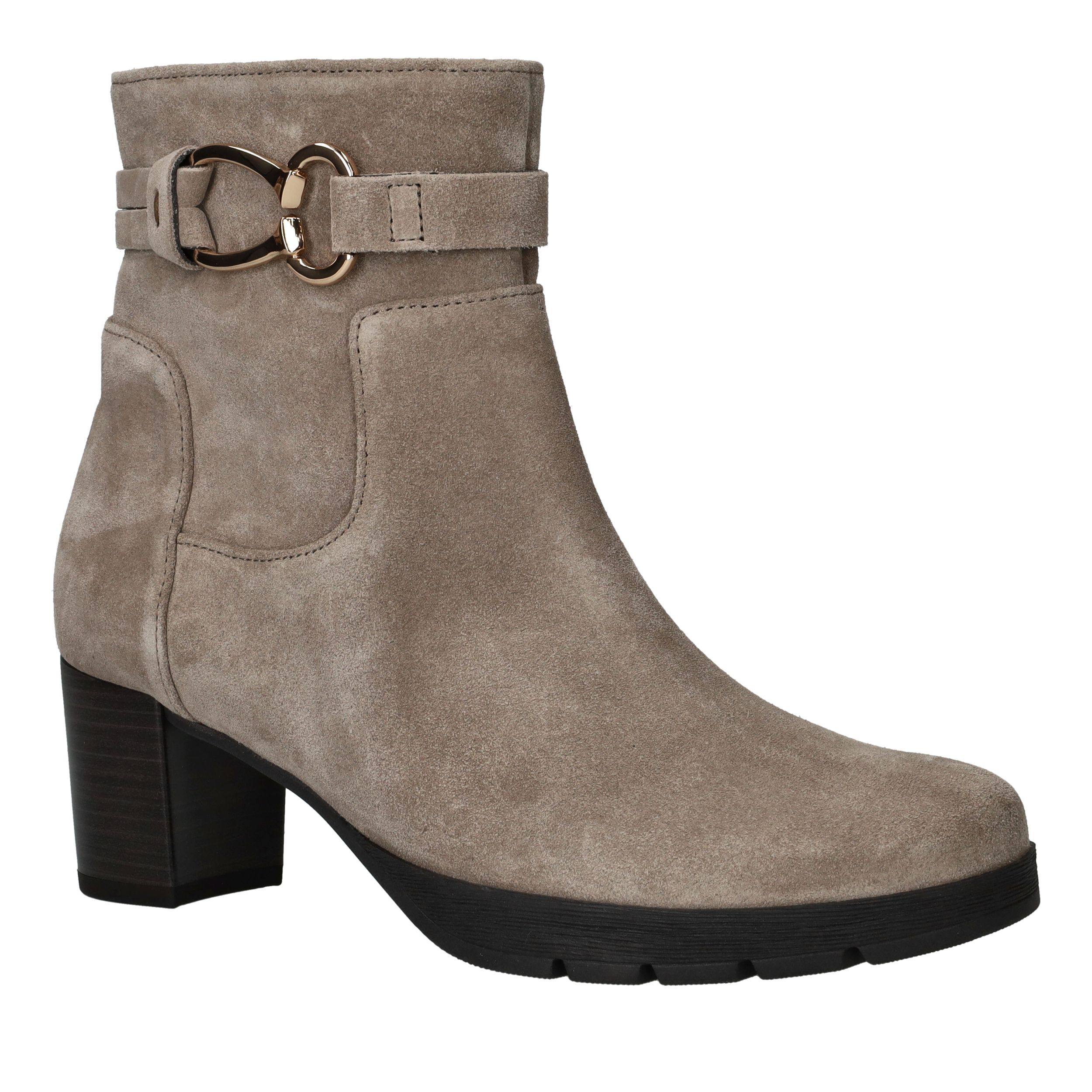 Met deze suède enkellaarsjes van Gabor geef je iedere outfit een elegante uitstraling. Het zachte suède voelt comfortabel aan en de stevige hak zorgt voor een vrouwelijke, maar stabiele look. De subtiele goudkleurige gesp maakt dit model stijlvol en tijdloos tegelijk.