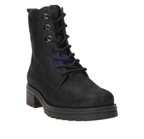 Toffe blauwe veterboot van Gabor met subtiele glitter. De veterboot is gemaakt van leer.