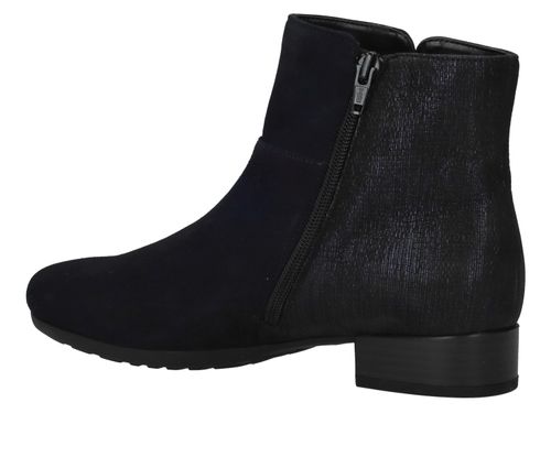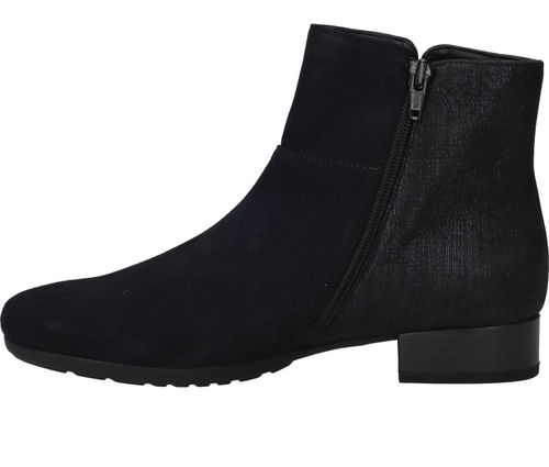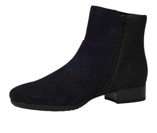Fijn blauw leren enkellaarsje van Gabor. Door de comfortabele hakhoogte is dit het ideale laarsje om dagelijks te dragen.
