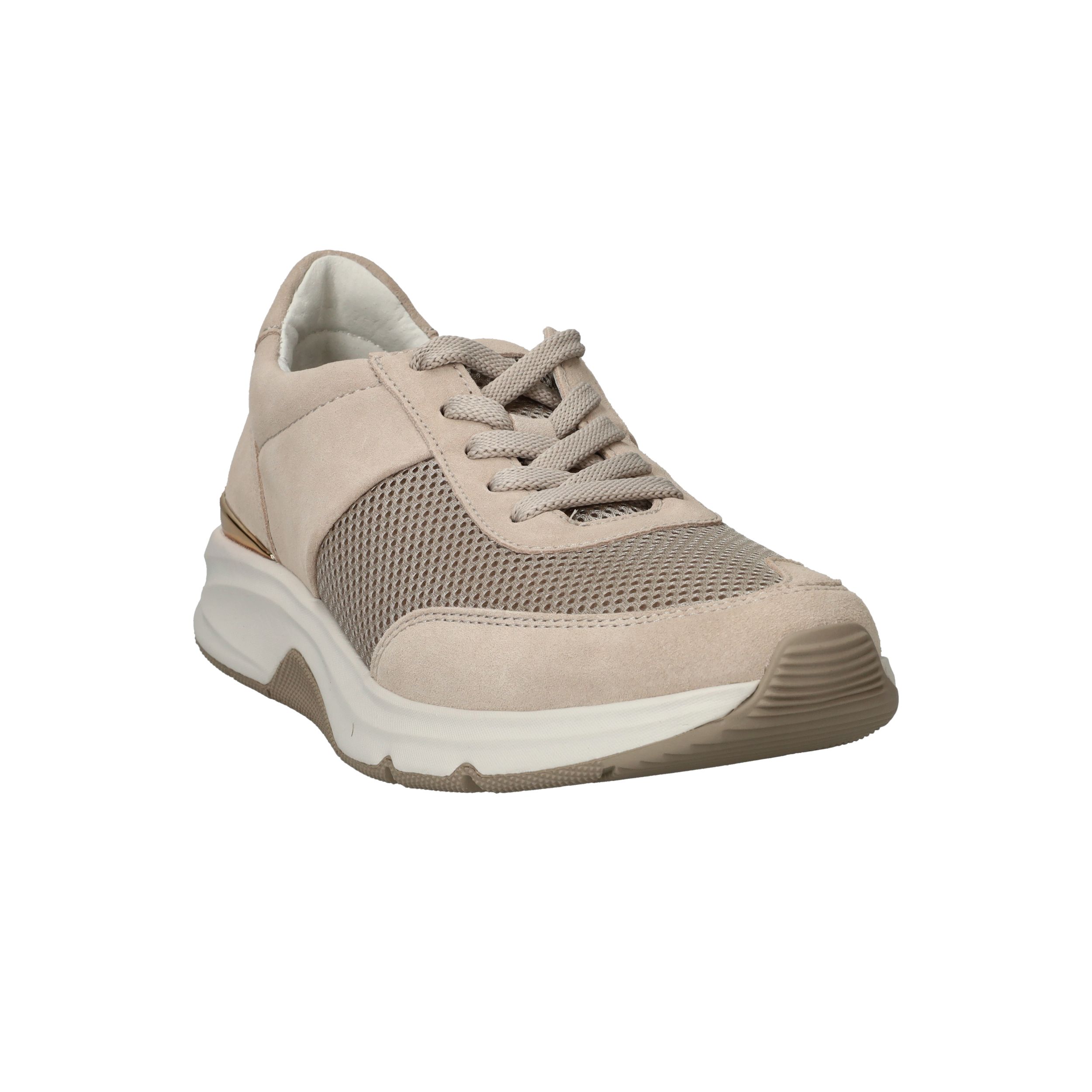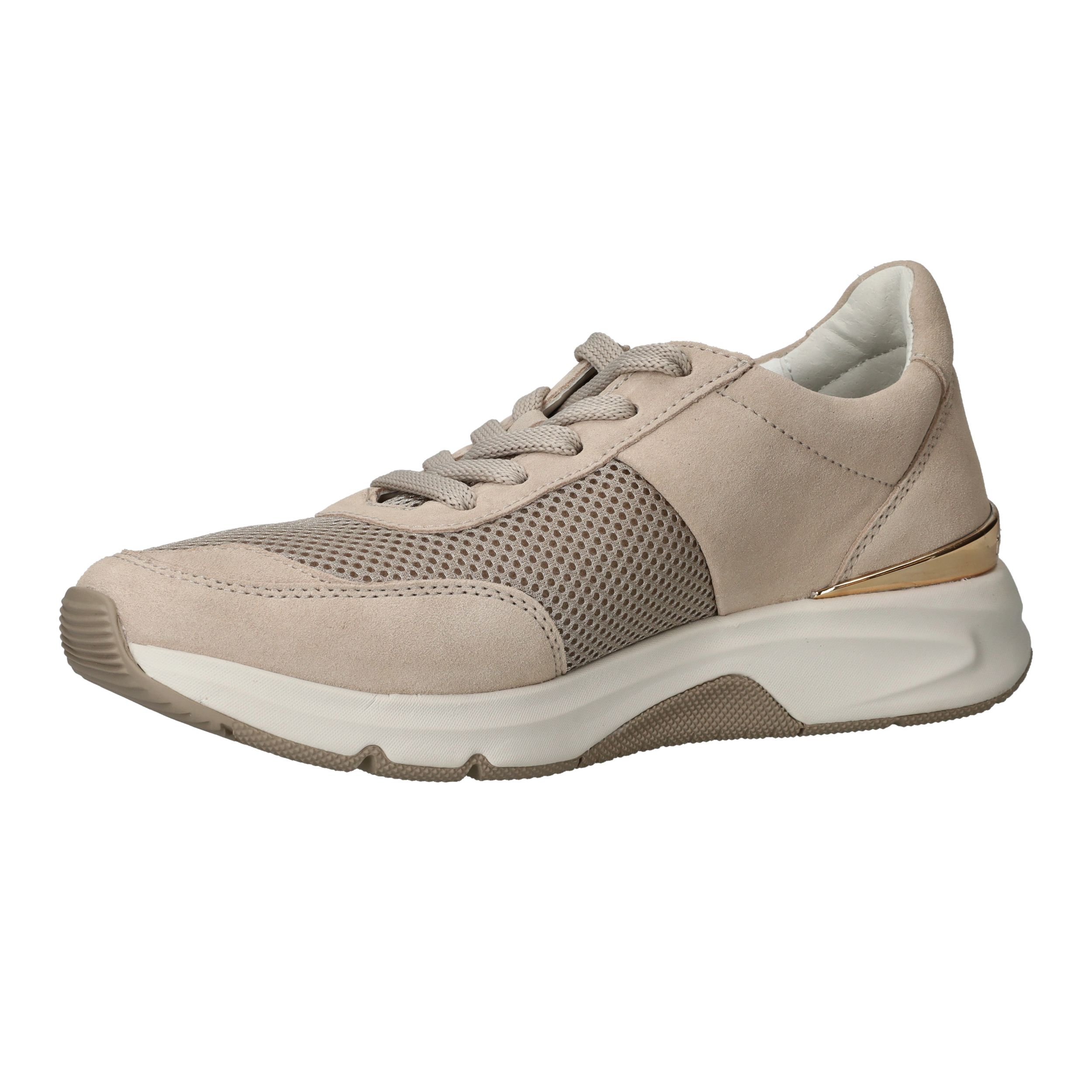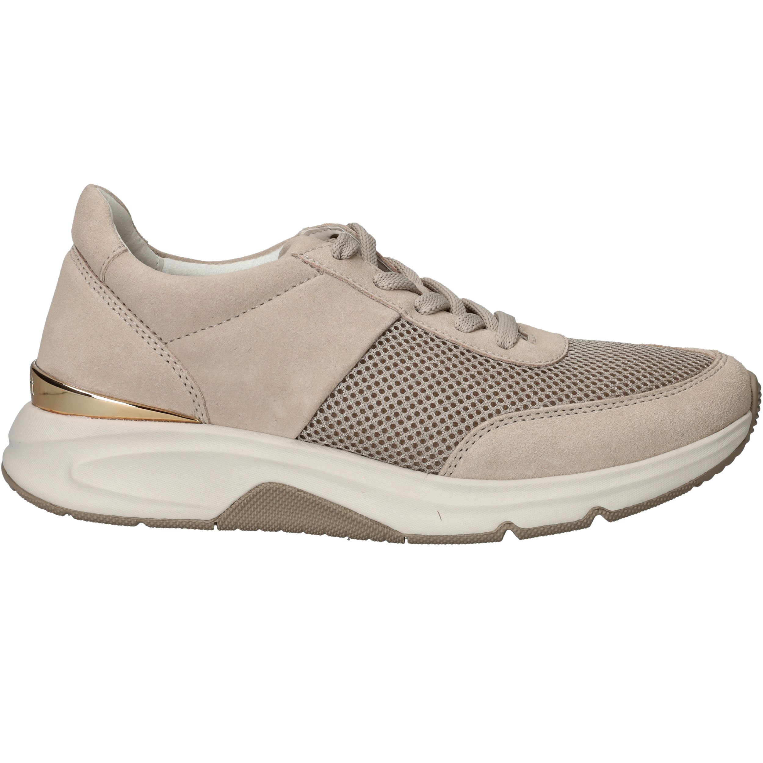 Prachtige beige Gabor Rollingsoft sneaker voor dames. De Rolling Soft techniek zorgt voor optimale afwikkeling van de voet en betere stabiliteit.