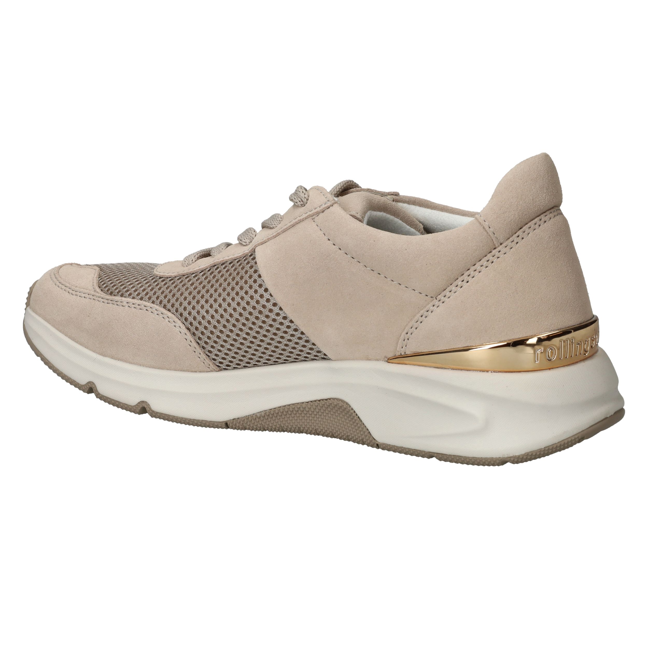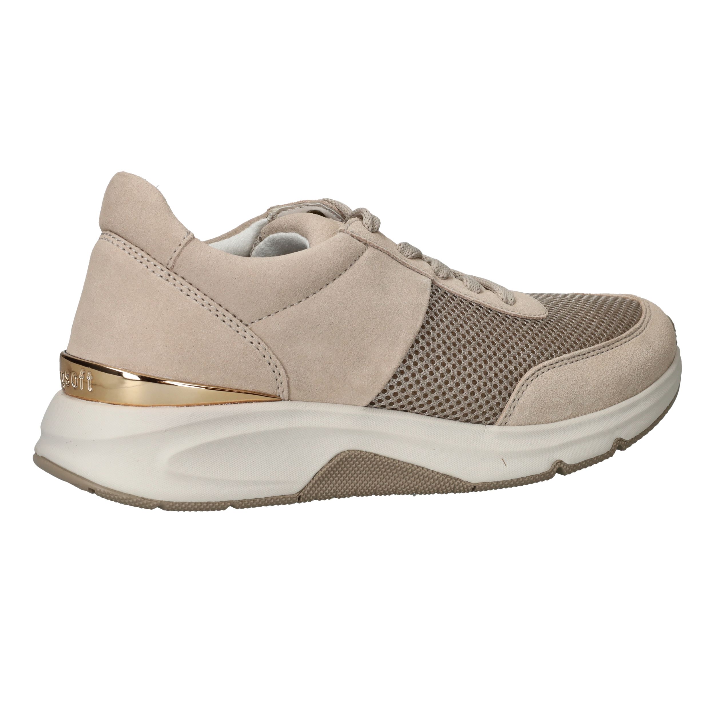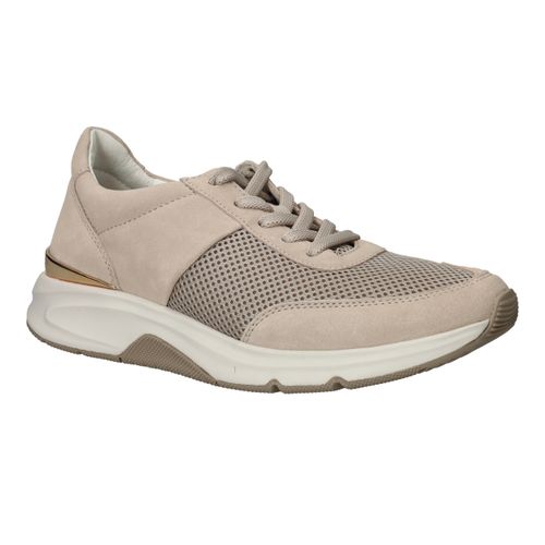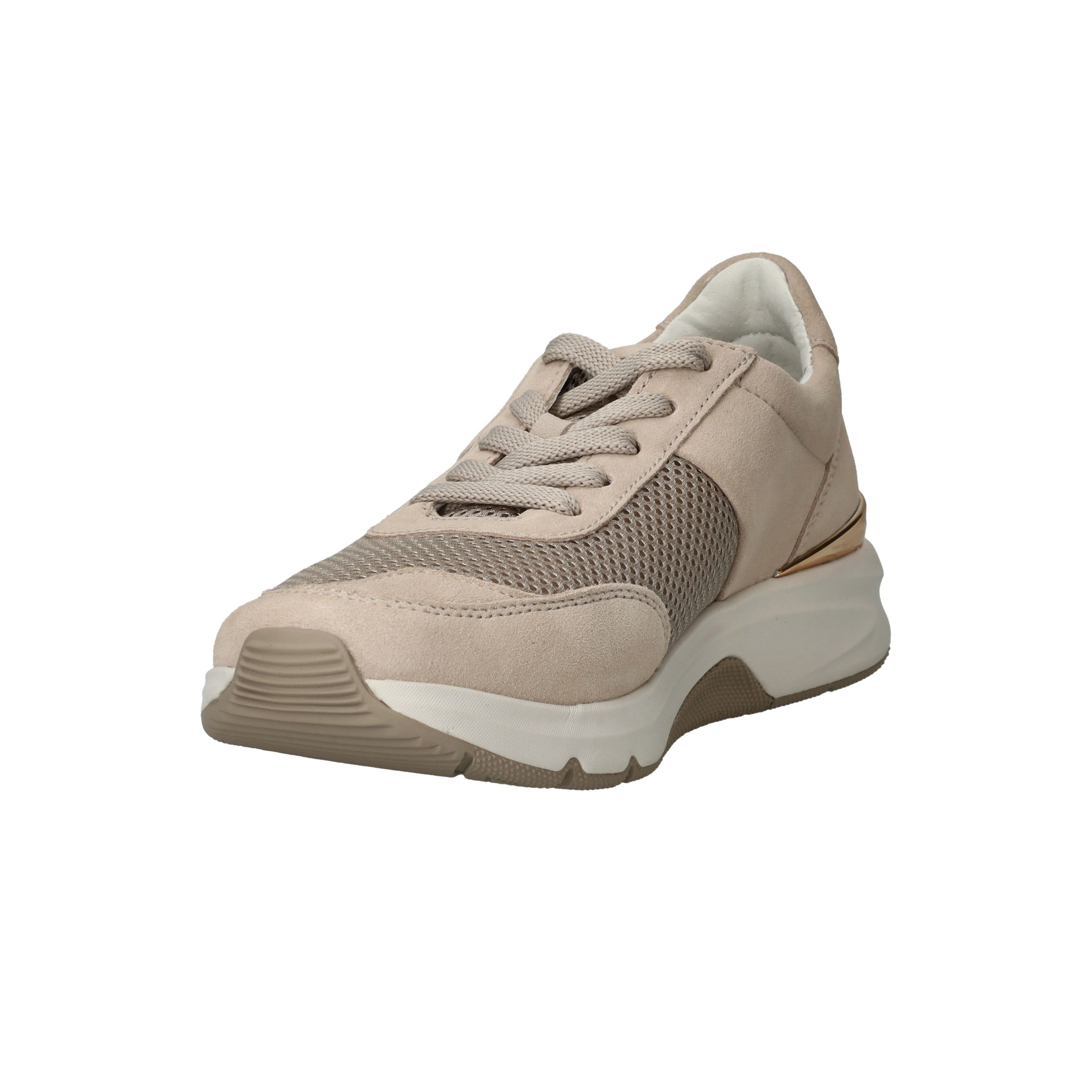 Prachtige beige Gabor Rollingsoft sneaker voor dames. De Rolling Soft techniek zorgt voor optimale afwikkeling van de voet en betere stabiliteit.
