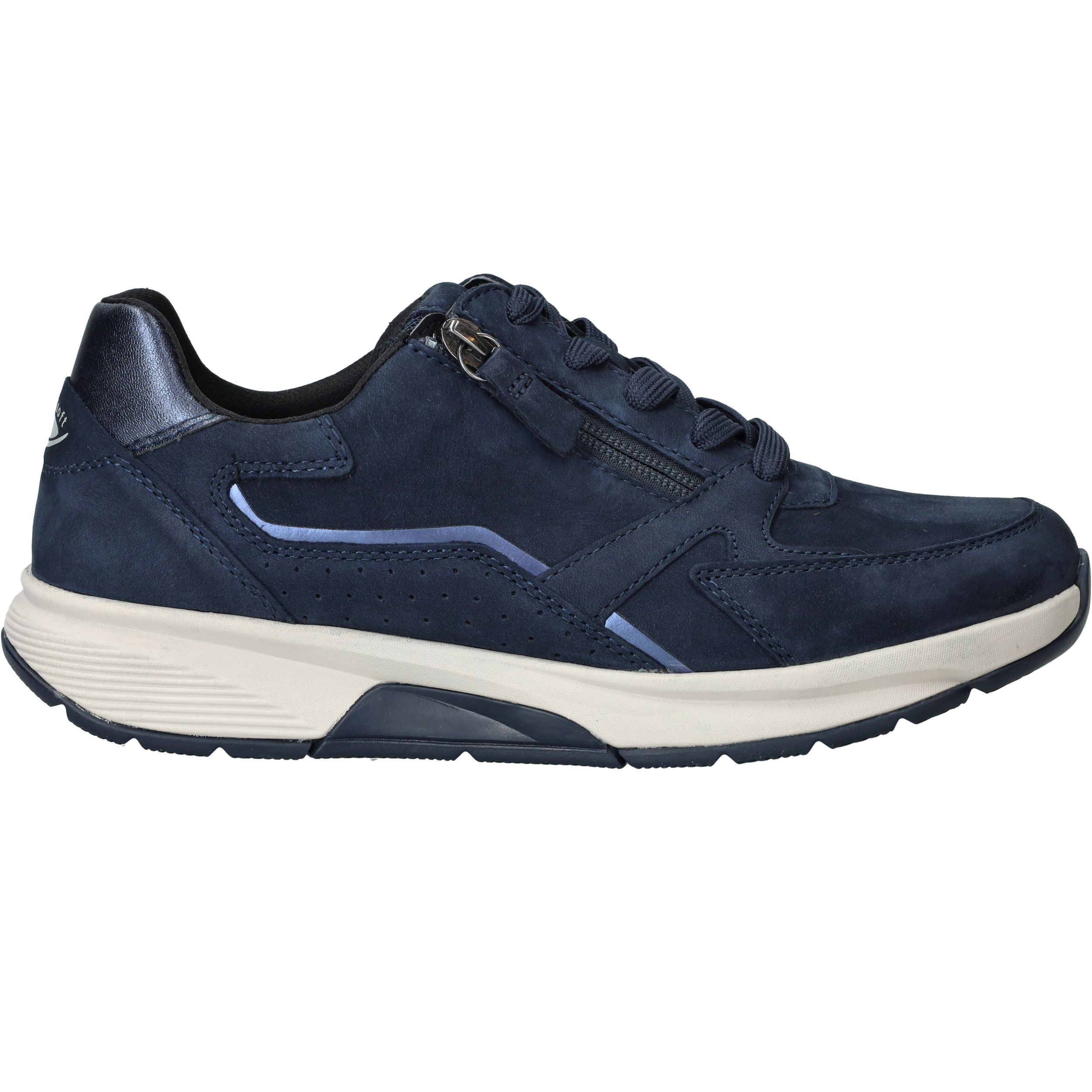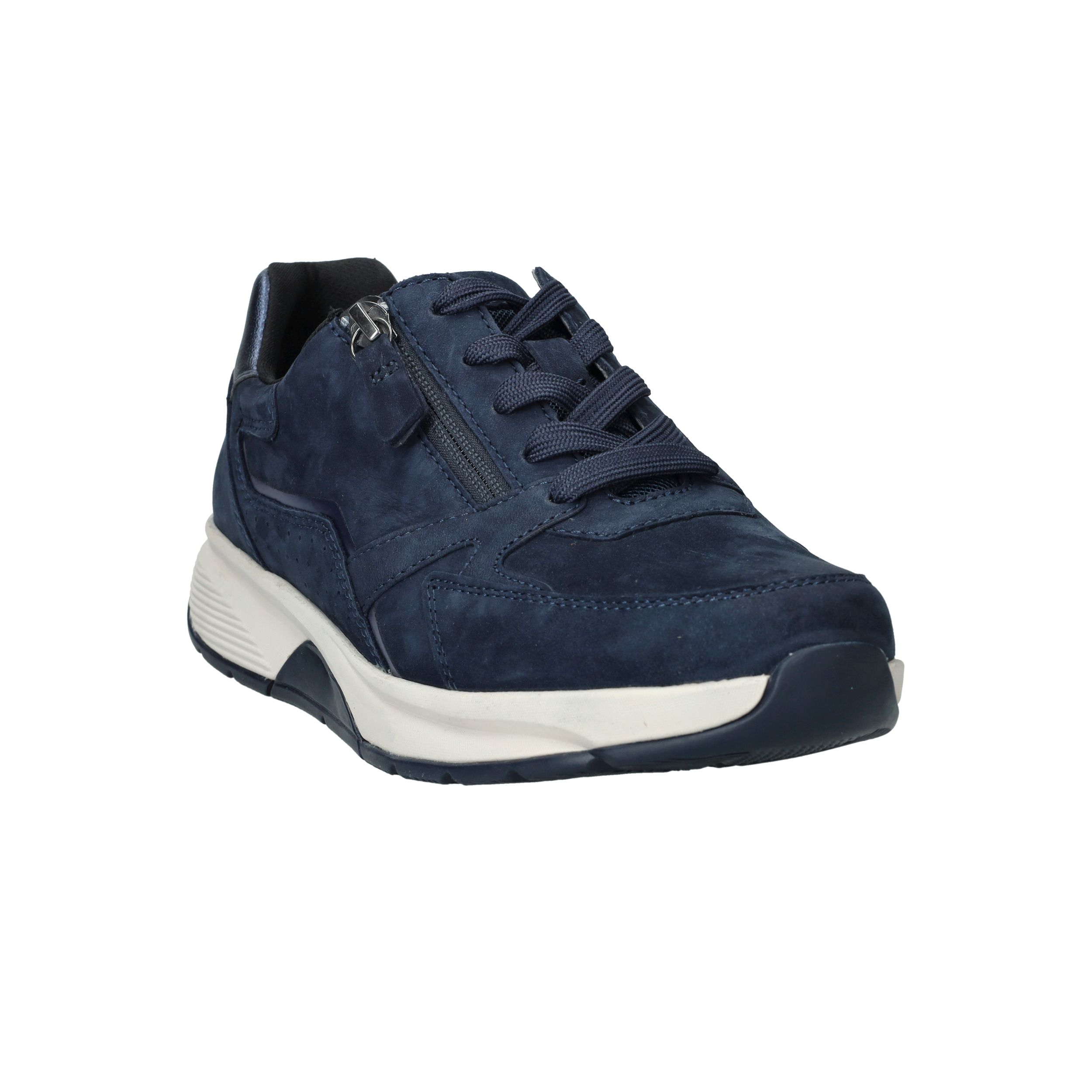 Deze stijlvolle sneakers van Gabor combineren elegantie met dagelijks comfort. De donkerblauwe suède buitenkant geeft een luxe uitstraling, terwijl de zachte voering van kunstleer en textiel zorgt voor een aangename pasvorm. Dankzij de combinatie van een vetersluiting en ritssluiting trek je de sneaker gemakkelijk aan en uit. Perfect voor modebewuste dames die ook comfort belangrijk vinden!