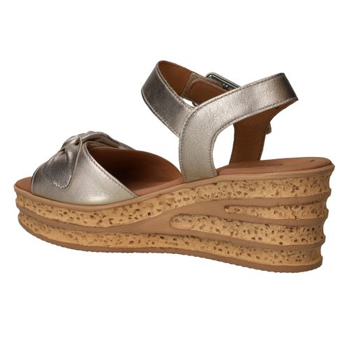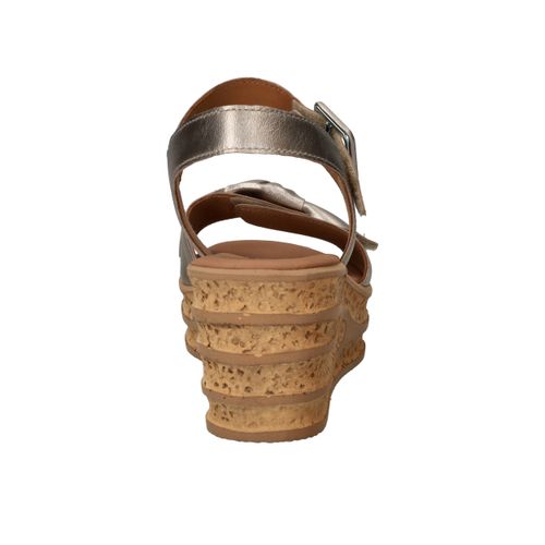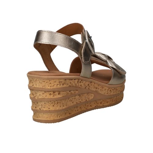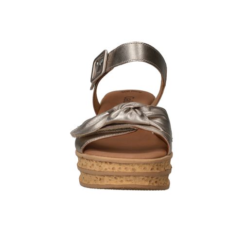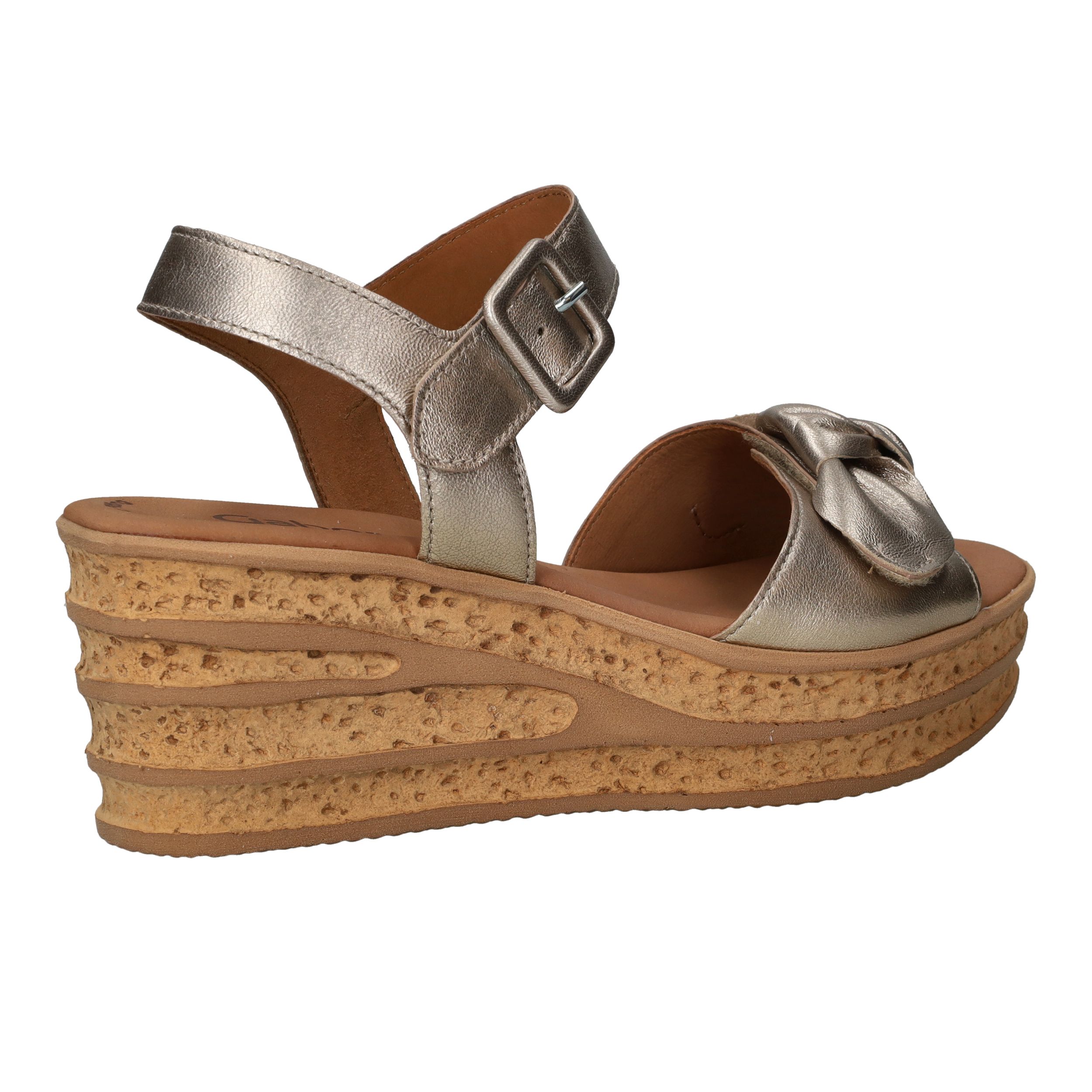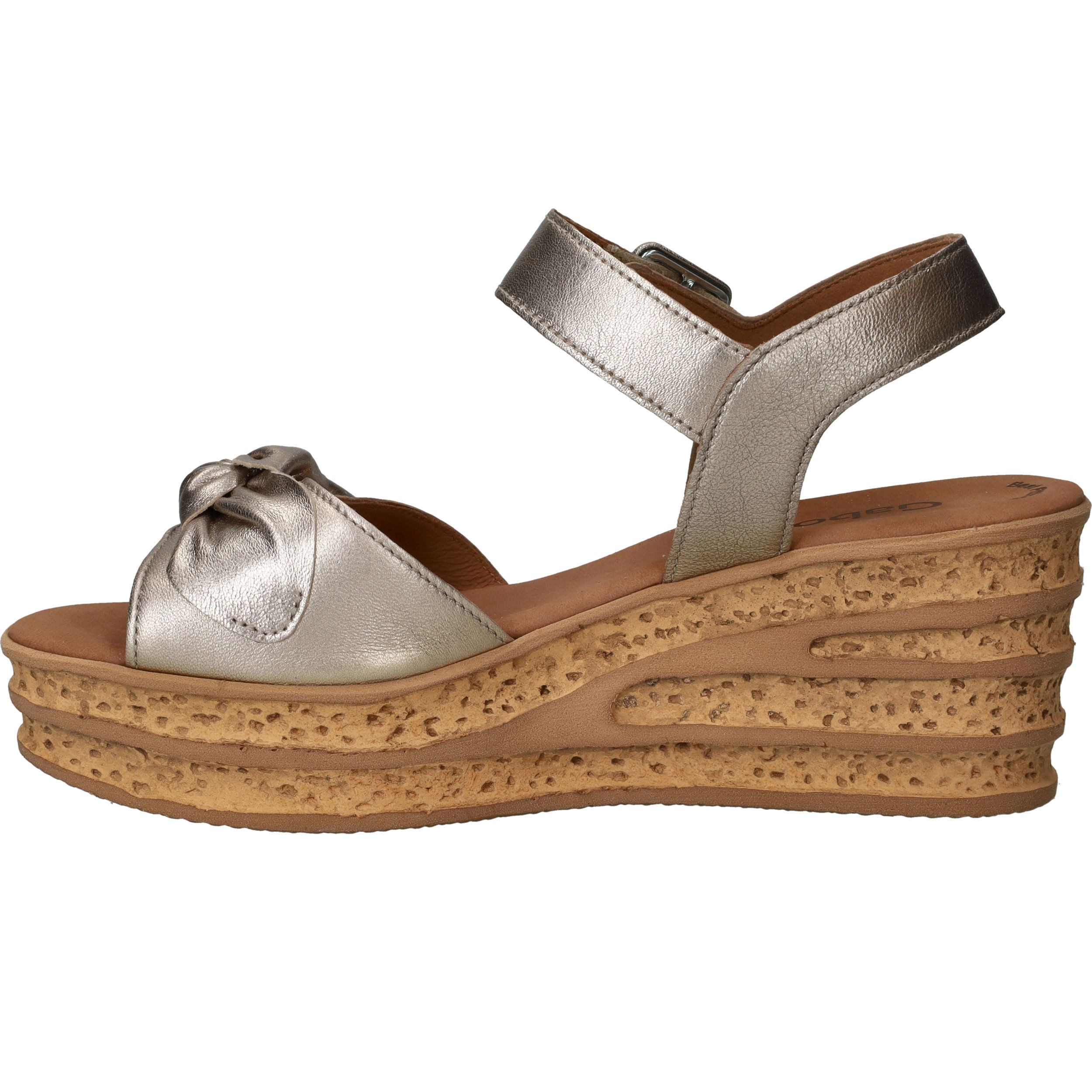 Deze elegante sleehak sandaal van Gabor is een perfecte combinatie van stijl en comfort. Het model is uitgevoerd in metallic goudkleurig leer en afgewerkt met een speelse strik op de voorvoet. De kurklook sleehak met verfijnde uitsparingen geeft de sandaal een zomerse en luchtige uitstraling. Ideaal voor een feestelijke gelegenheid of een zomerse dag!