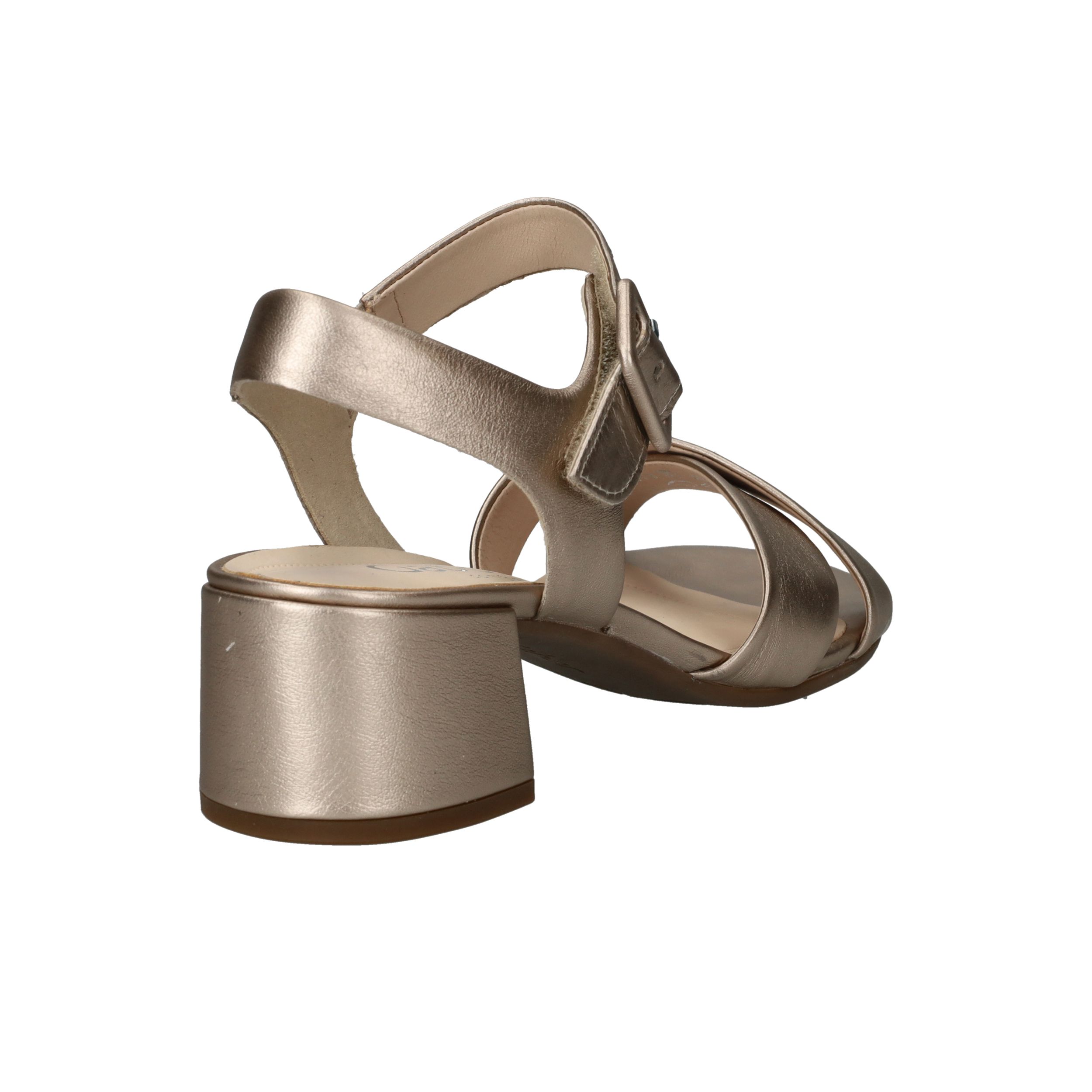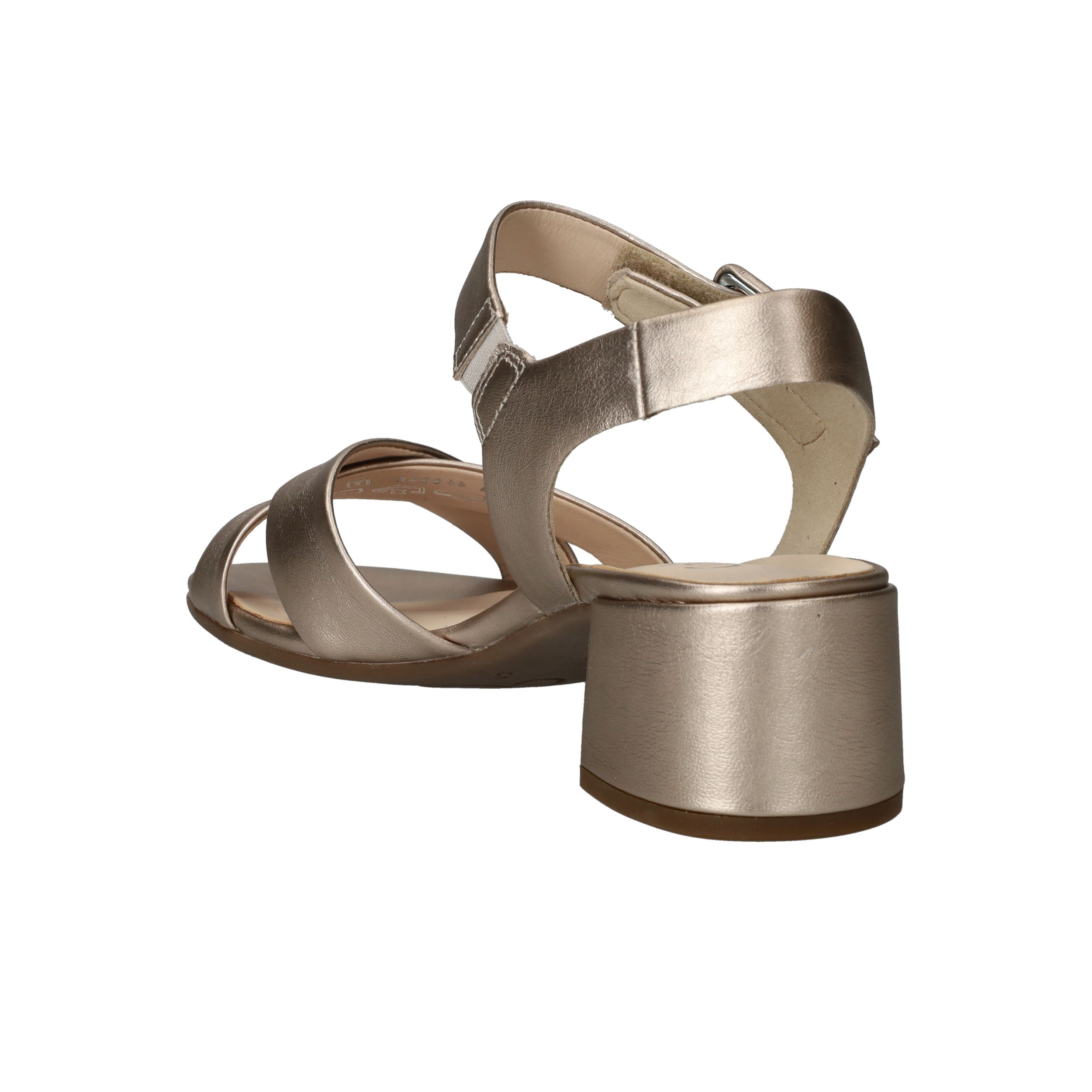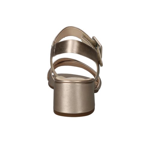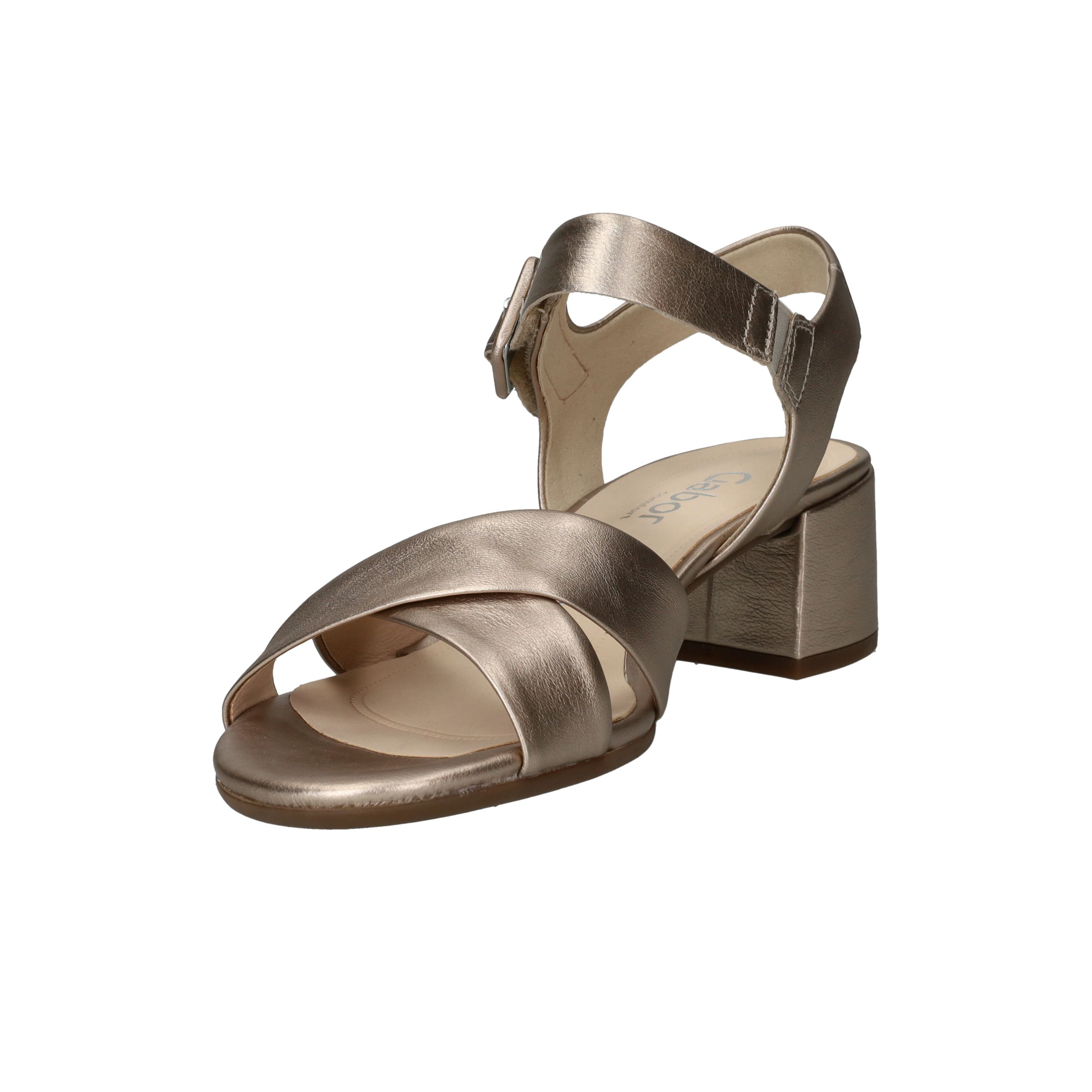 Deze elegante sandaal van het merk Gabor is perfect voor speciale gelegenheden en zomerse feestjes. Het model is gemaakt van zacht leer in een stijlvolle metallic beige kleur en heeft een vrouwelijke uitstraling door de gekruiste banden. De middelhoge hak biedt net dat beetje extra, zonder in te leveren op comfort. Een verfijnde sandaal die jouw outfit compleet maakt!