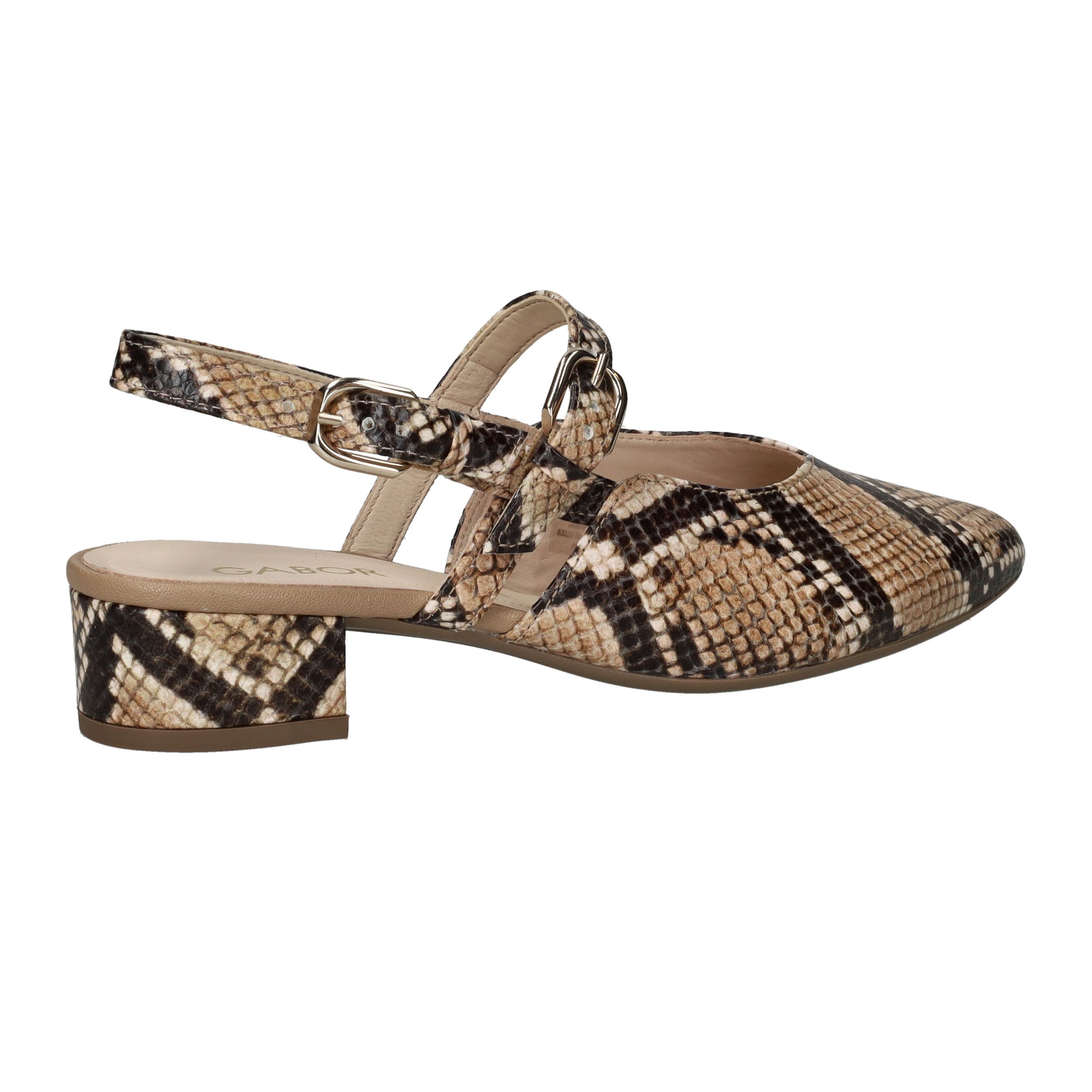 Deze stijlvolle Gabor sandalette is uitgevoerd met een moderne dierenprint en voorzien van een handige gespsluiting. Dankzij het comfortabele voetbed en het lage hakje is deze sandalette perfect voor zowel dagelijkse looks als feestelijke gelegenheden.