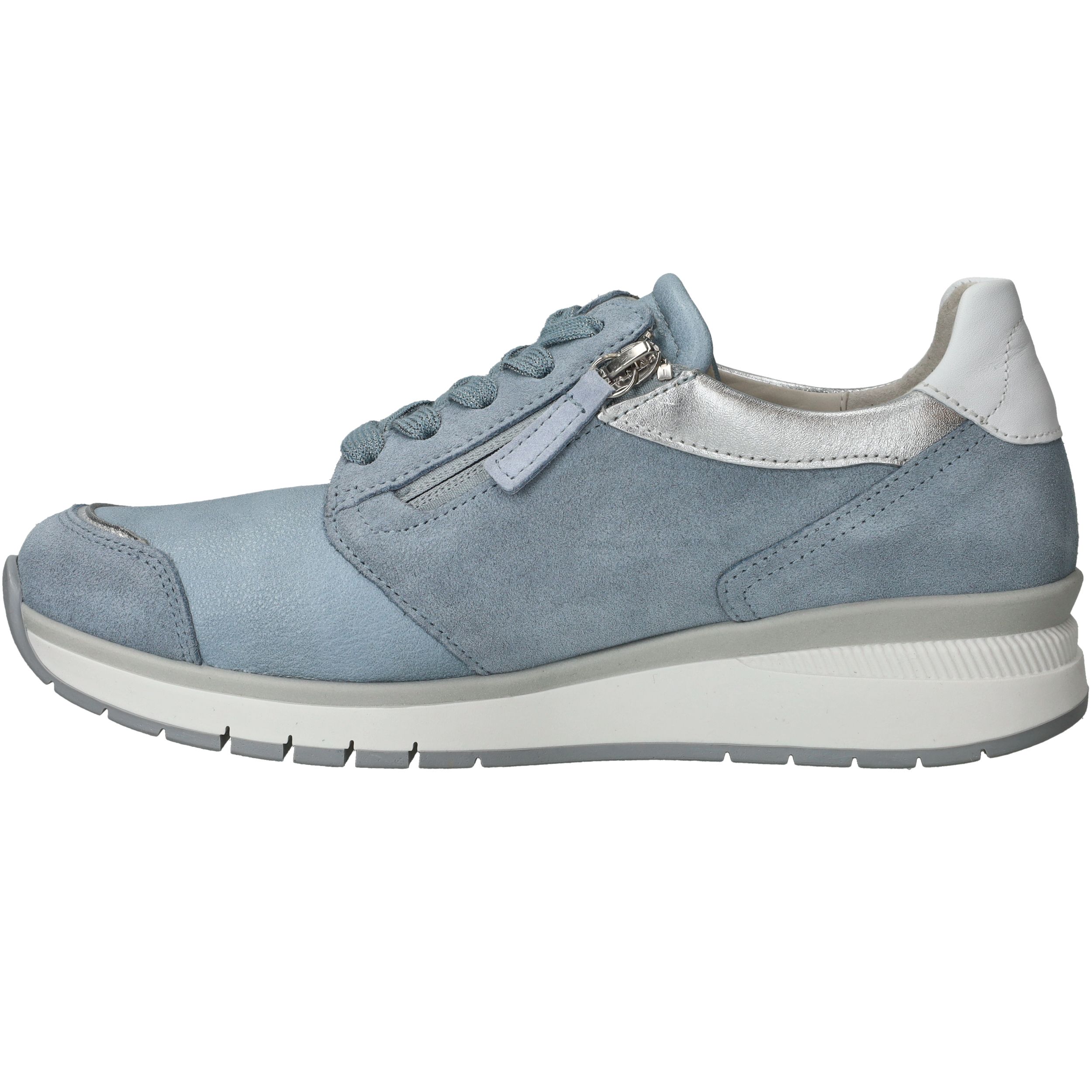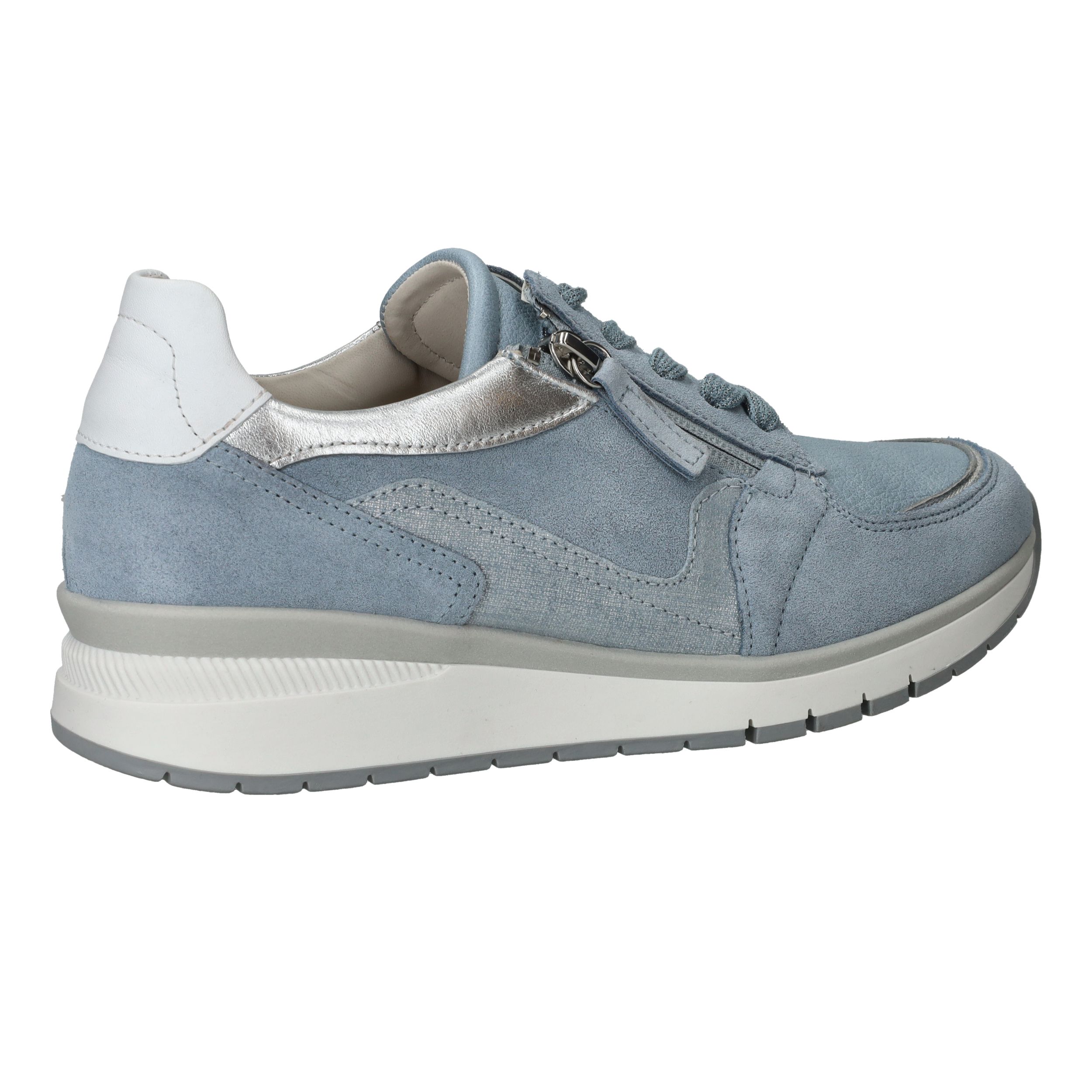 Ervaar ultiem comfort en tijdloze stijl met de Gabor, een modieuze sneaker die perfect past binnen de categorie damesschoenen. Dit model is gemaakt van hoogwaardig suède, wat zorgt voor een ademend en luxueus gevoel. De combinatie van blauw met zilverkleurige accenten en een witte hiel geeft deze schoen een elegante en sportieve uitstraling.