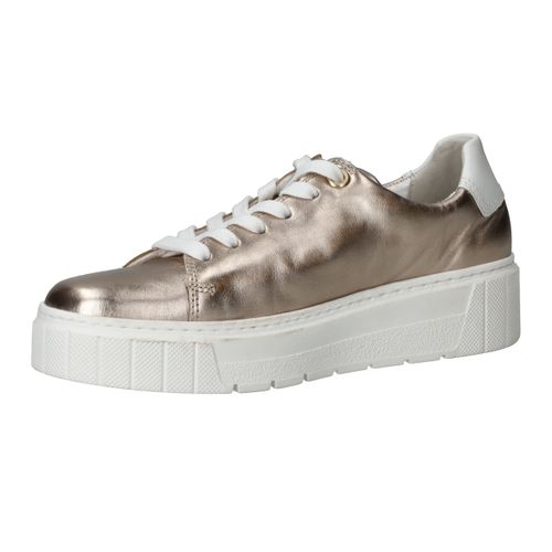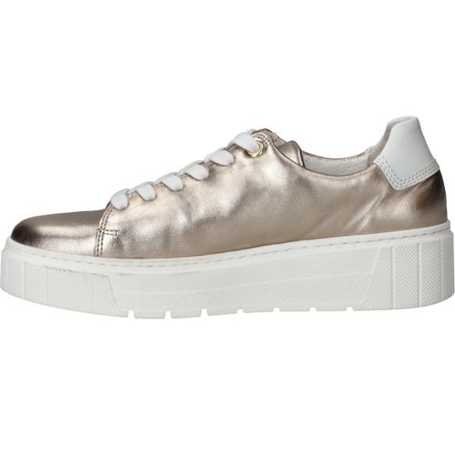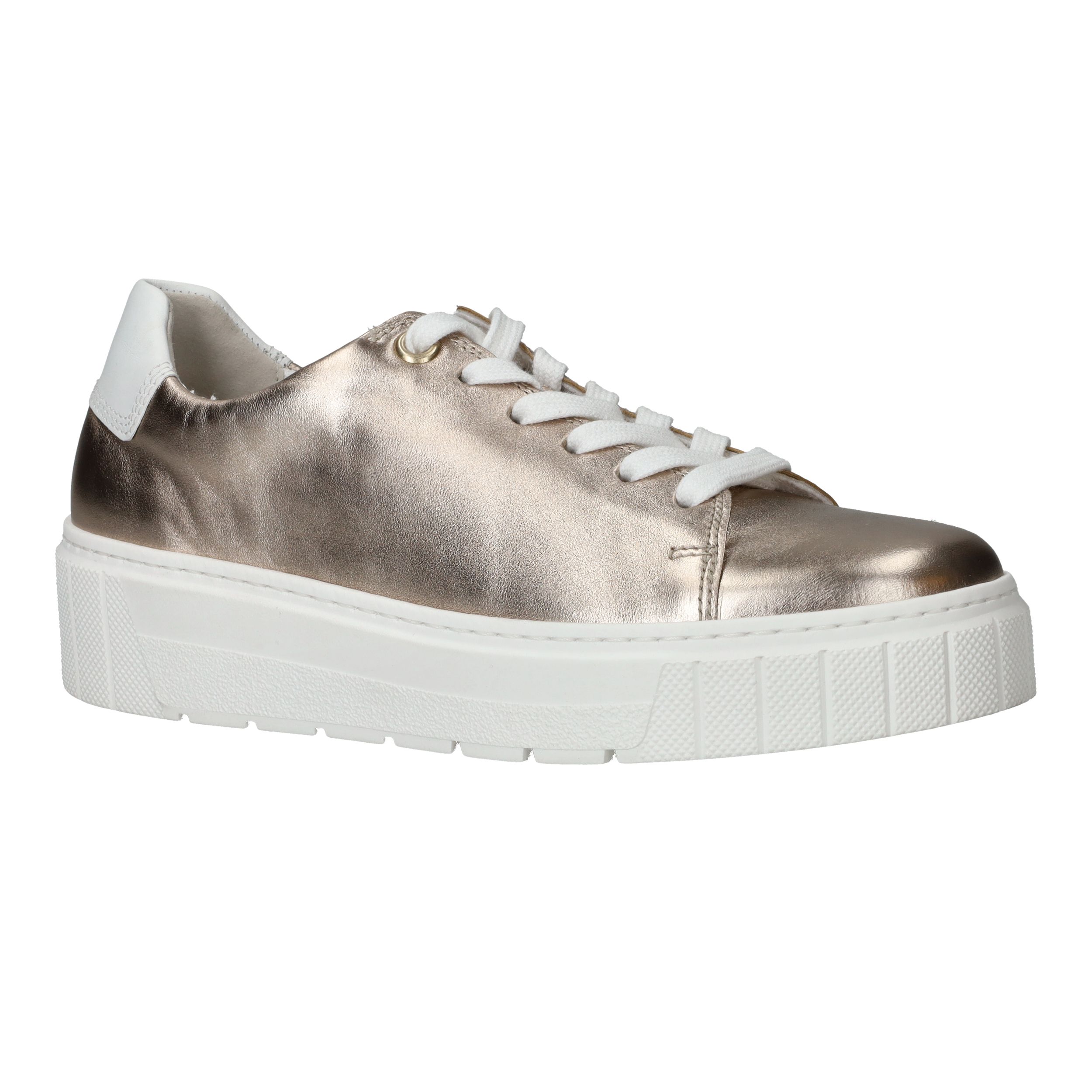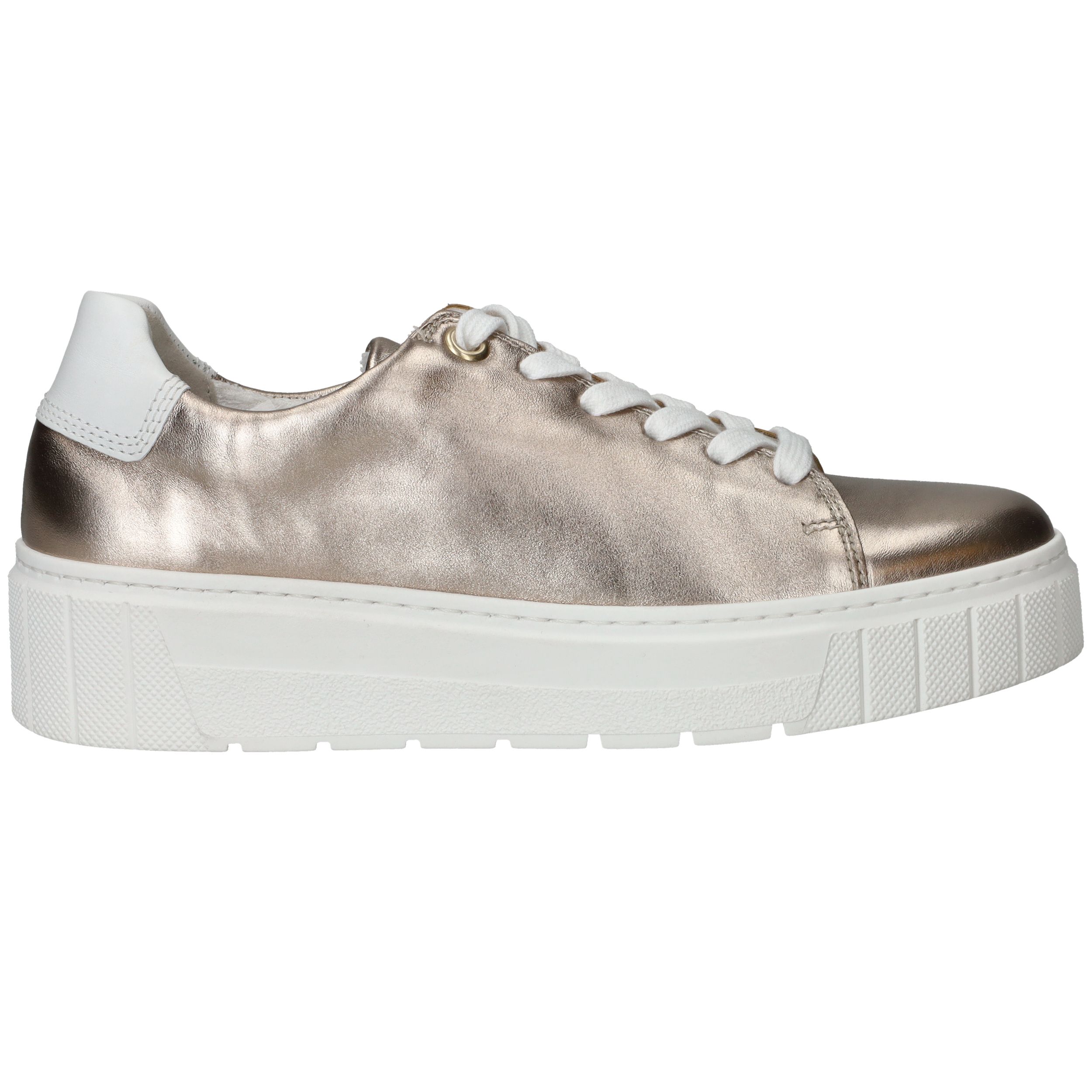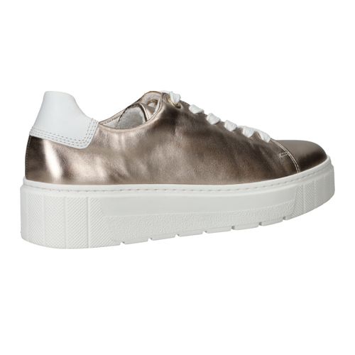 Laat je voeten stralen met deze metallic gouden schoenen van Gabor! Deze schoen heeft een toffe platform zool.