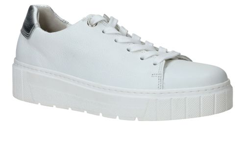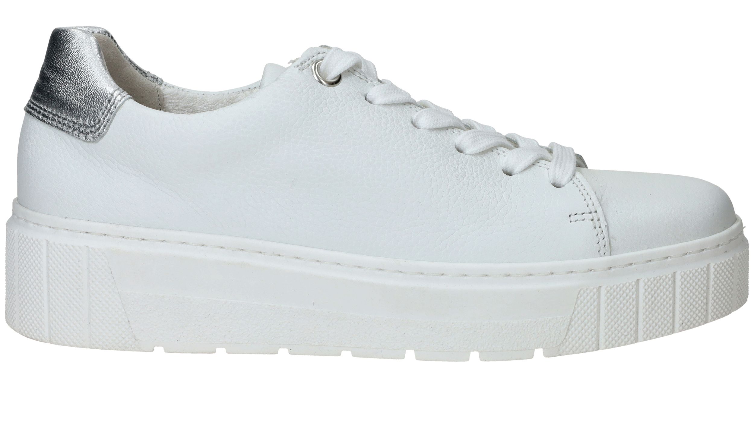 Deze wit leren Gabor sneaker is echt iets voor jou! De platformzool geeft de damessneaker een trendy uitstraling en de schoen is alle seizoenen te dragen.