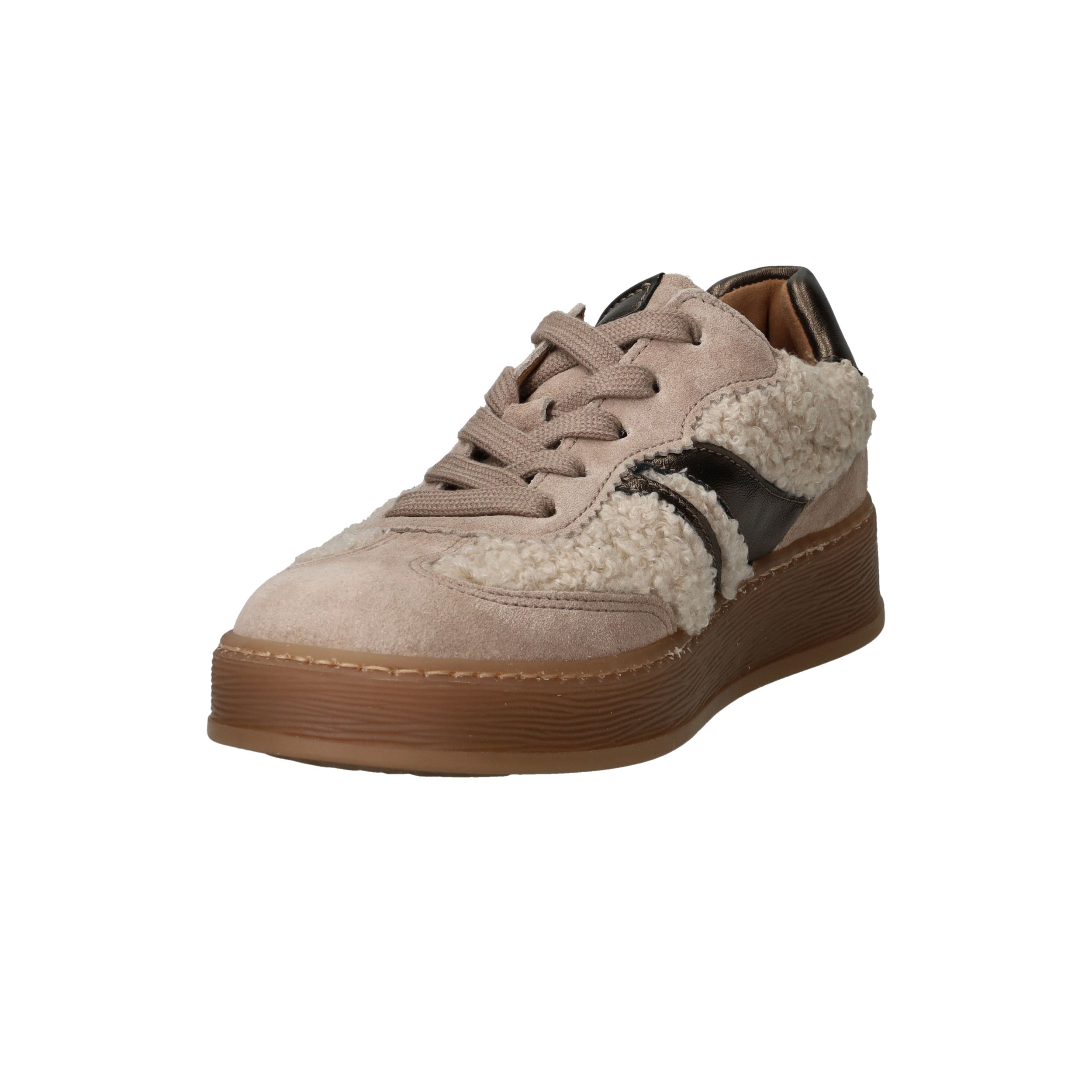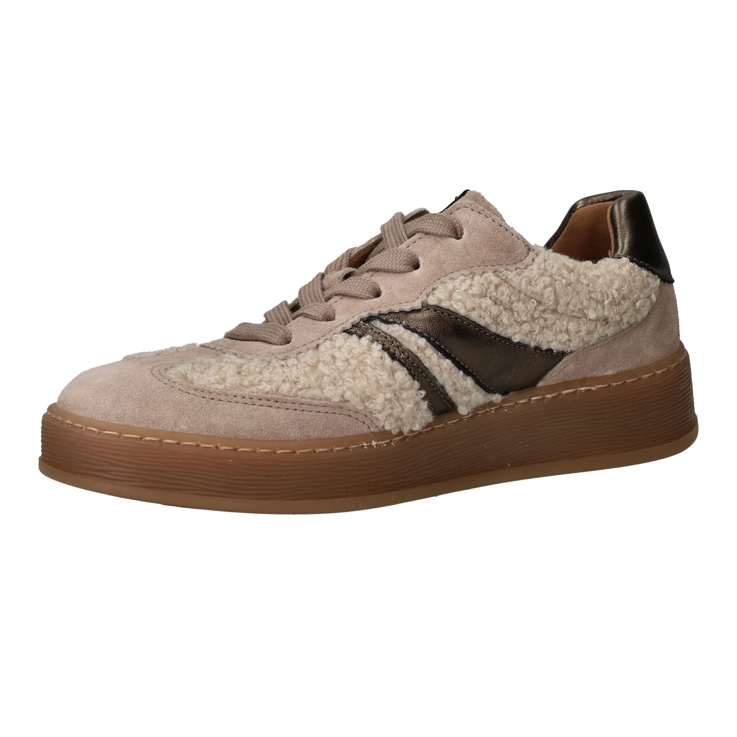 Deze speelse en comfortabele veterschoenen van Gabor combineren warm suède met een zachte teddylook van synthetisch materiaal. De voering van leer en textiel zorgt voor optimaal draagcomfort en een prettige pasvorm, ideaal voor dagelijks gebruik. Perfect voor dames die houden van warme voeten en een trendy uitstraling.