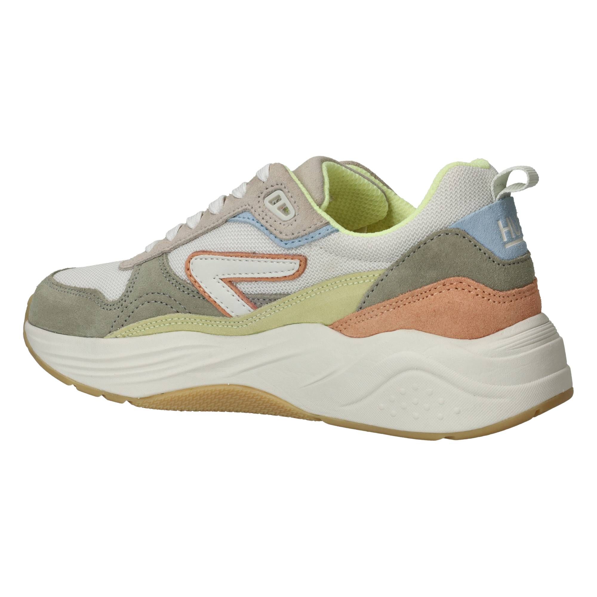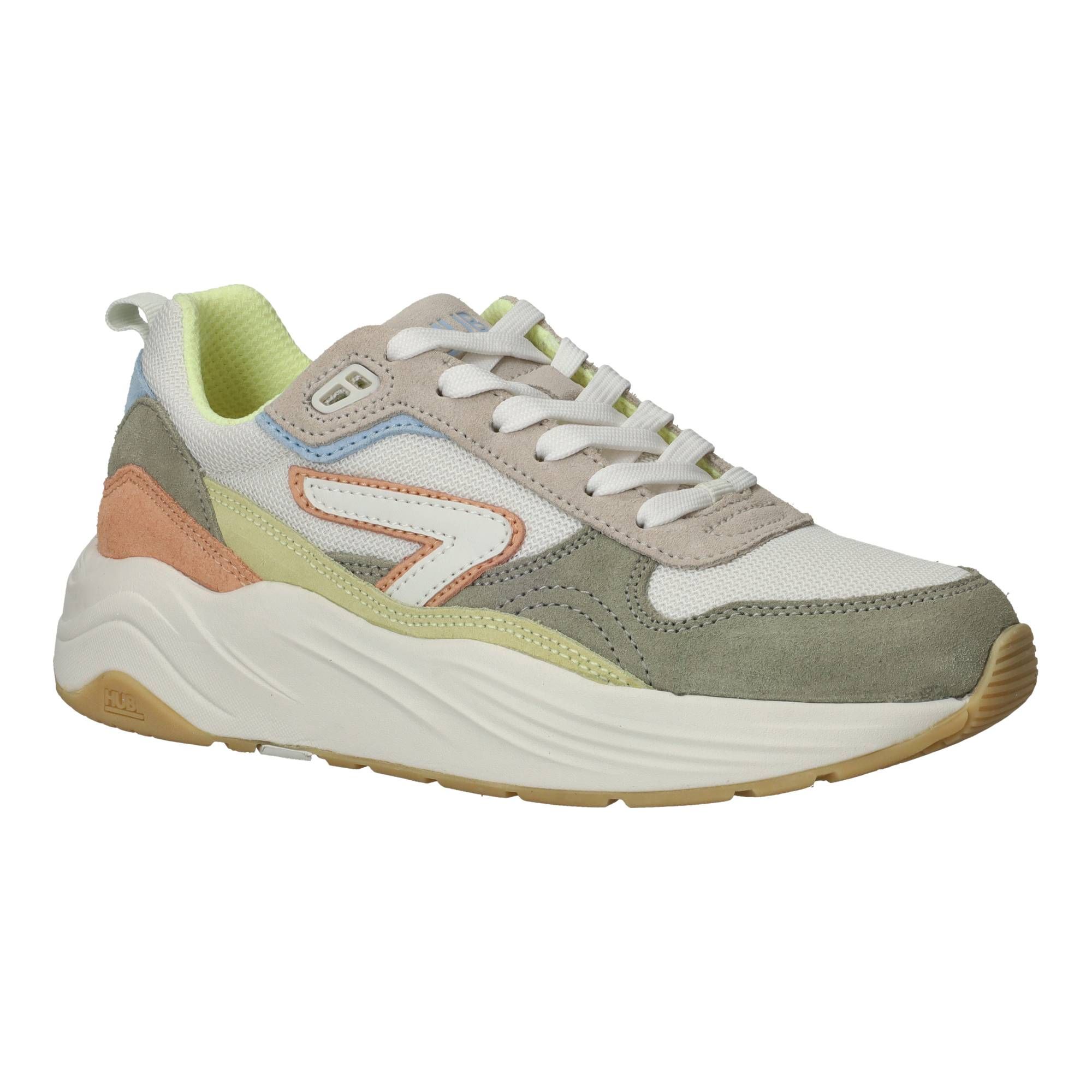 Deze kleurrijke dames sneakers van HUB, de Glide S43, zijn een vrolijke toevoeging aan je schoenencollectie. De verschillende tinten suède en textiel in deze multi-gekleurde schoen maken het een speelse, maar tegelijkertijd stijlvolle keuze die gemakkelijk te combineren is. Wanneer je deze sneakers aantrekt, merk je direct hoe de zool je voet omarmt en zorgt voor een prettige drukverdeling, waardoor elke stap comfortabel aanvoelt. De schoen is ontworpen om je de hele dag door een licht en veerkrachtig gevoel te geven, wat bijdraagt aan een plezierige loopervaring, of je nu de stad verkent of een drukke werkdag hebt.