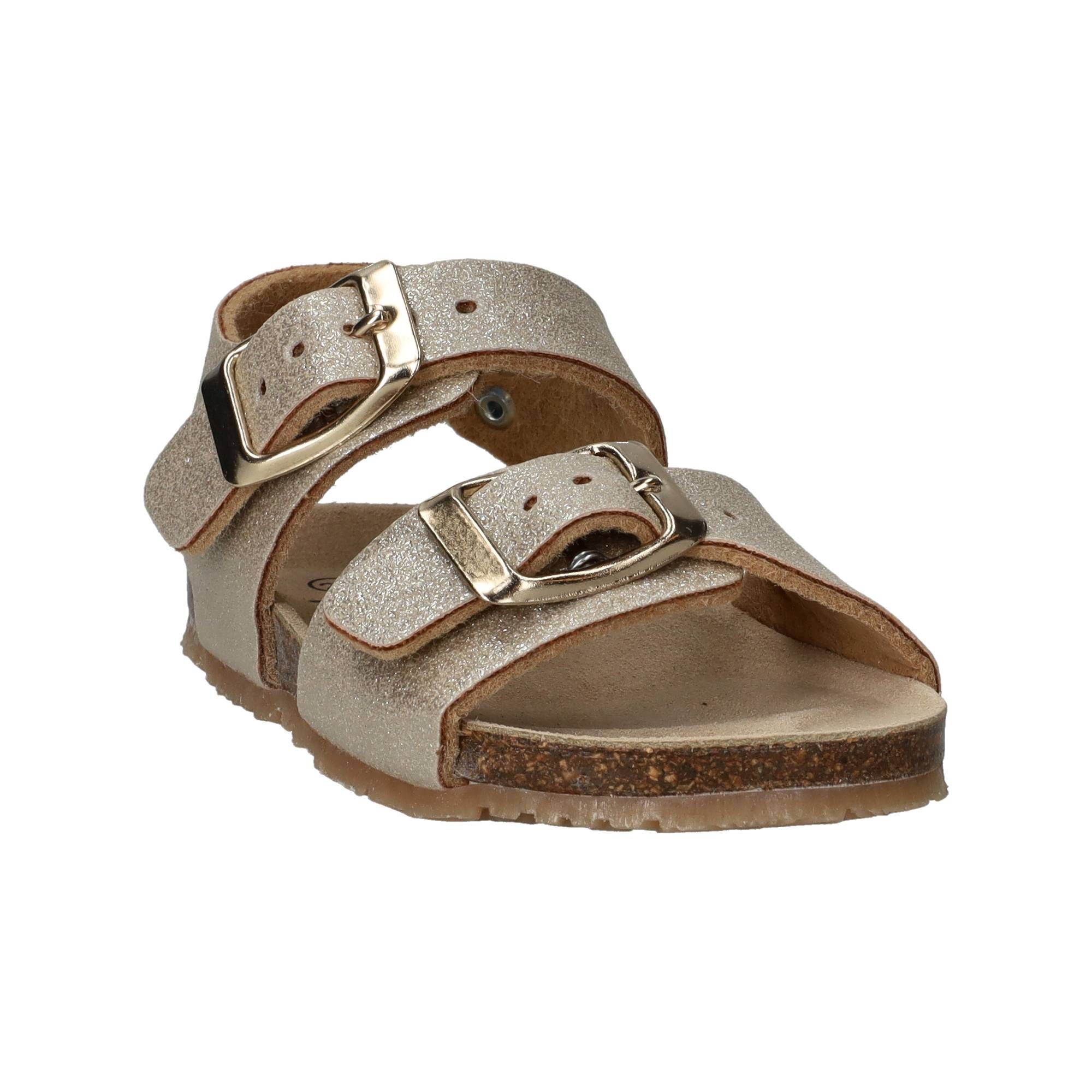 De meisjes sandalen van IK-KE in een prachtige goudtint zijn perfect voor zonnige dagen. Deze schoenen stralen vrolijkheid uit met hun glanzende uiterlijk en subtiele design. Ze zijn niet alleen een lust voor het oog, maar bieden ook een fijne ondersteuning voor kleine voetjes. Het zachte materiaal aan de binnenkant zorgt voor een prettige drukverdeling, waardoor ze de hele dag comfortabel blijven. De schoen voelt licht en luchtig aan, ideaal voor avonturen buiten of gewoon om te dragen tijdens het spelen.- Deze sandalen sluiten met een gesp, wat zorgt voor een stevige en verstelbare pasvorm rond de voet.