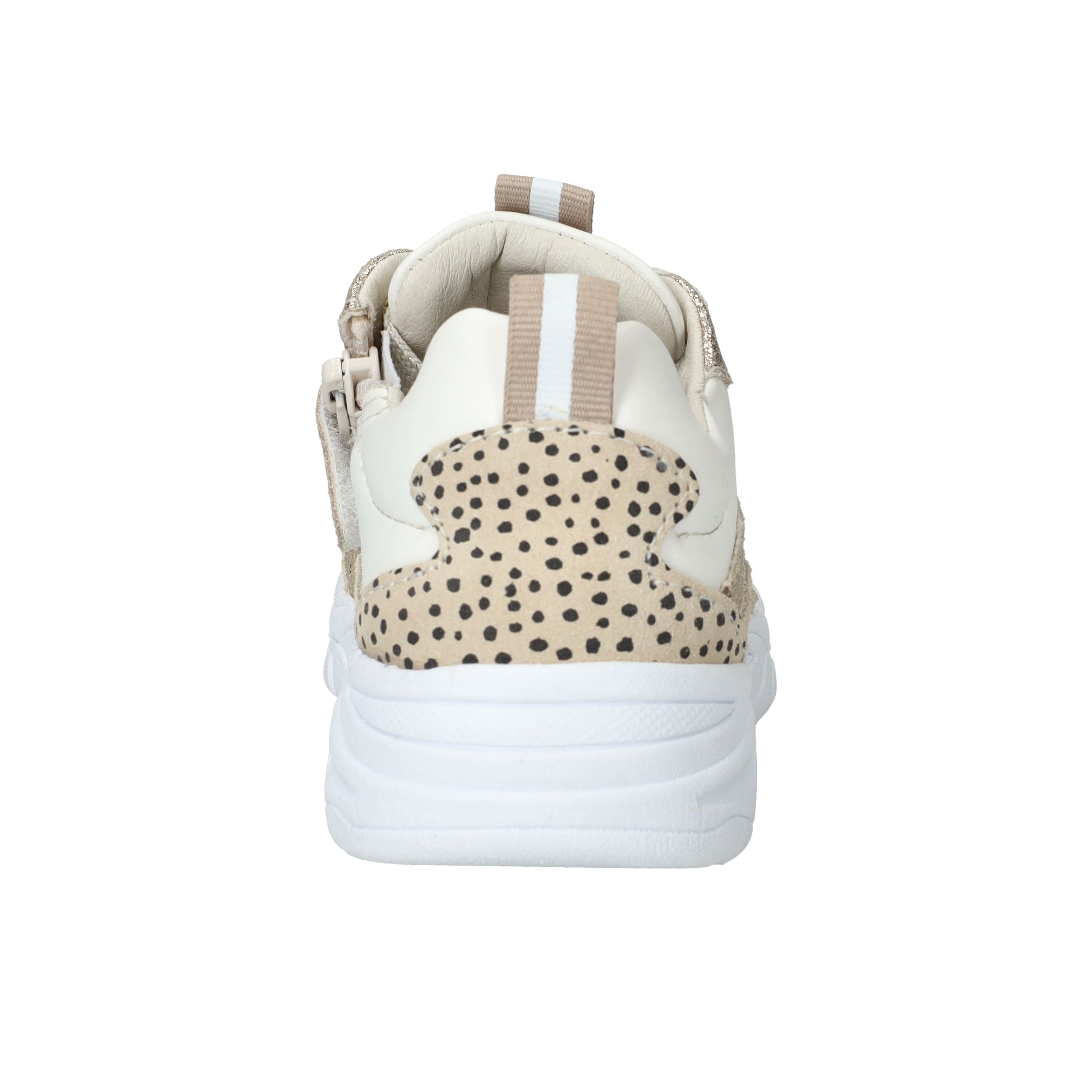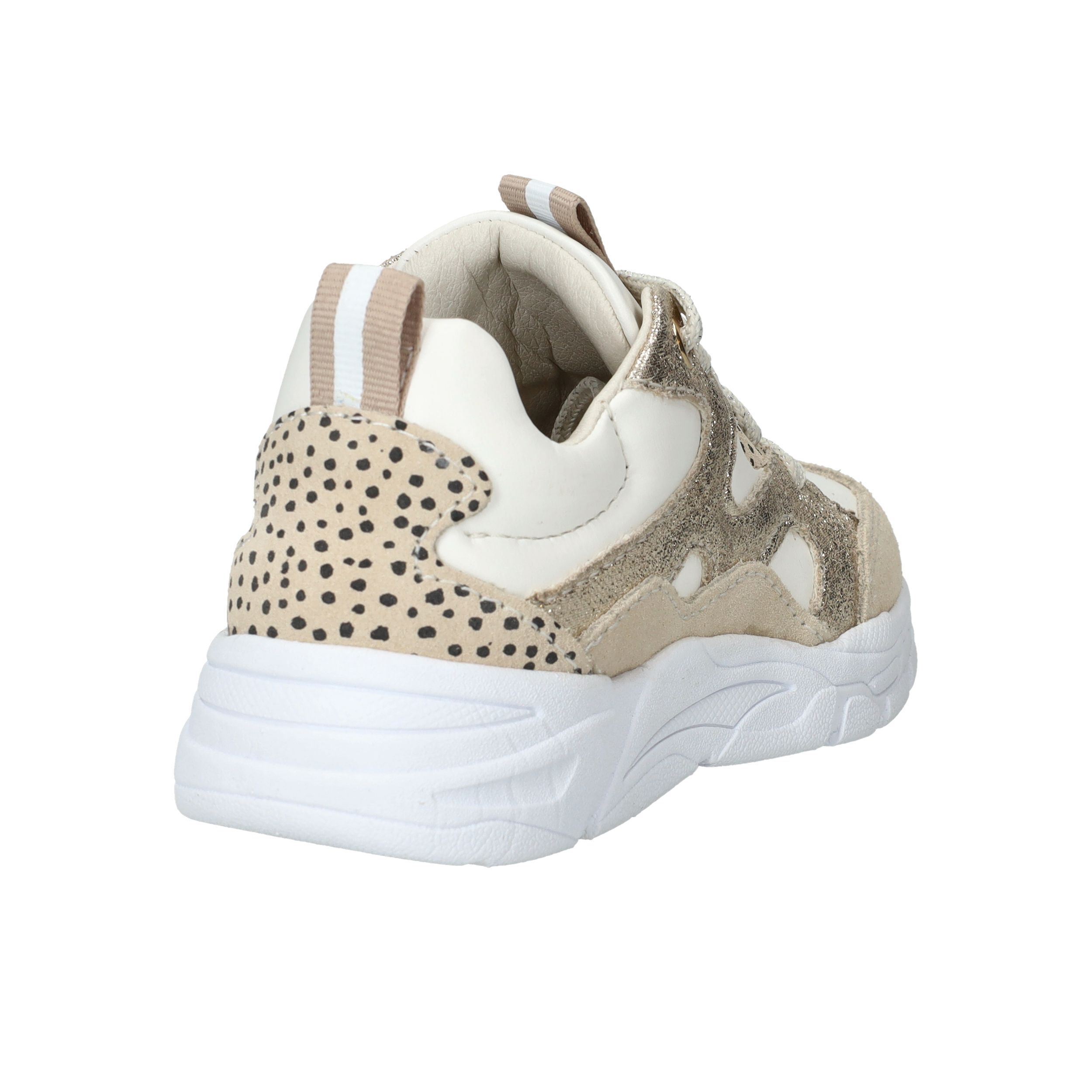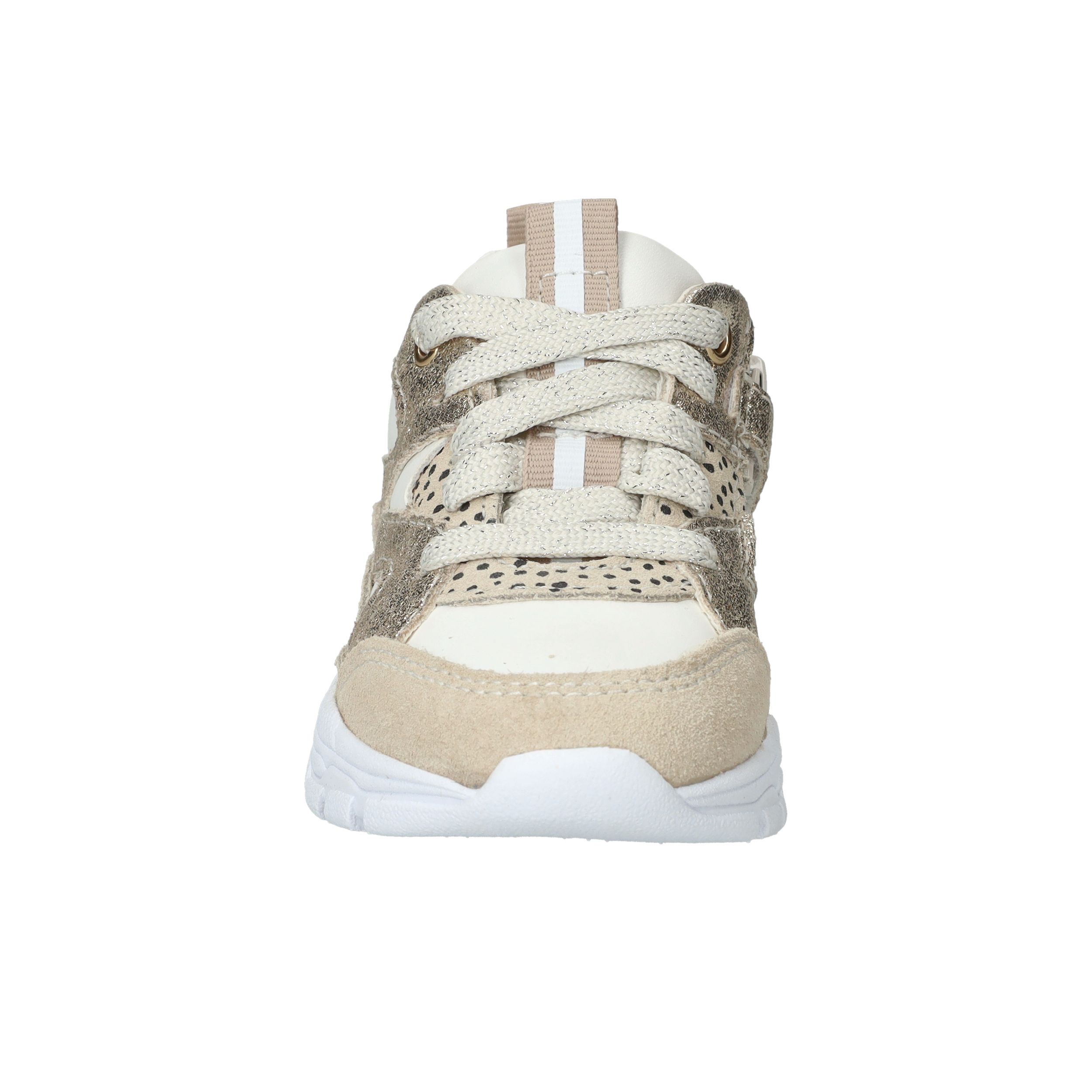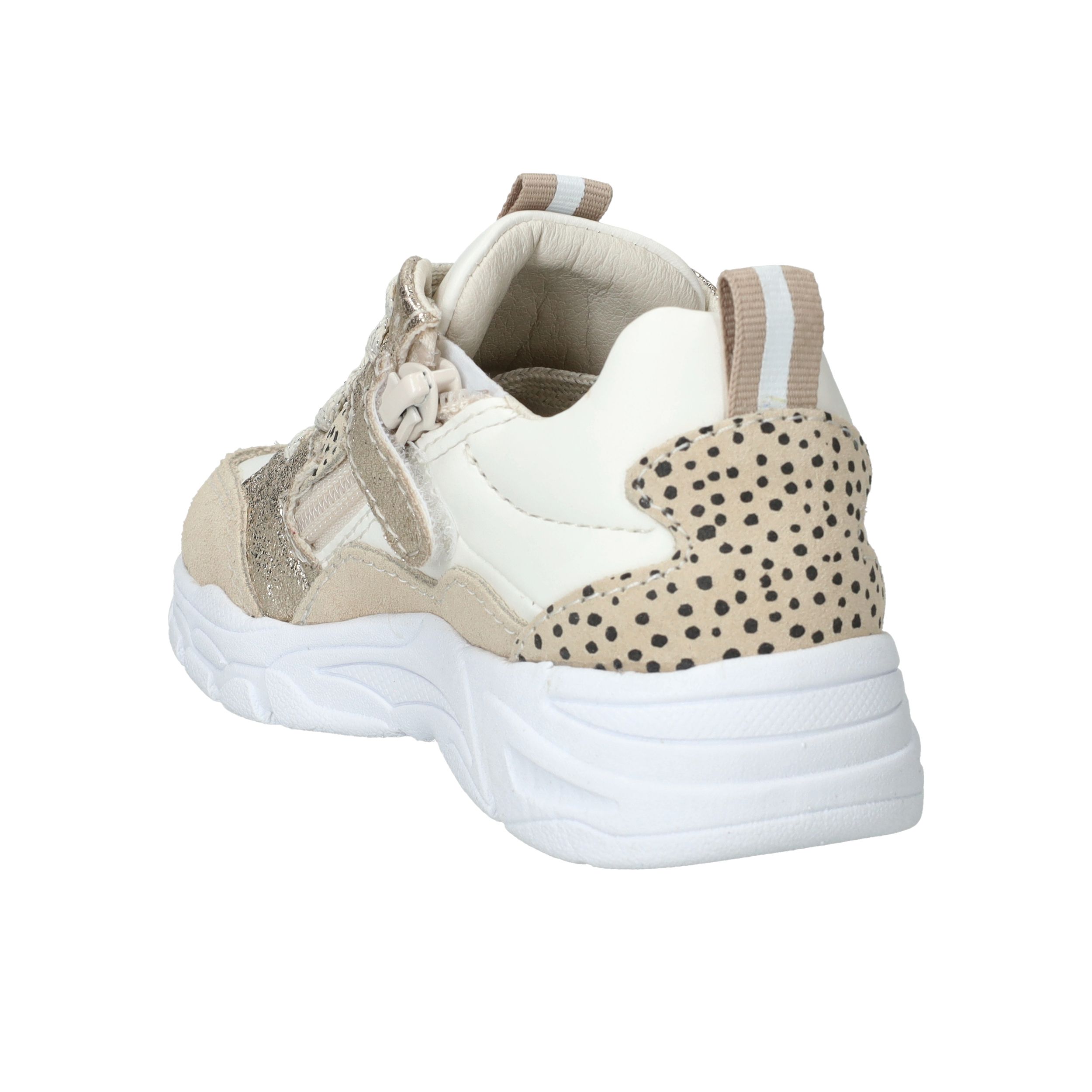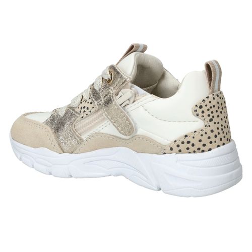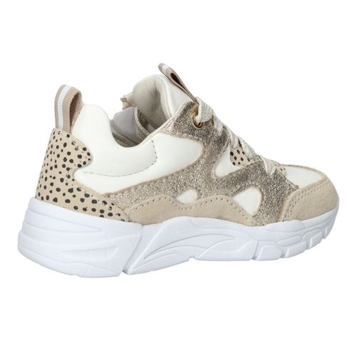 Leuke lichtgewicht beige IK-KE sneaker voor meiden met metallic goud en dierenprint detail. Extra handig is de veter- en ritssluiting voor een makkelijke instap.