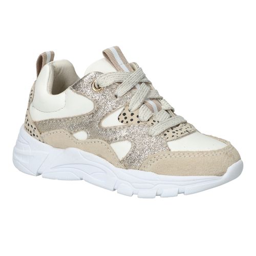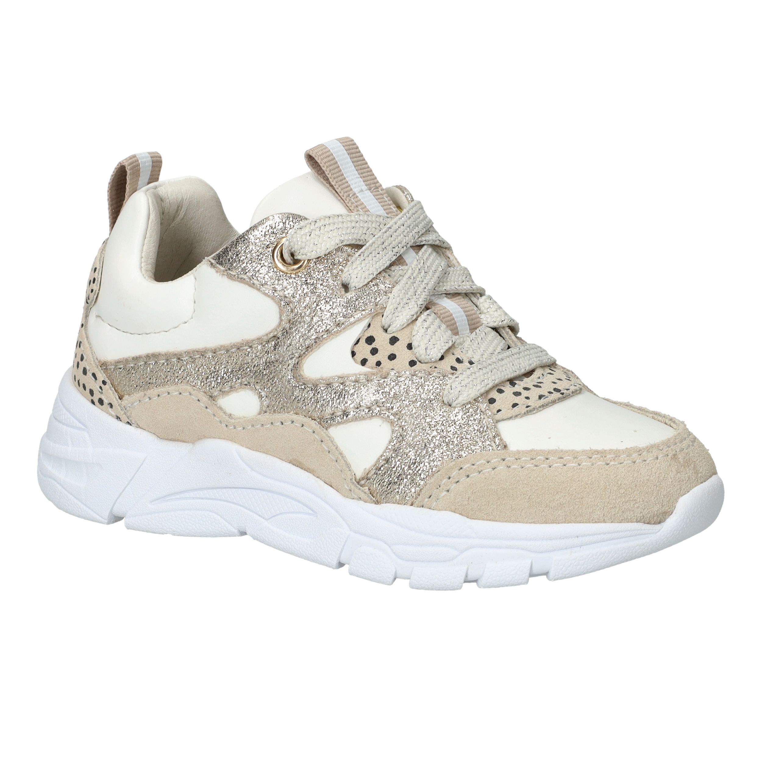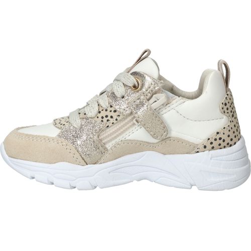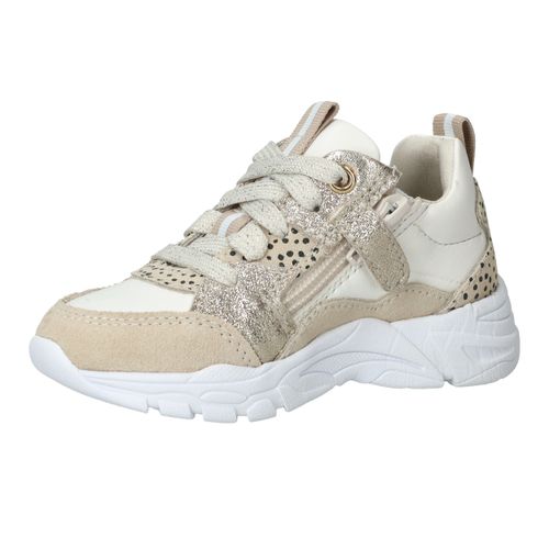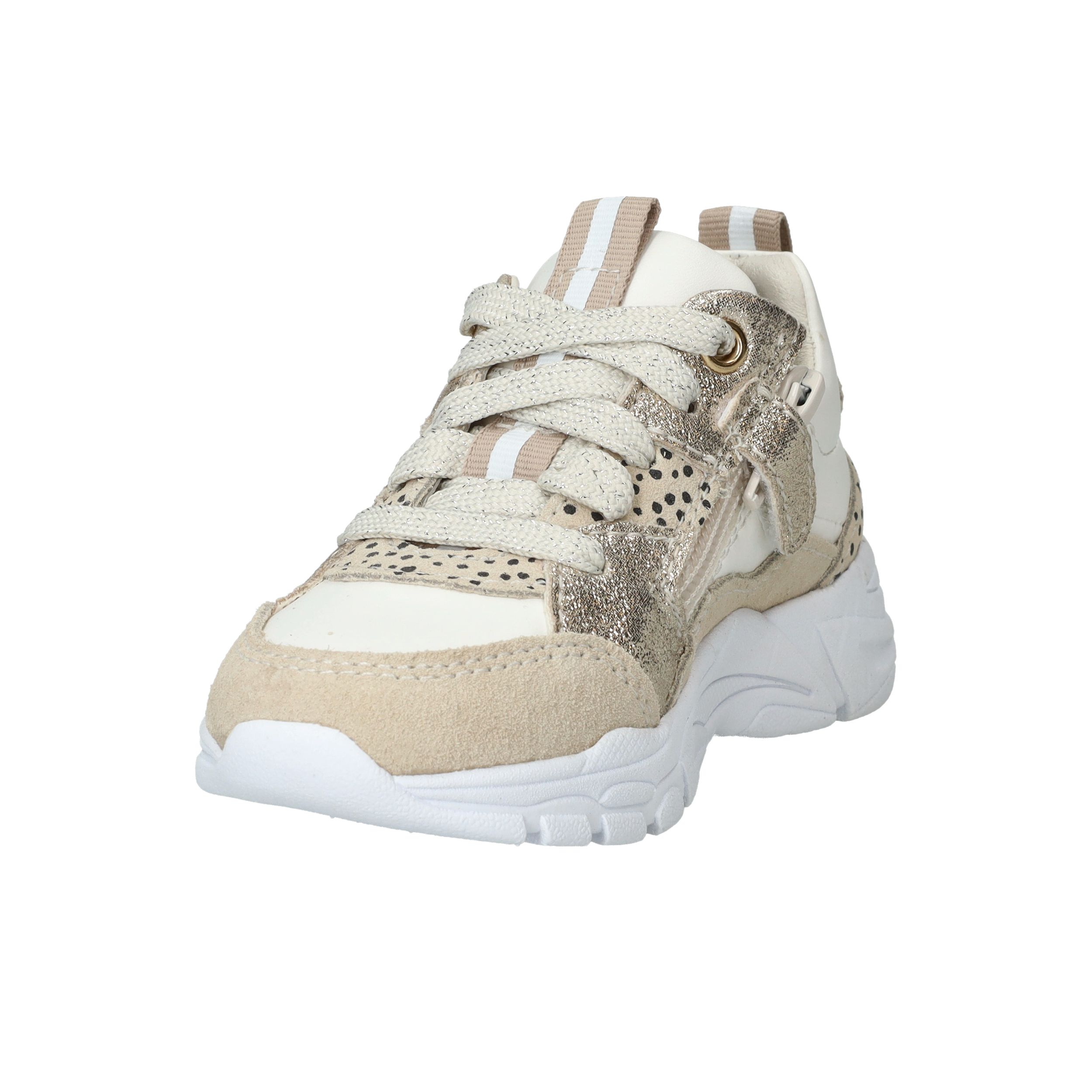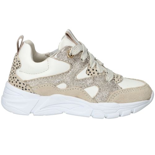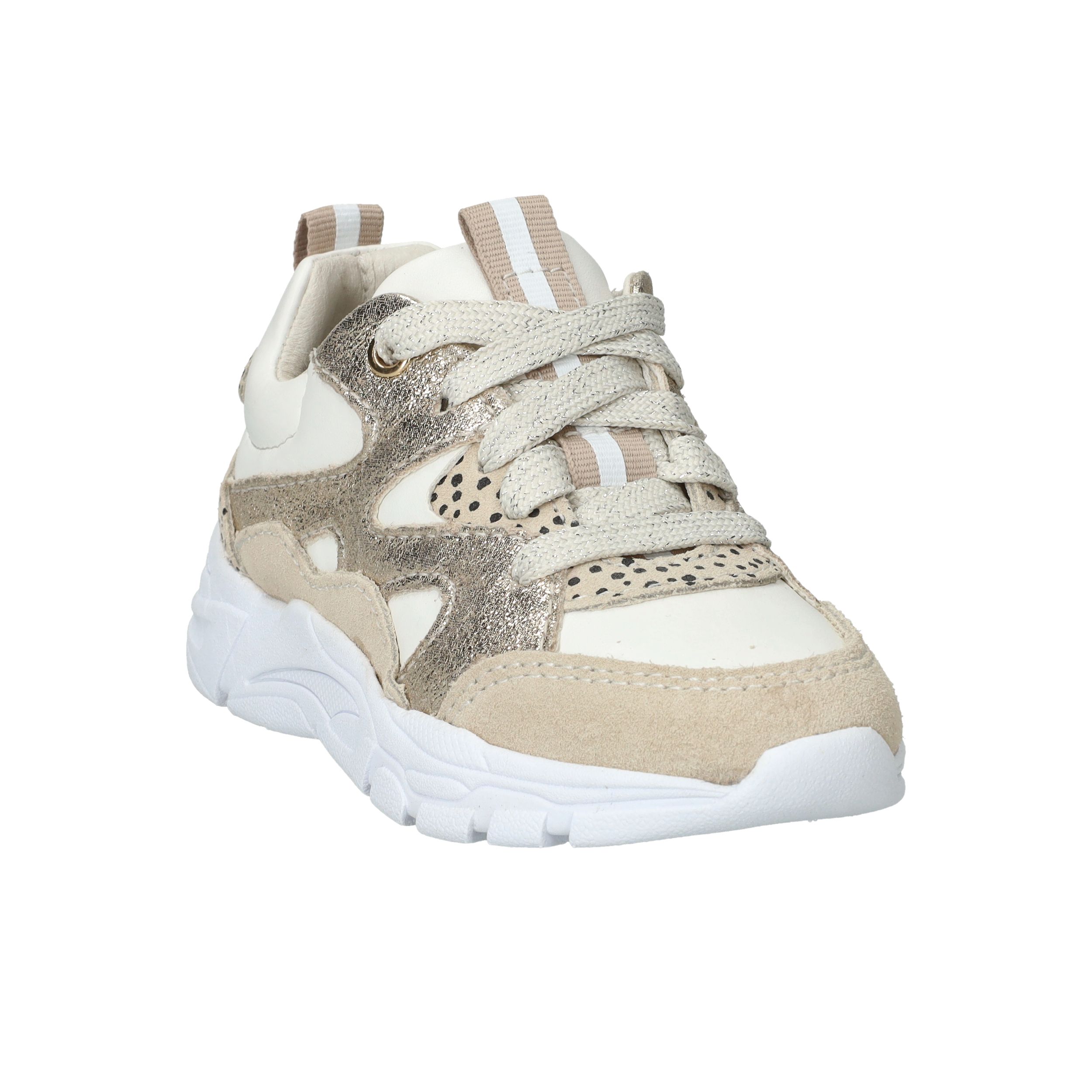 Leuke lichtgewicht beige IK-KE sneaker voor meiden met metallic goud en dierenprint detail. Extra handig is de veter- en ritssluiting voor een makkelijke instap.