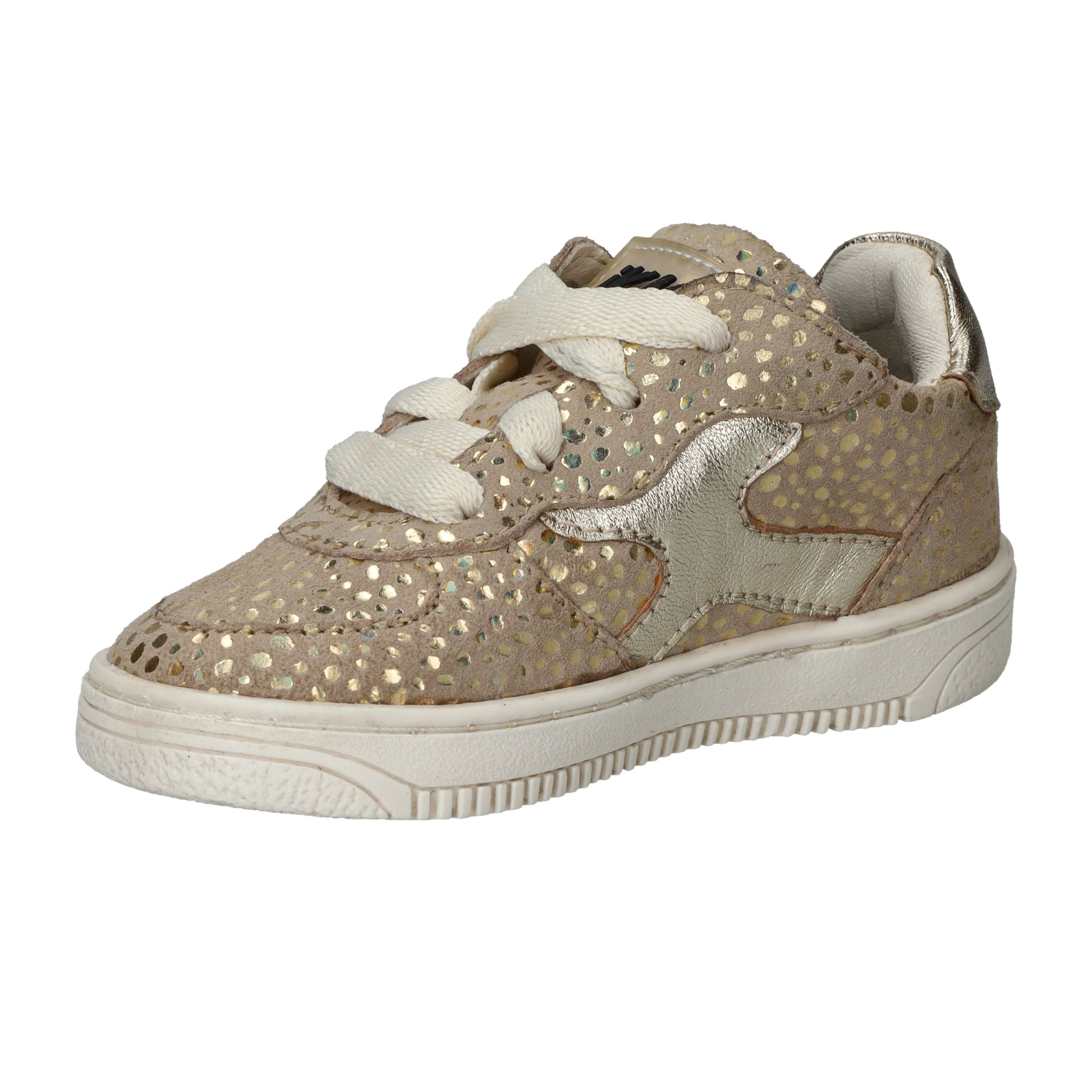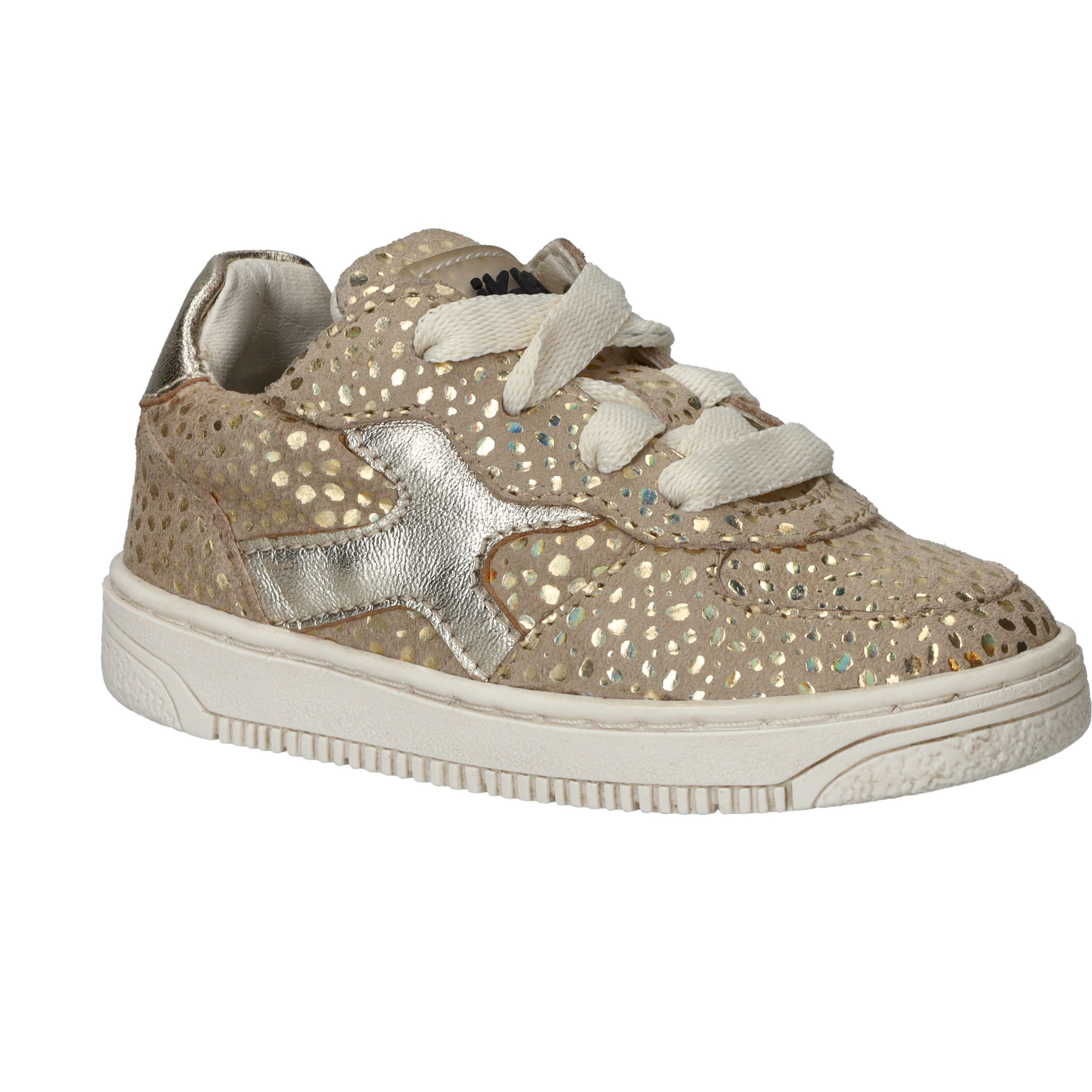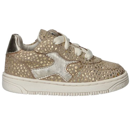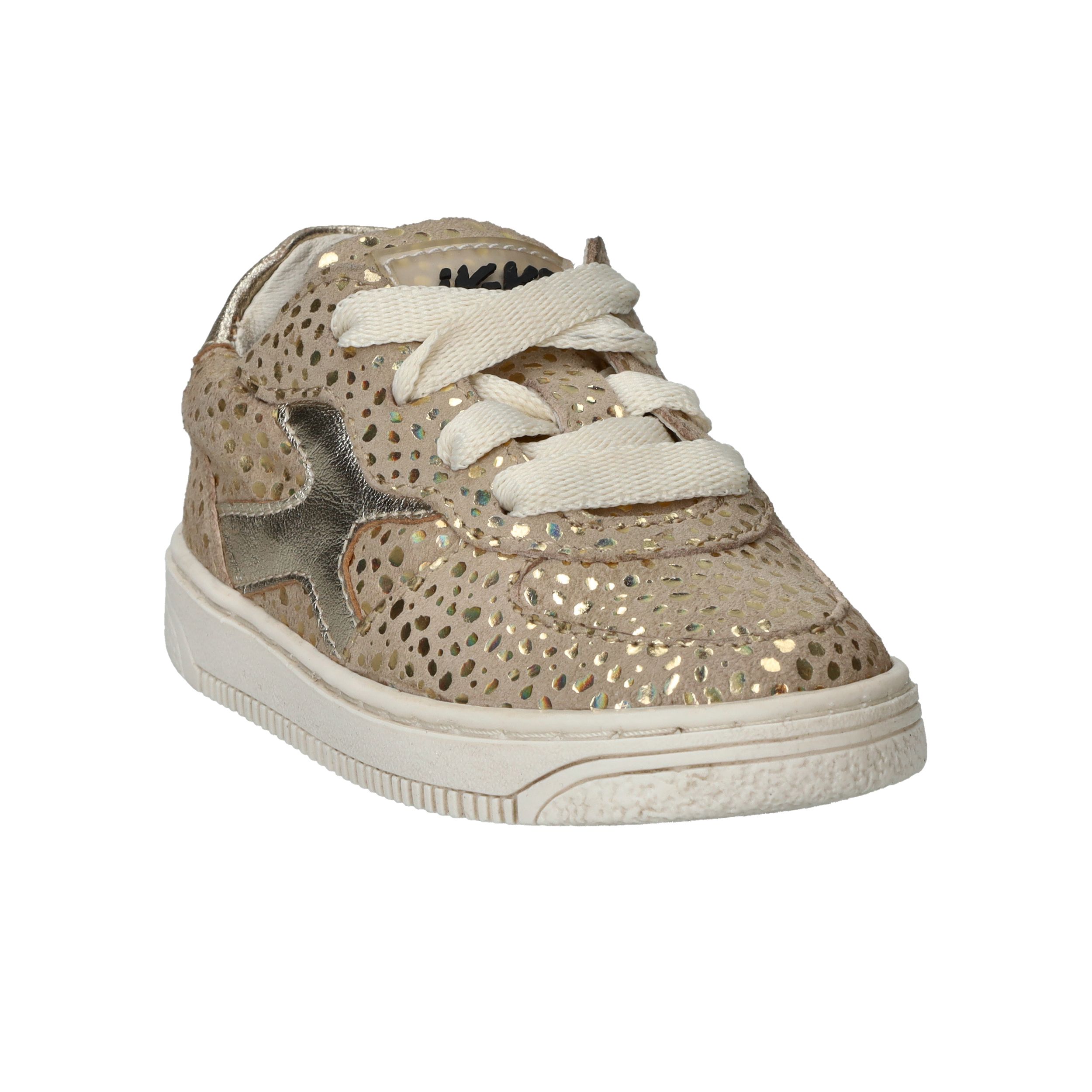 Hoe gaaf is dit IK-KE sneakertje met gouden metallic stipjes! Past goed bij alle outfits.