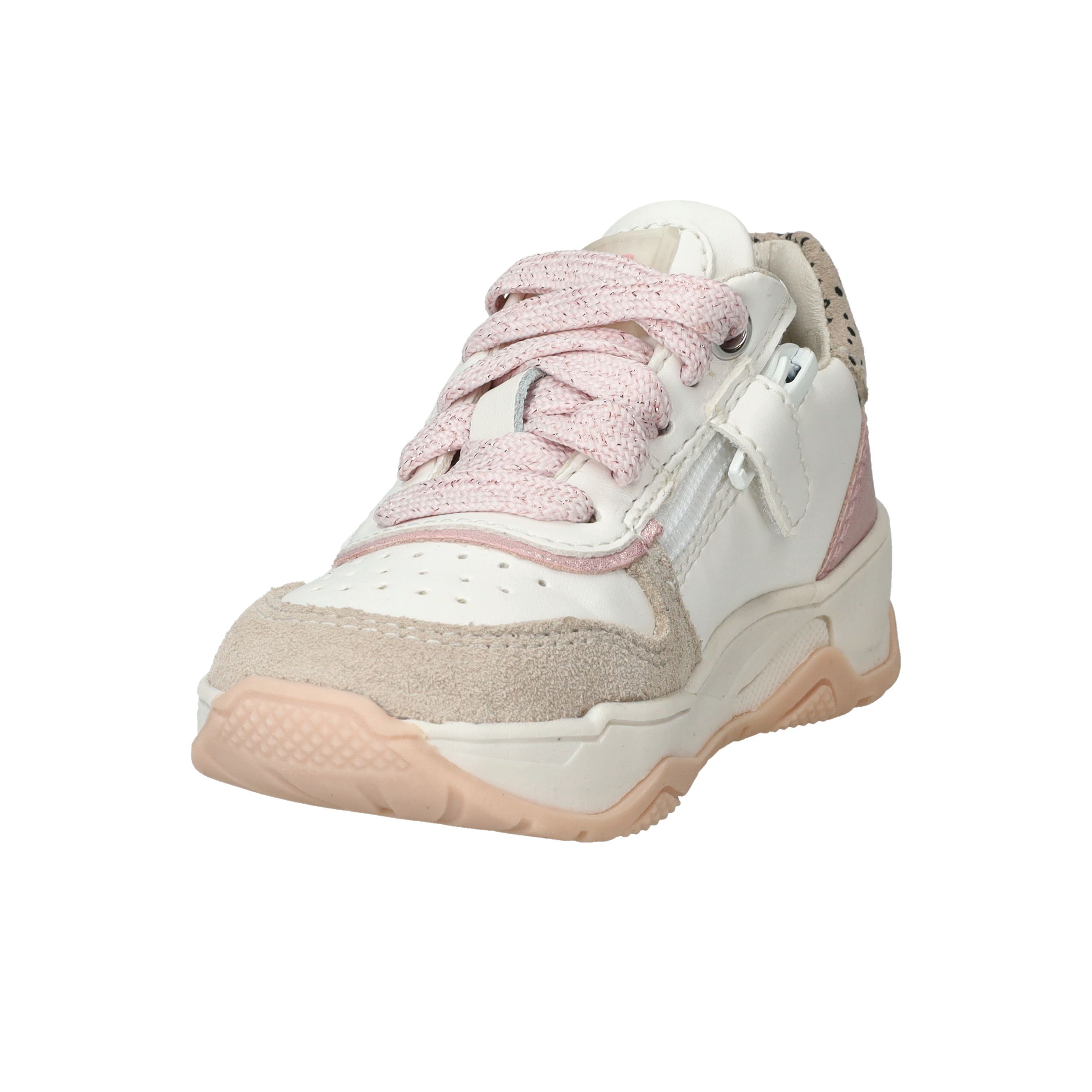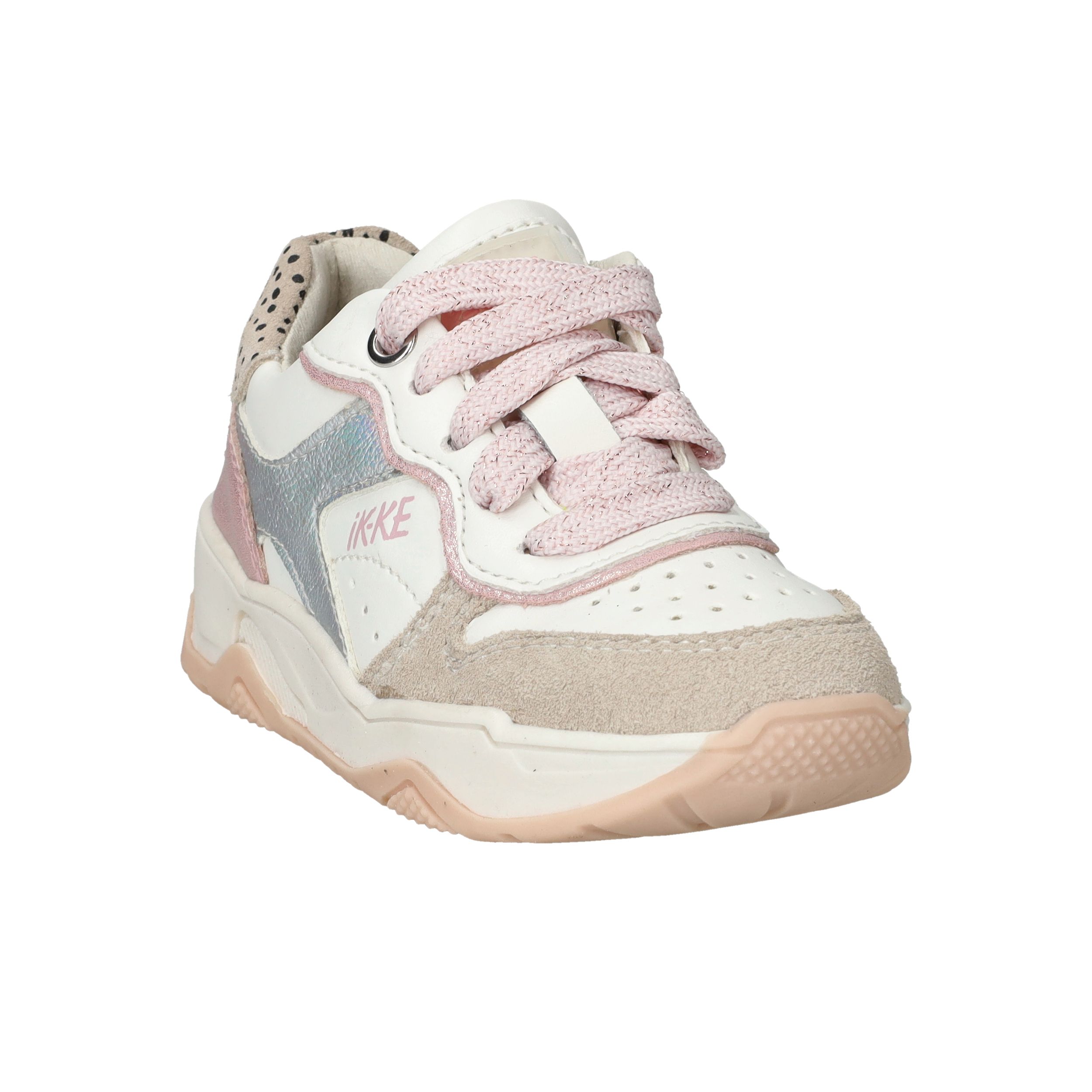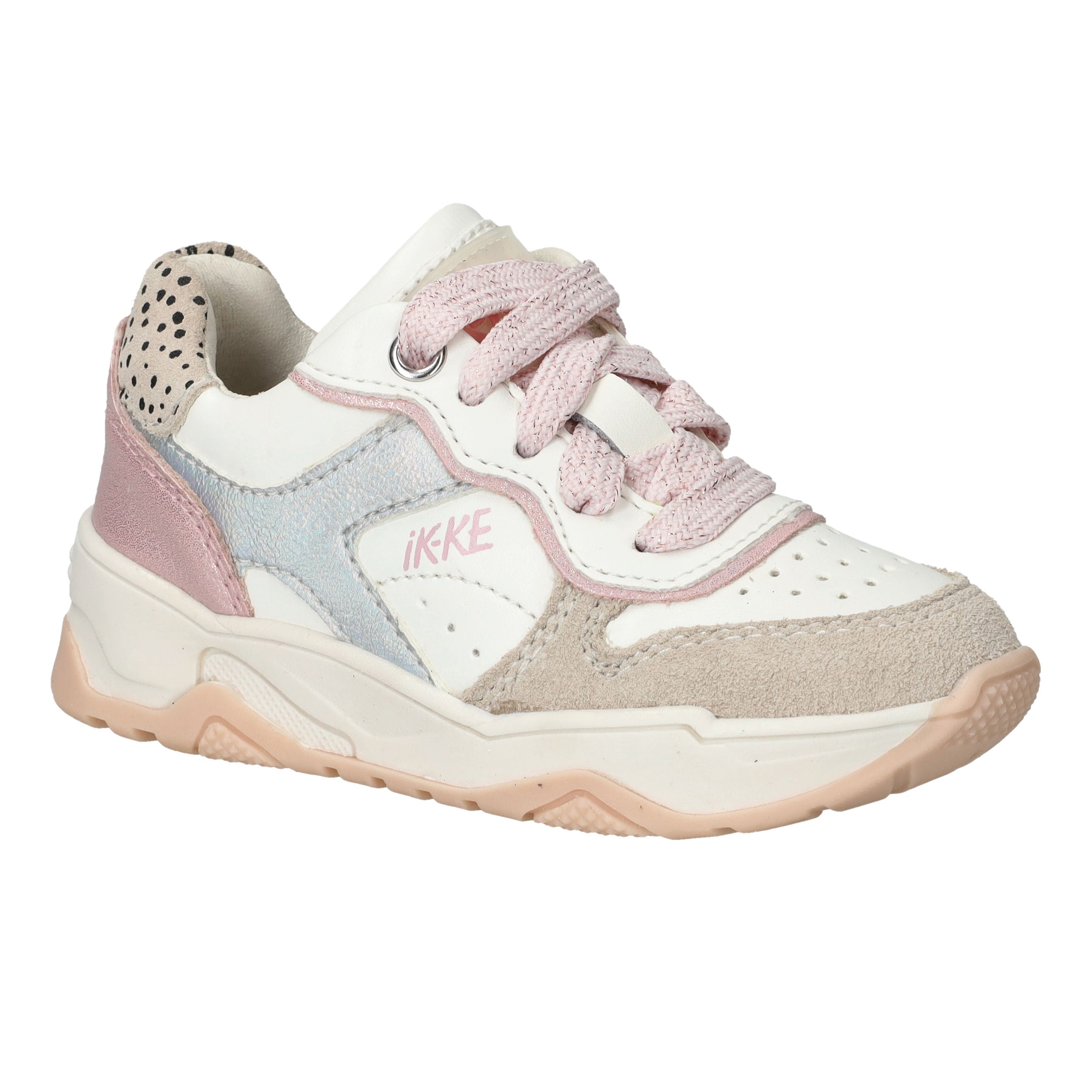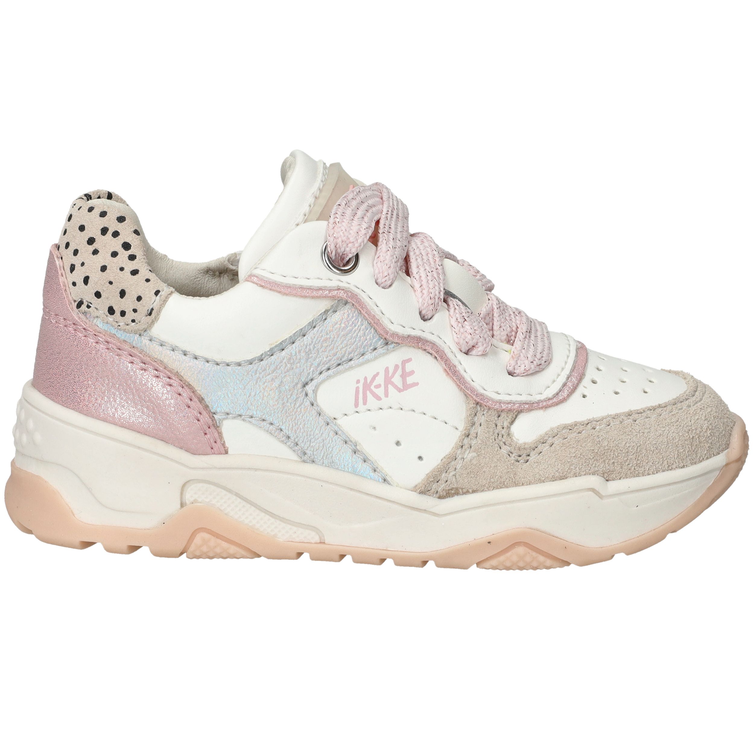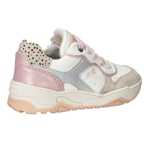 Sportieve IK-KE sneaker voor meiden in het wit met roze en metallic details. Extra handig is de veter- en ritssluiting voor een makkelijke instap.
