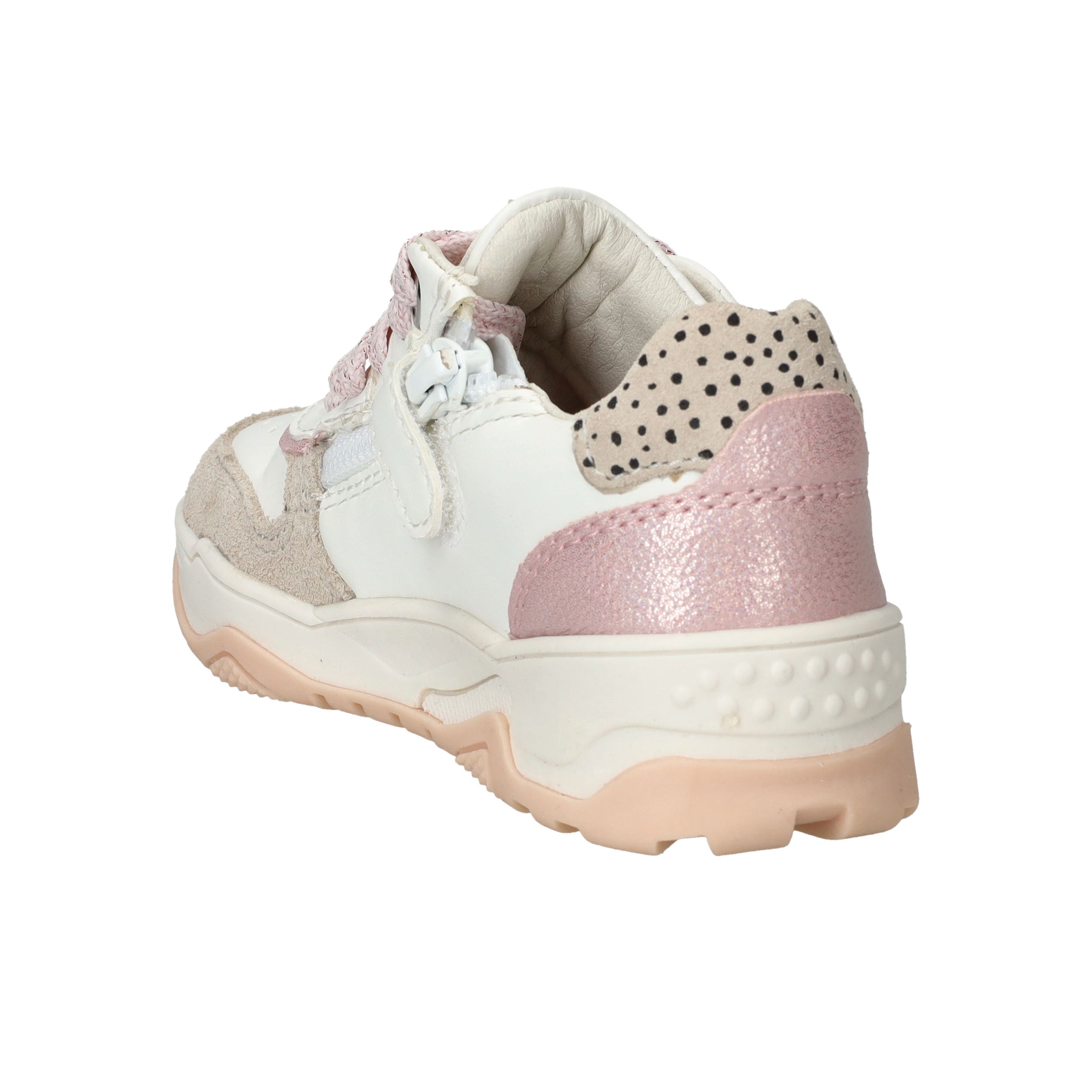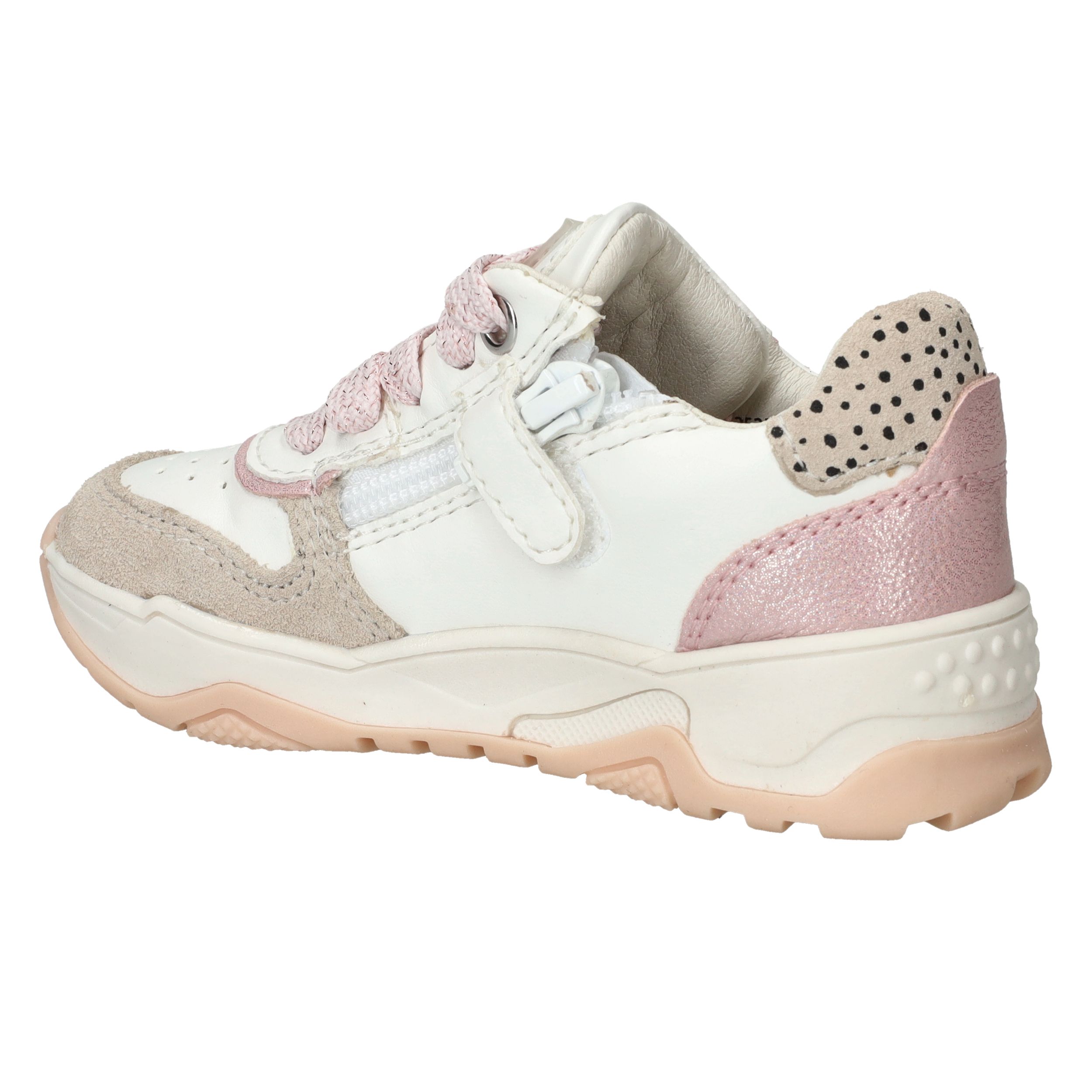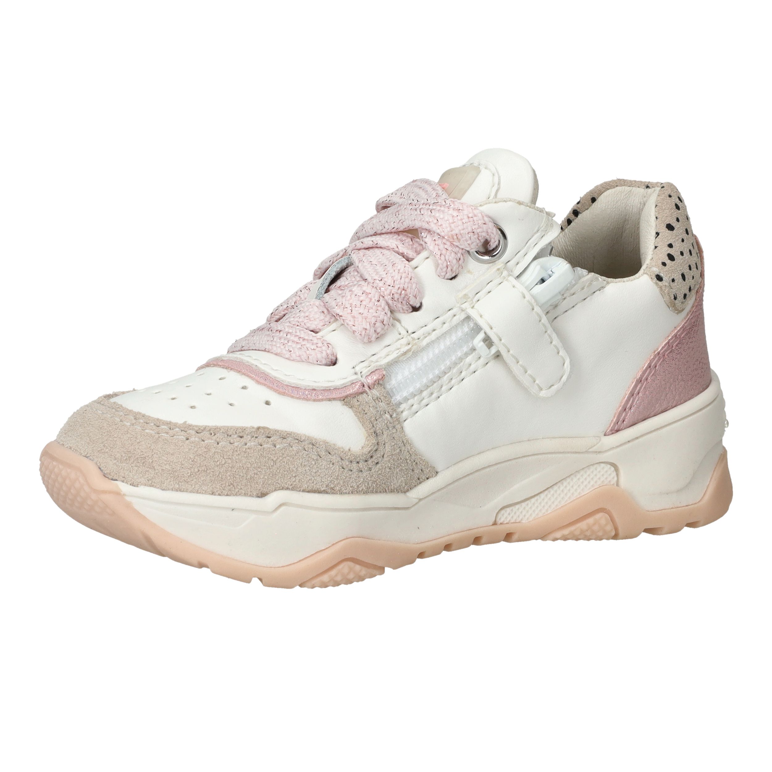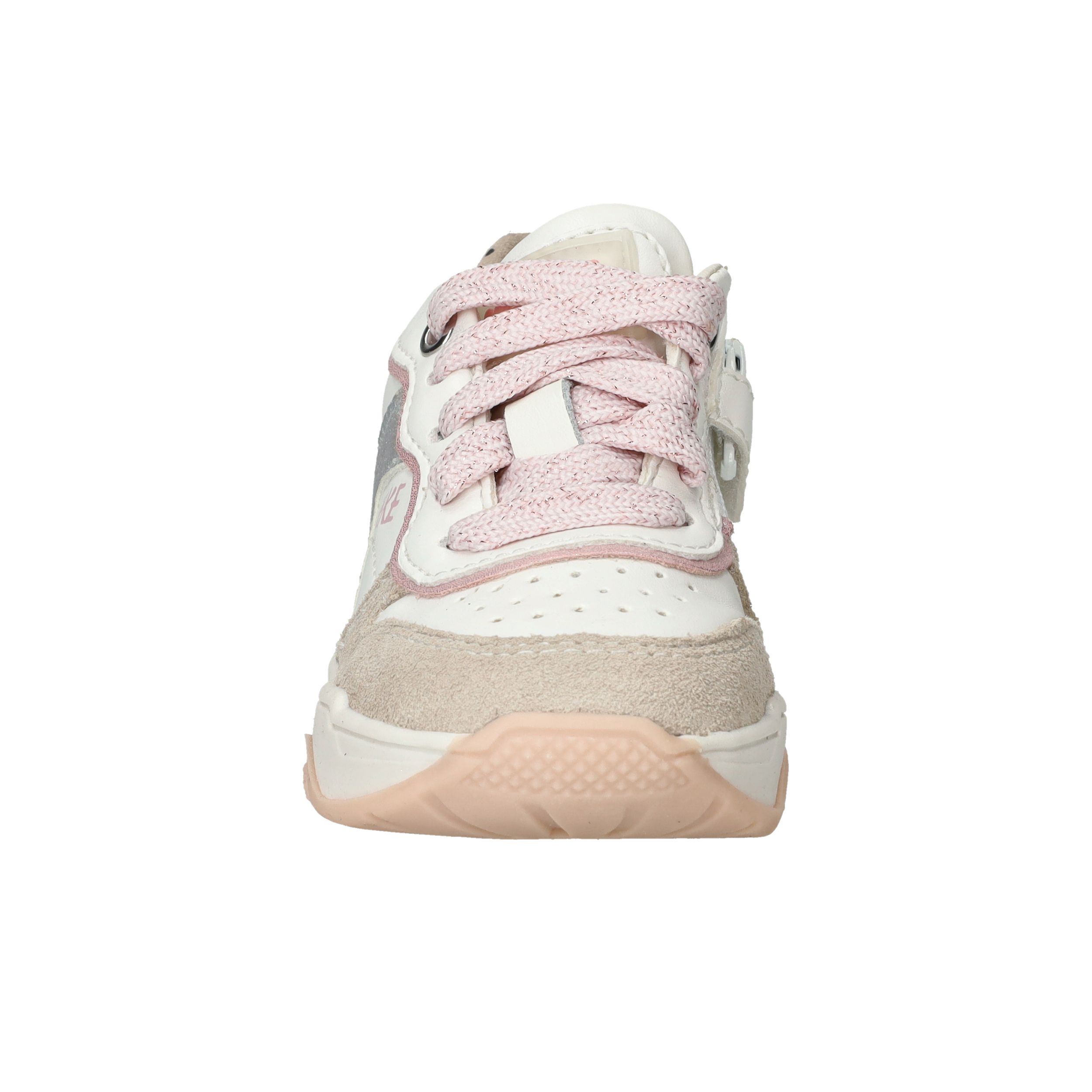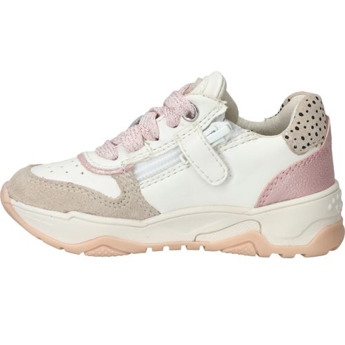 Sportieve IK-KE sneaker voor meiden in het wit met roze en metallic details. Extra handig is de veter- en ritssluiting voor een makkelijke instap.