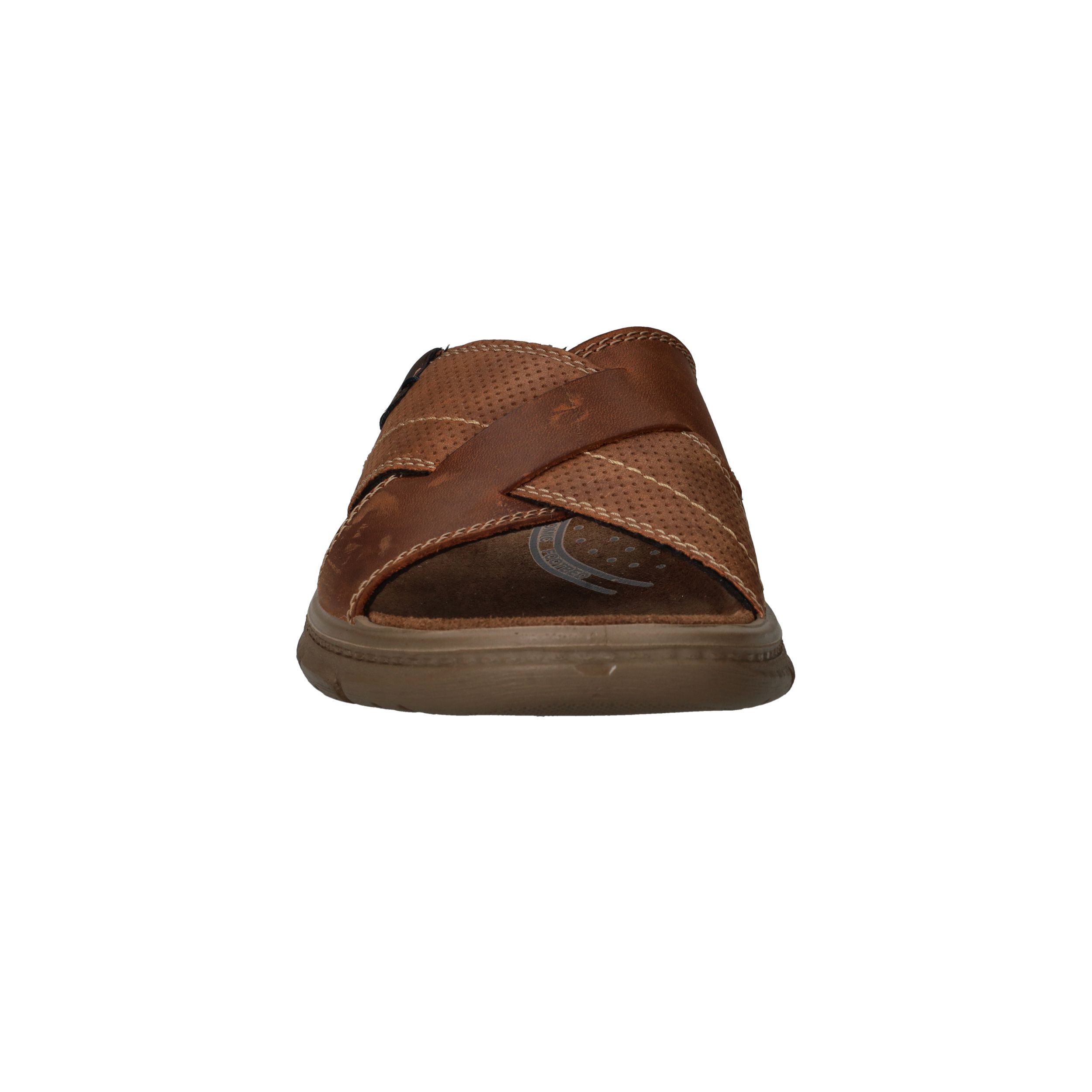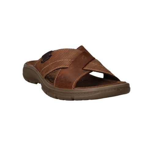 Deze bruine slippers van IIMAC zijn een comfortabele keuze voor heren die houden van kwaliteit en gemak. Het gekruiste bandontwerp van glad leer en kunstleer geeft een robuuste en stoere uitstraling, terwijl het zachte voetbed zorgt voor optimaal comfort tijdens warme dagen. Perfect voor thuis, op vakantie of een ontspannen zomerdag.