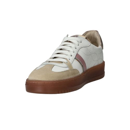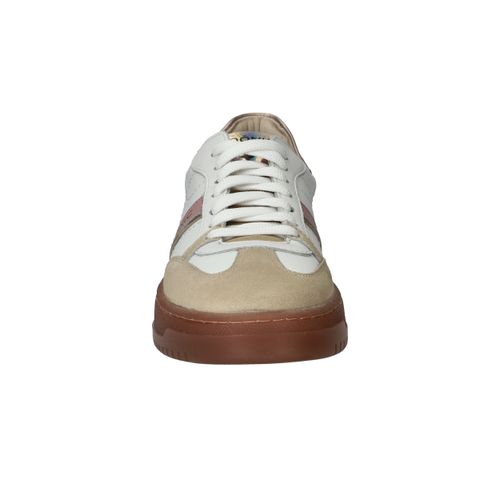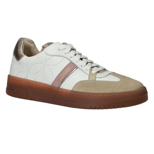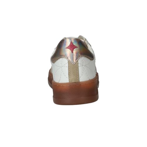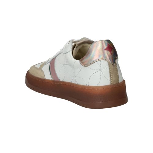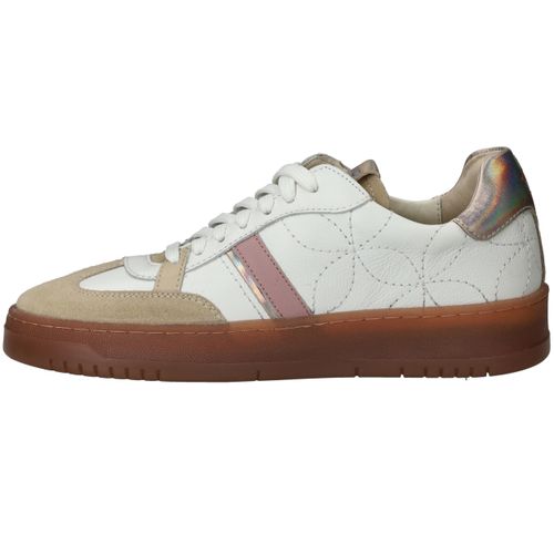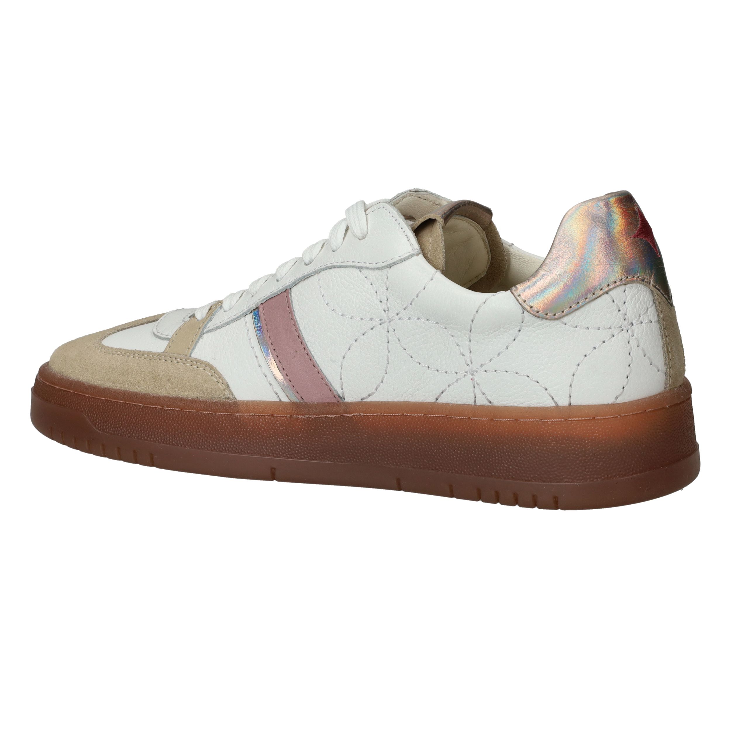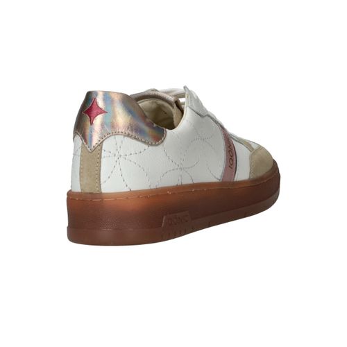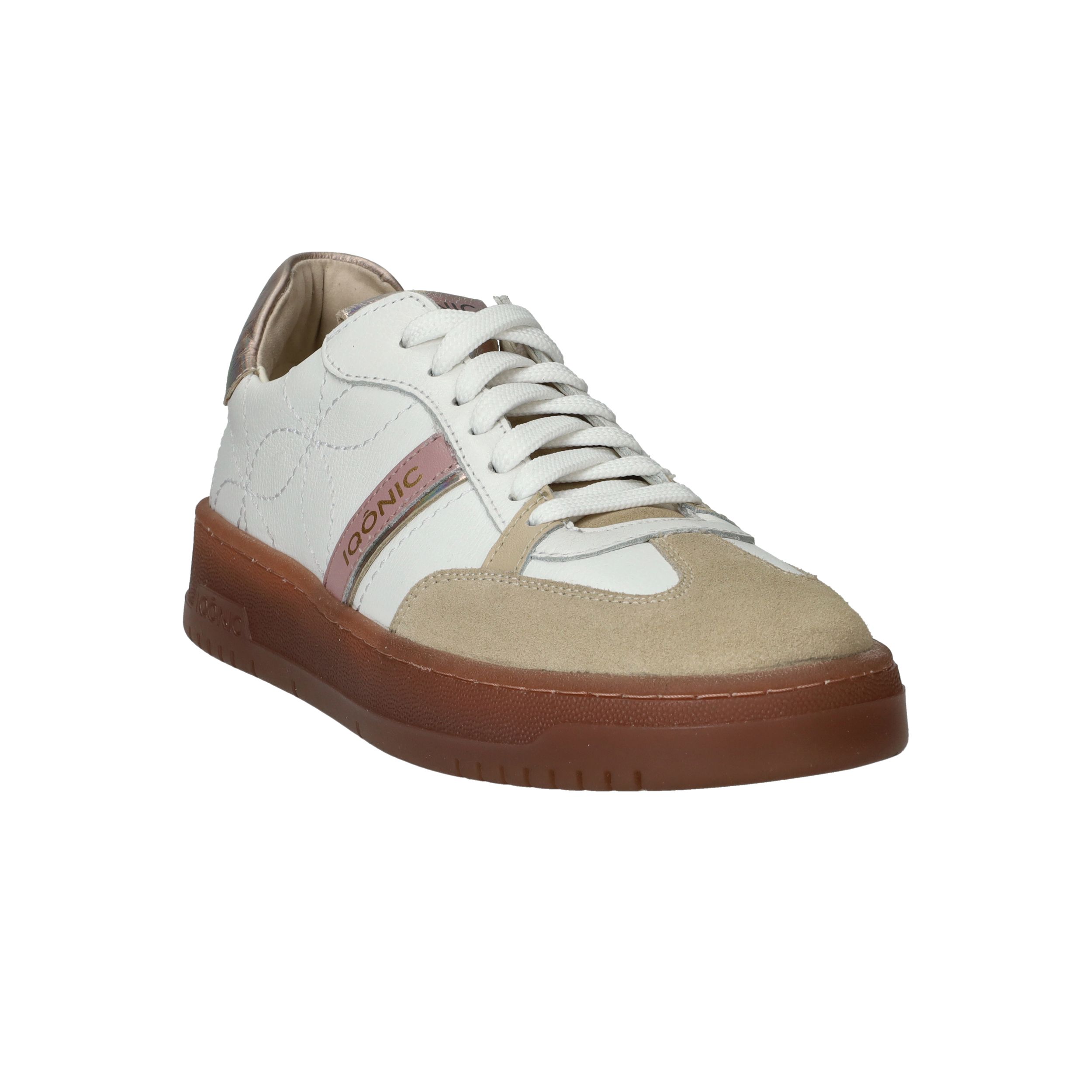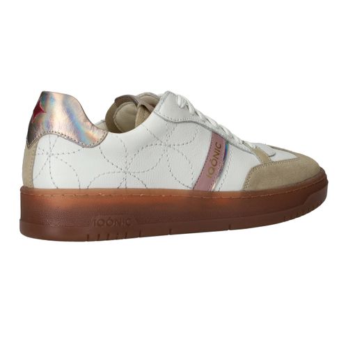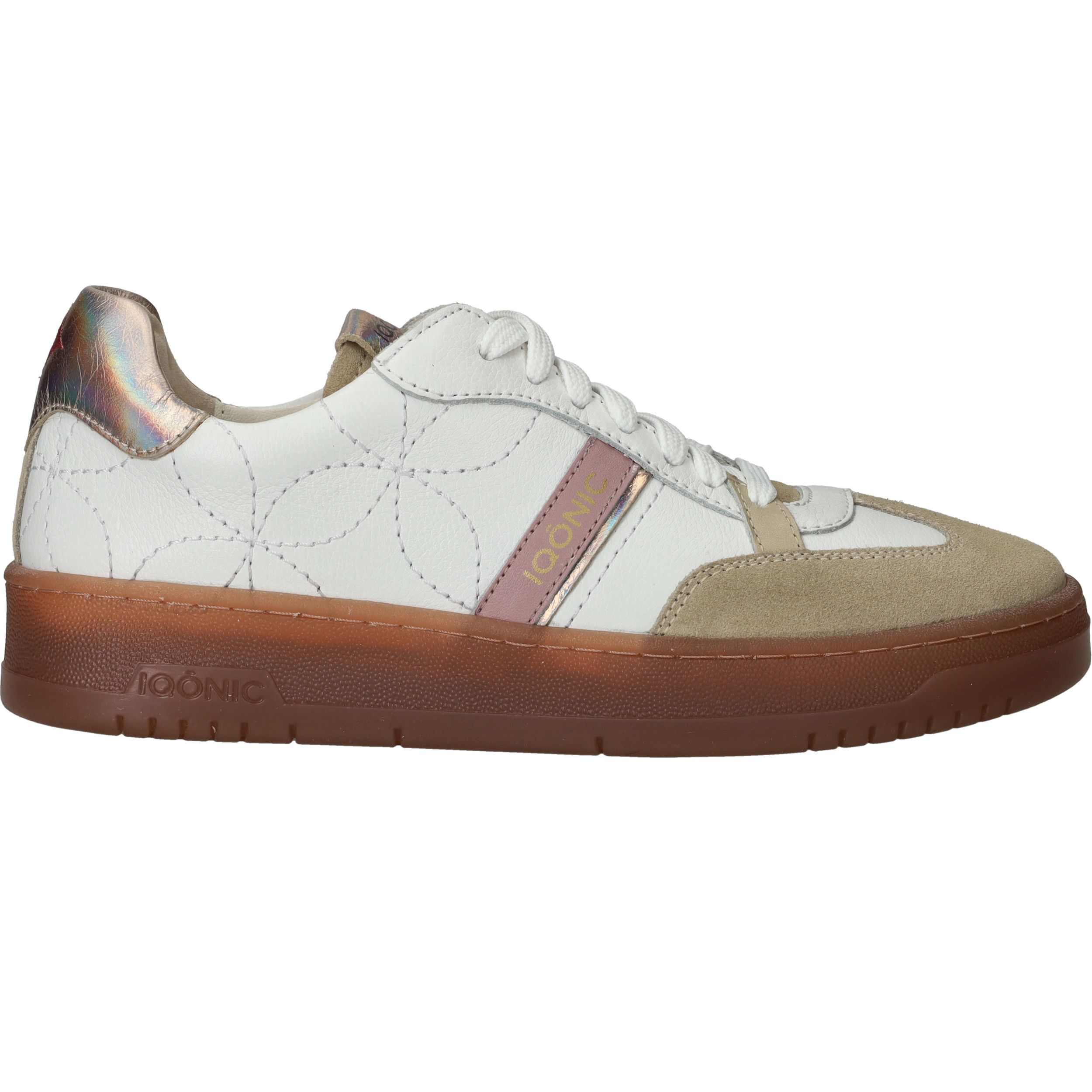 Kies voor deze mooie damessneaker van IQÔNIC! De sneaker is wit en beige van kleur en heeft leuke accenten van metallic en roze. Ook krijg je bij deze schoenen een extra setje veters.