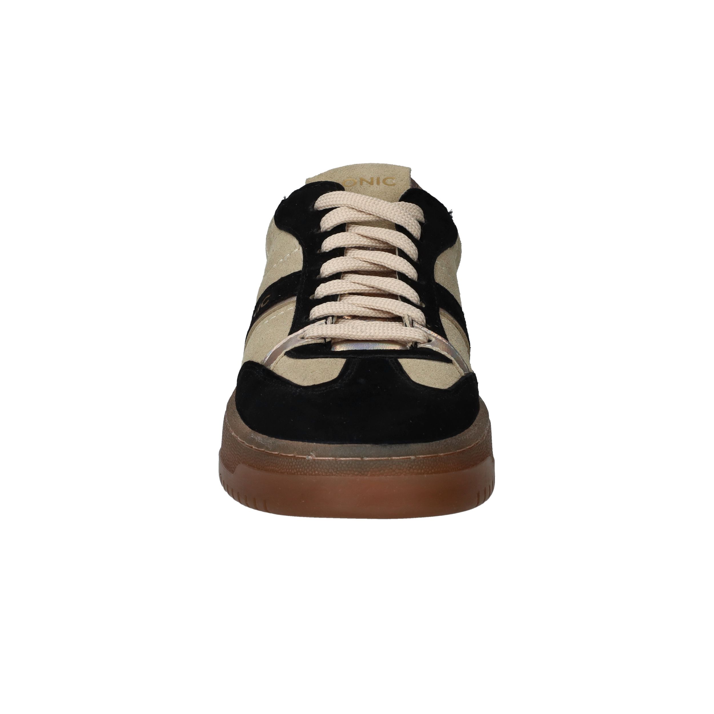 Ga voor deze IQÔNIC sneaker voor dames! De sneaker heeft een leuk sierstiksel en door de beige en zwarte kleur past de schoen bij al je outfits.