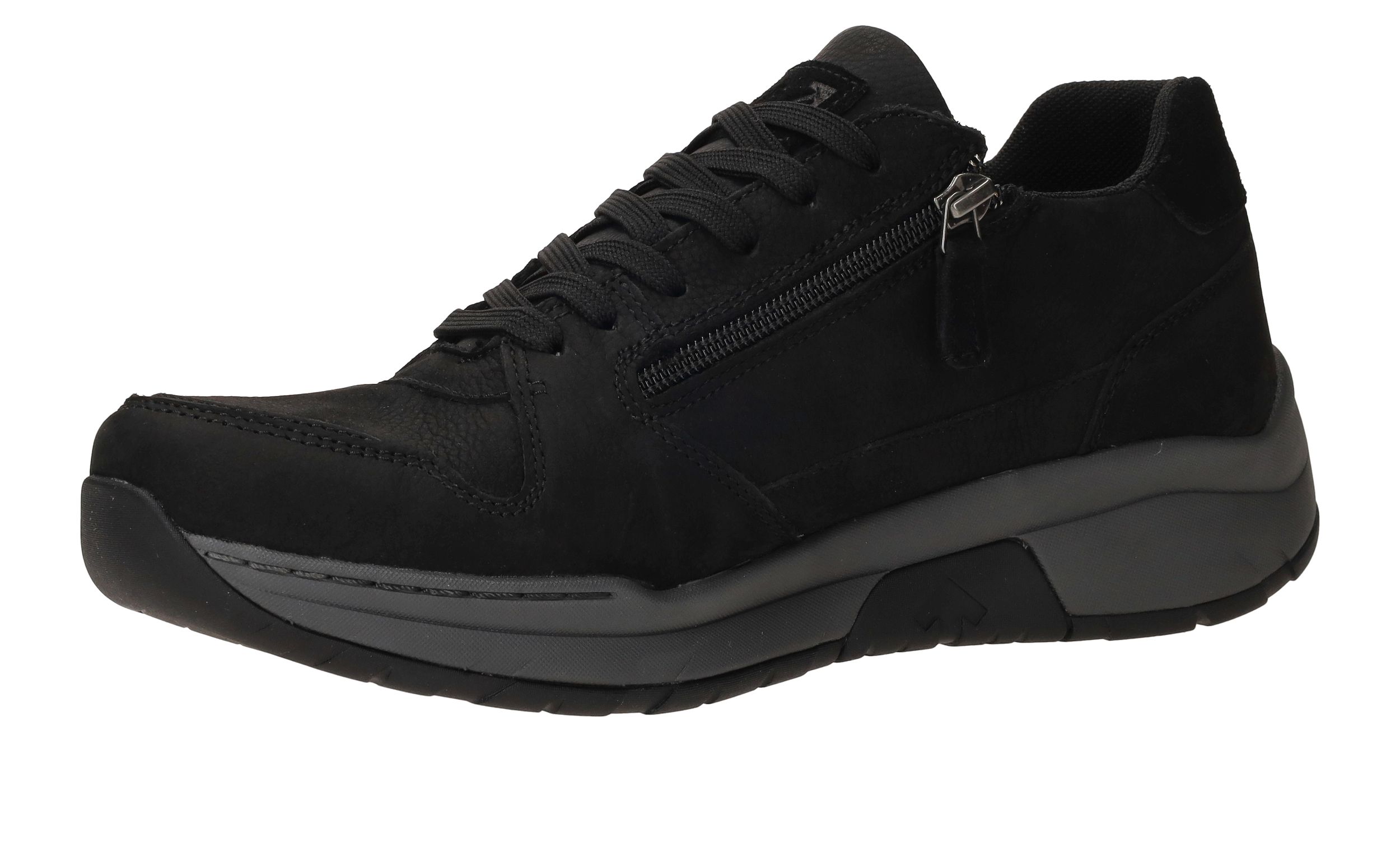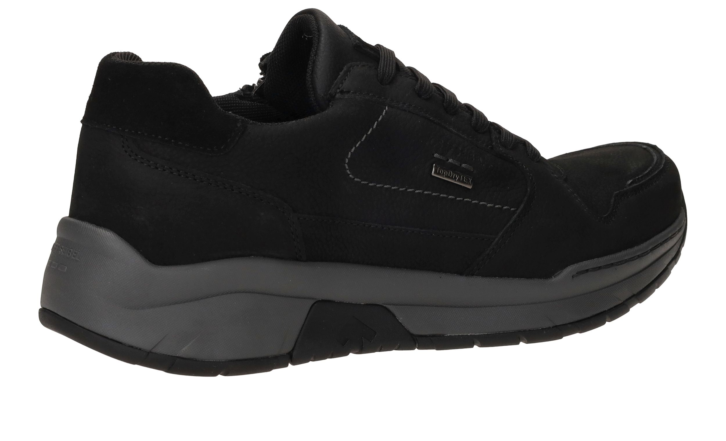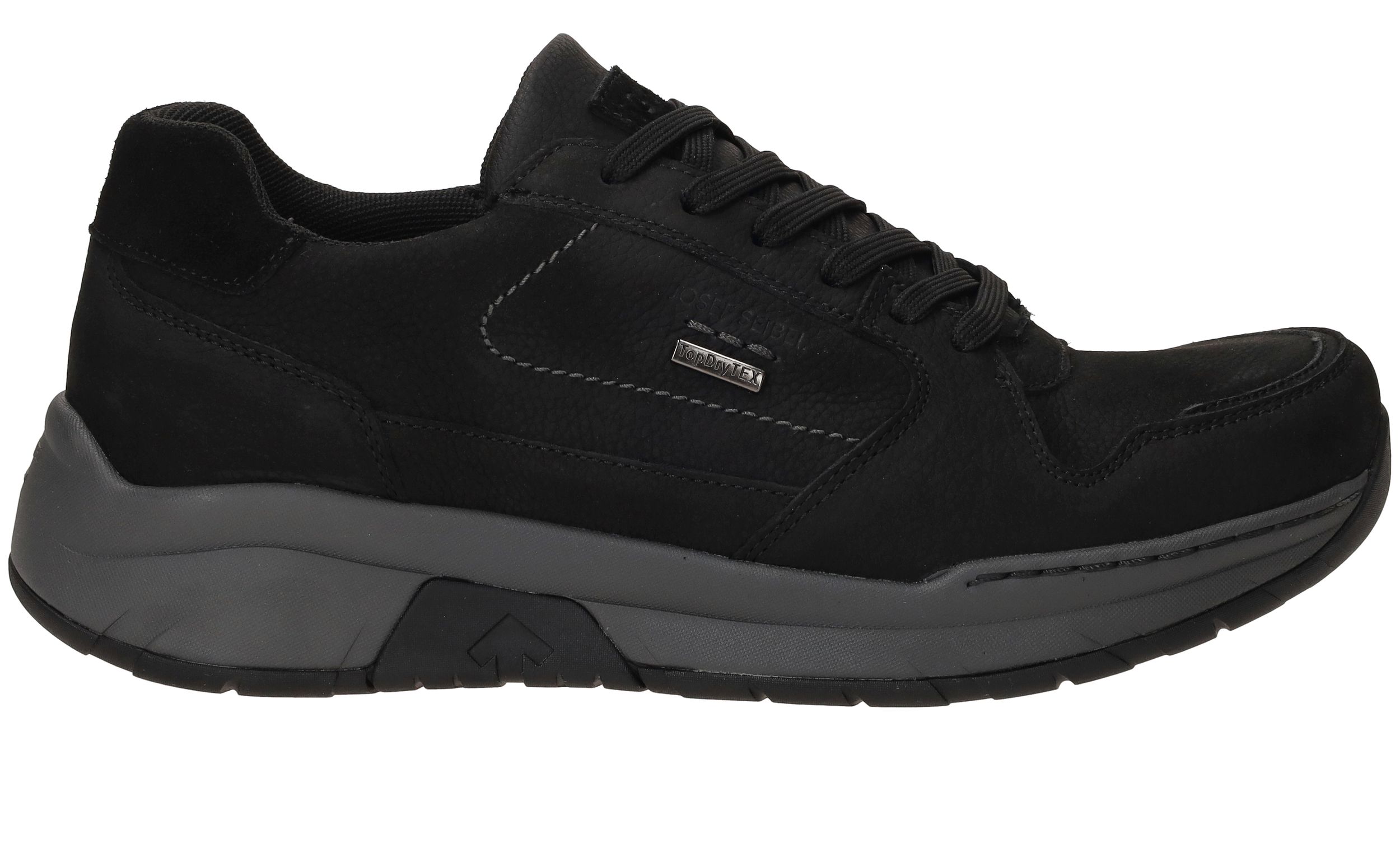 Sportieve Josef Seibel Mitchell 50 sneaker gemaakt van leer. De herensneaker is zwart en de schoen is voorzien van TopdryTex, dit zorgt ervoor dat de schoen water- en vuilafstotend is.