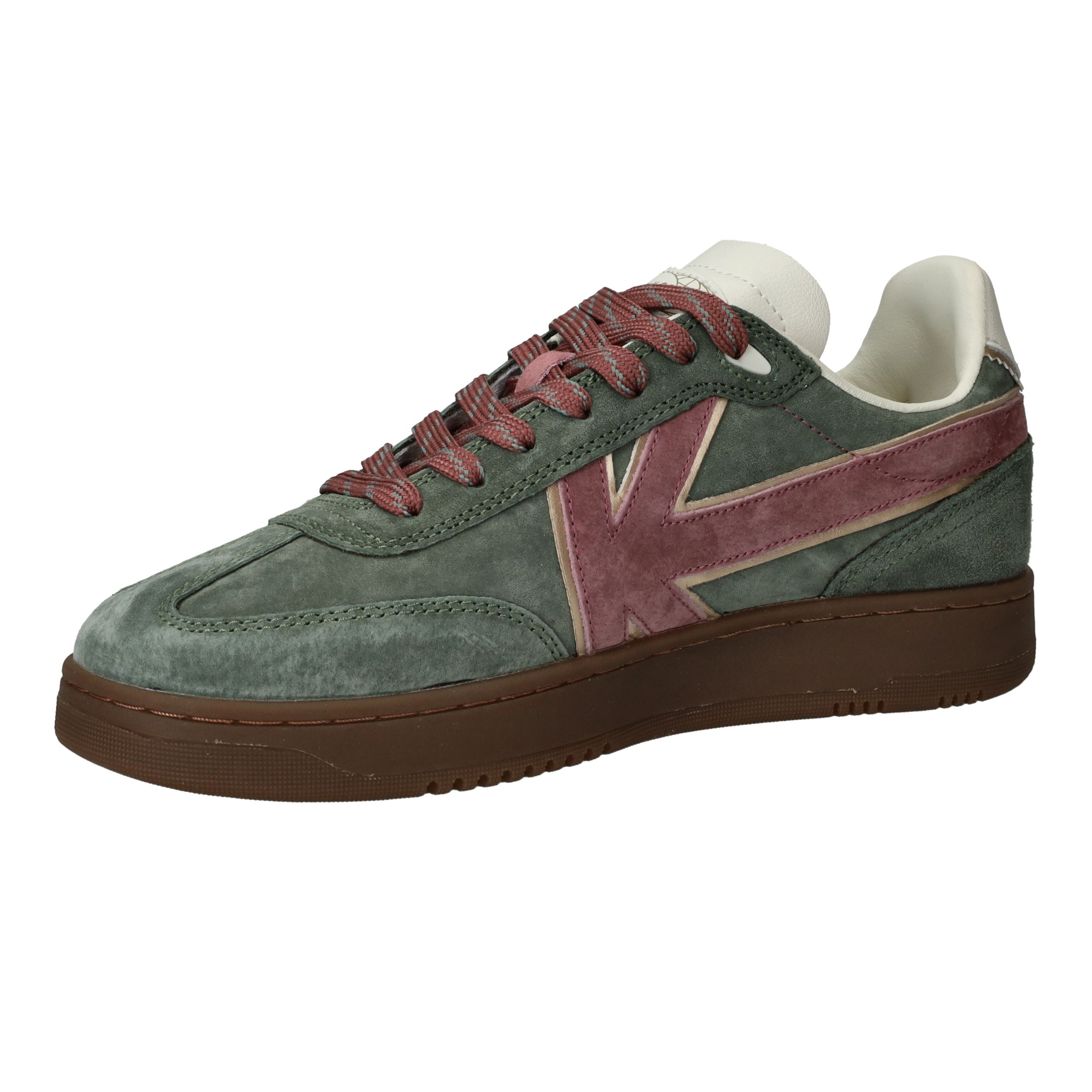 De Kaotiko Boston V sneakers zijn een echte eyecatcher dankzij de velvet groene suèdelook met zachtroze accenten. Deze sneakers hebben een retro-uitstraling, maar zijn helemaal van nu. Het bovenwerk van suède en kunstleer in combinatie met de zachte textielvoering zorgt voor een comfortabele pasvorm en stijlvolle look. Perfect voor dames die net even anders durven zijn, maar niet inleveren op comfort.