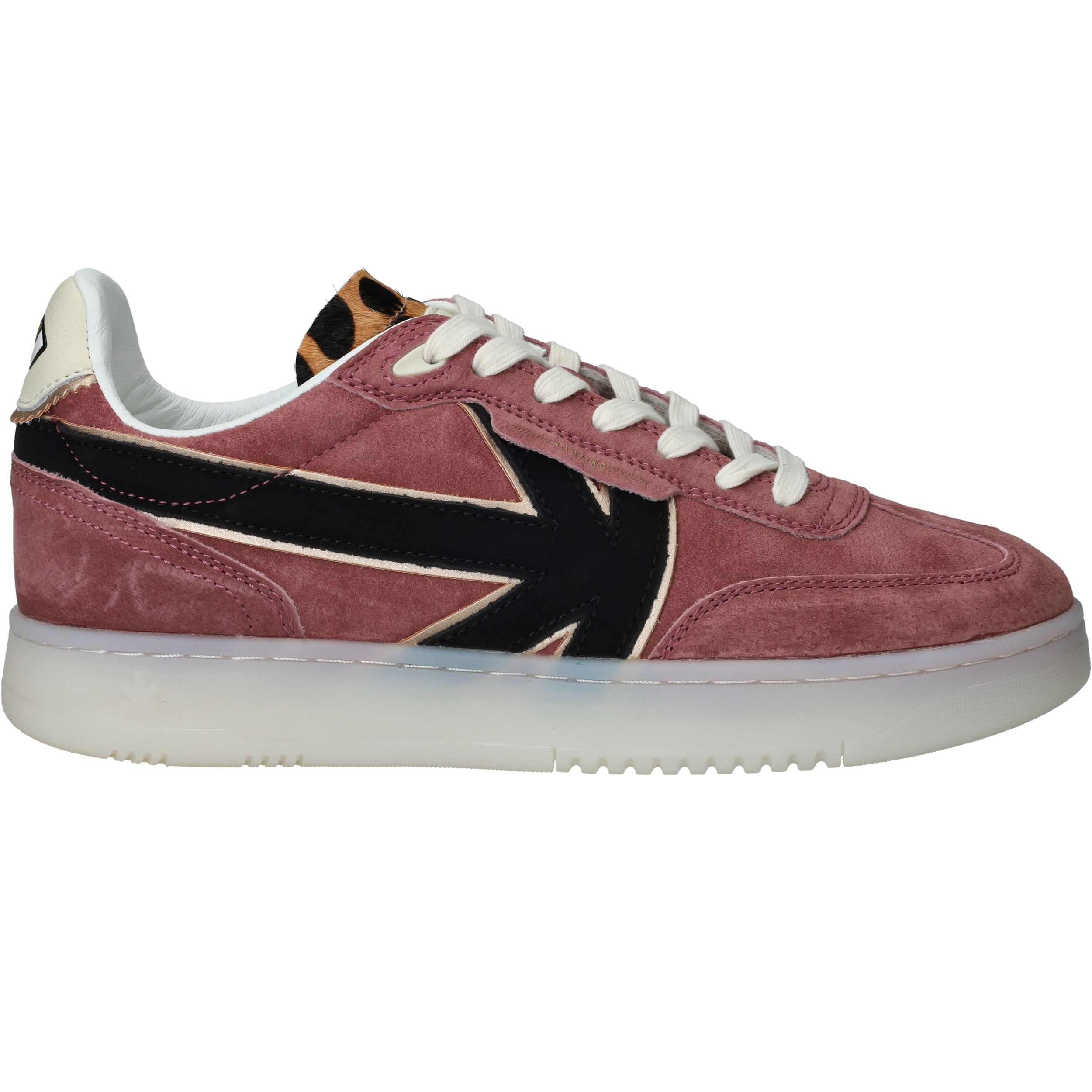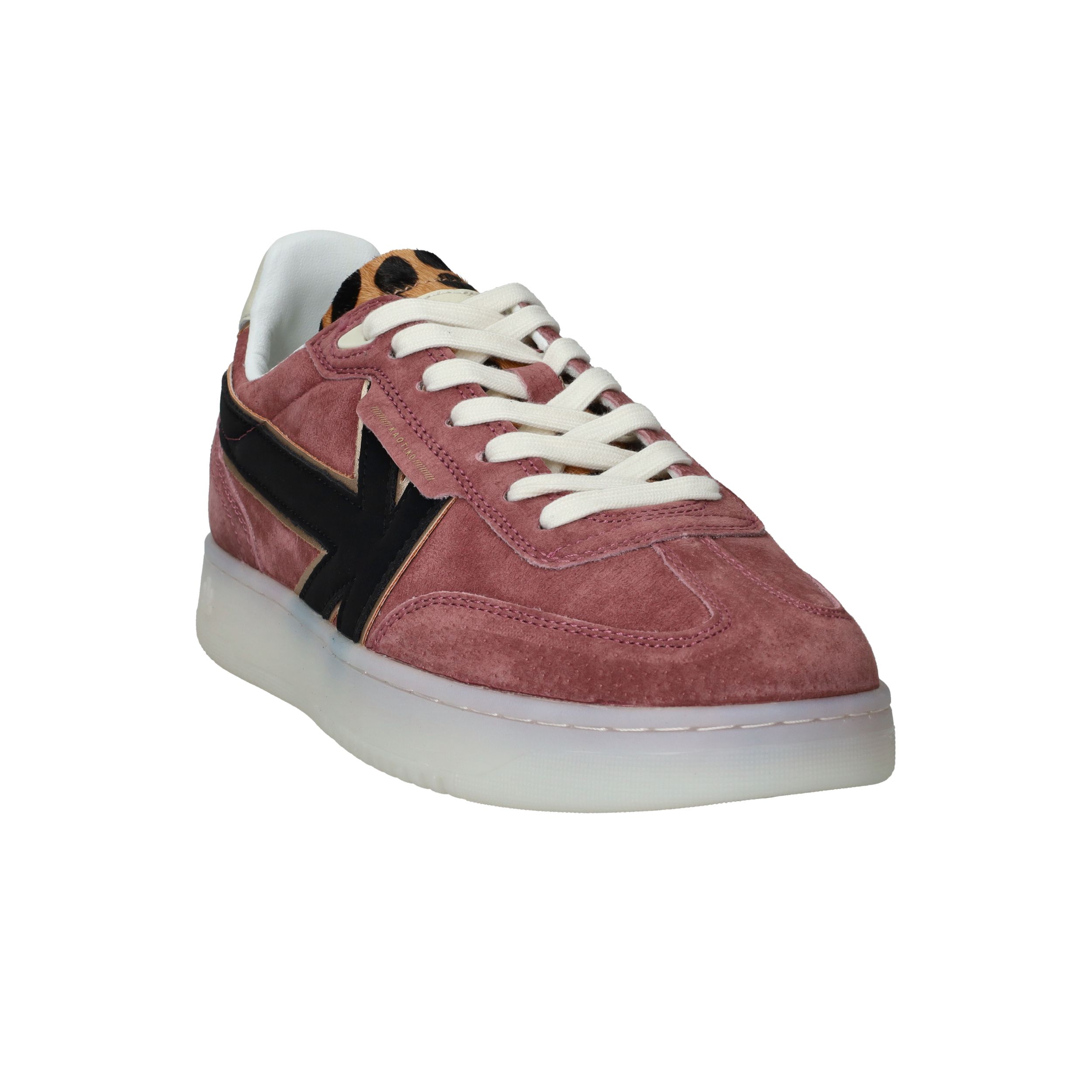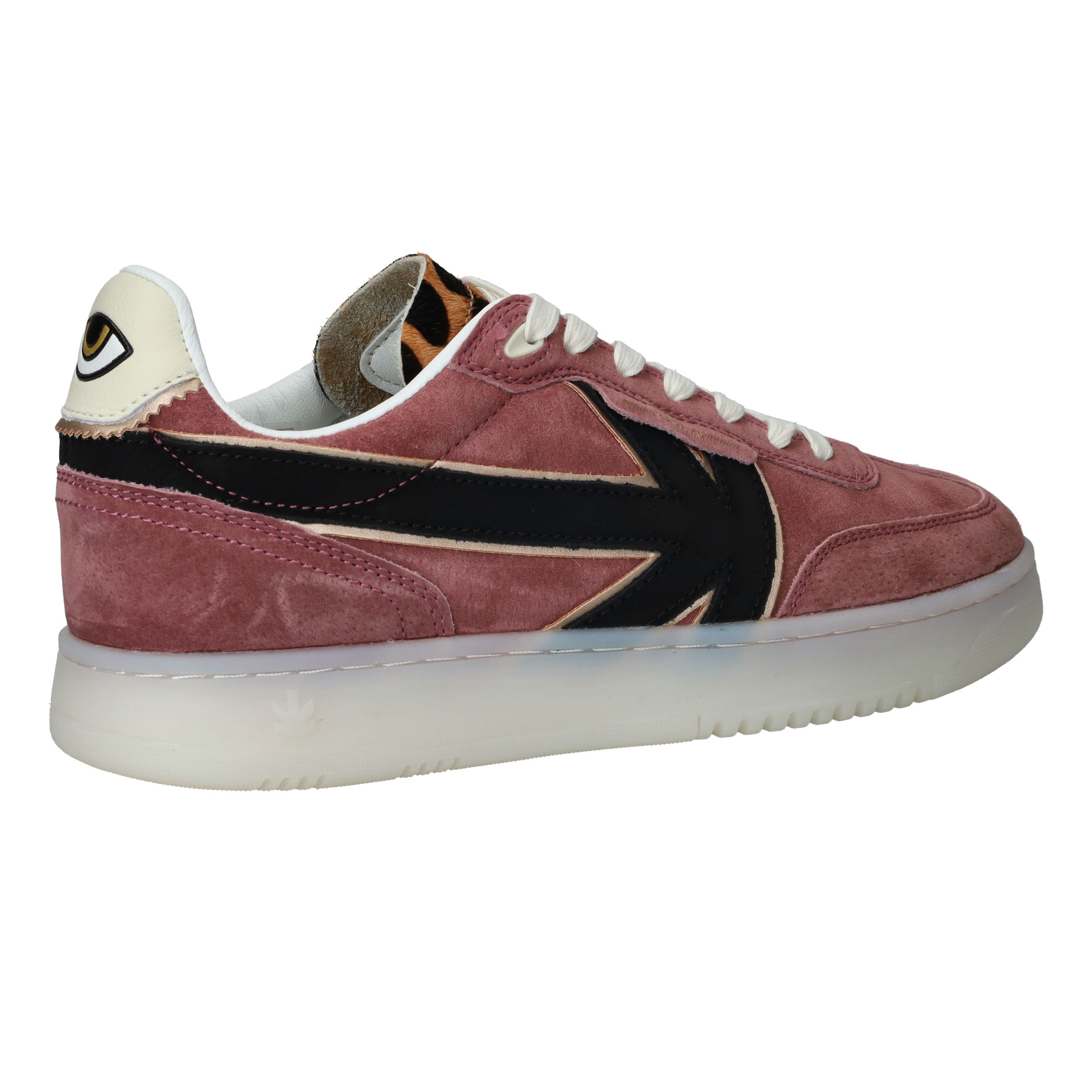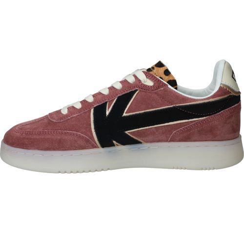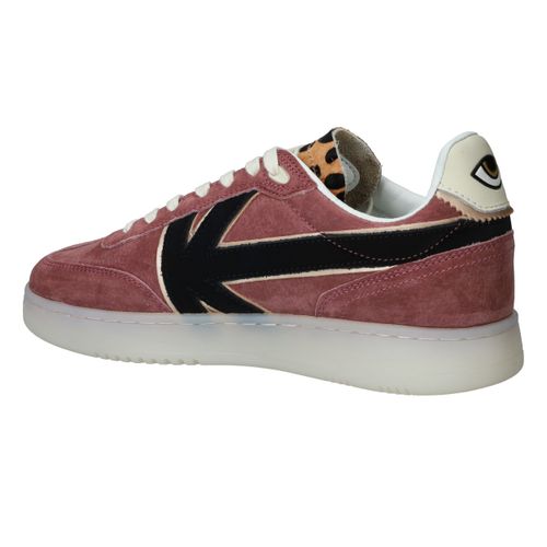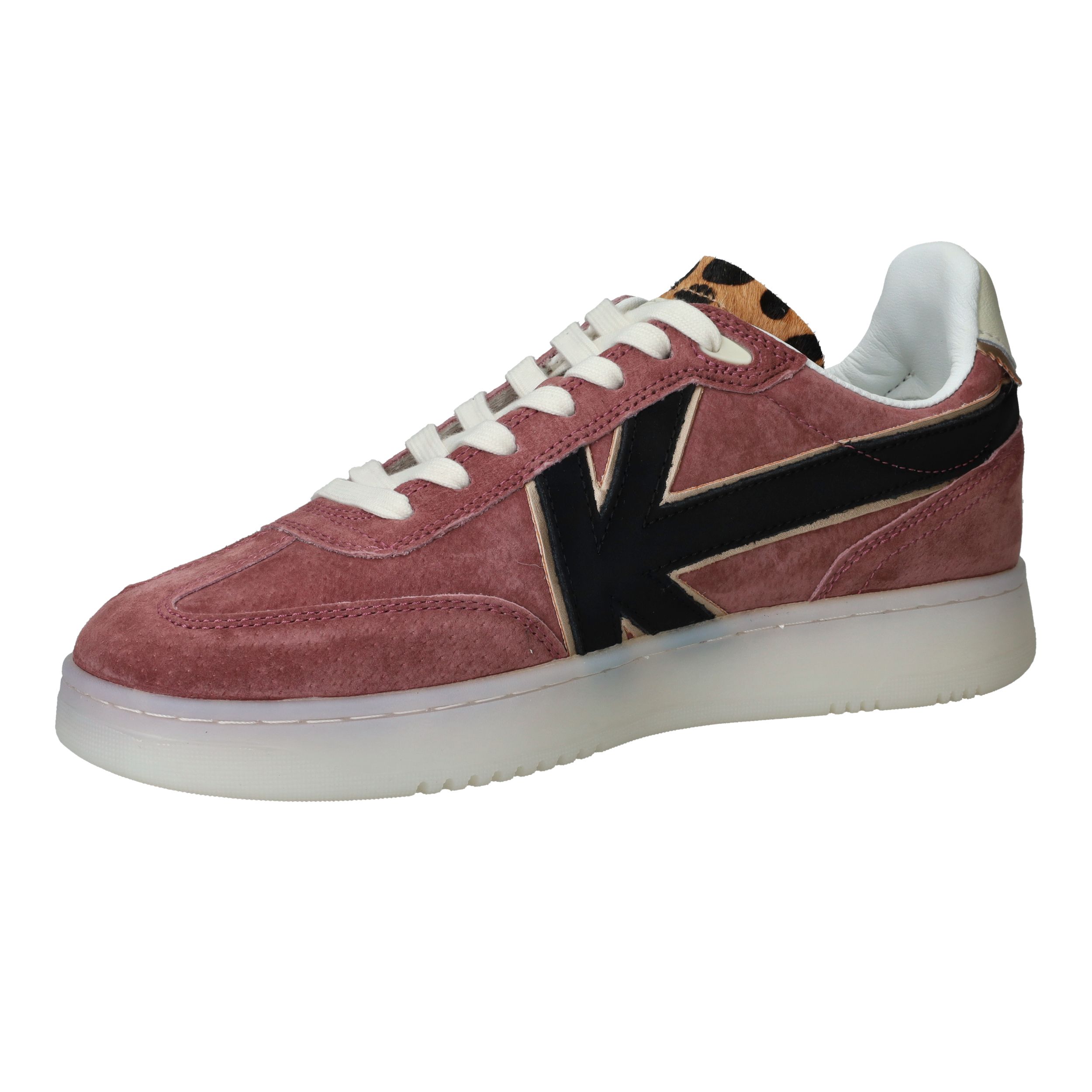 Gave Kaotiko Boston V sneaker voor dames. De sneaker is gemaakt van roze suède en afgewerkt met een zwarte streep en dierenprint detail.