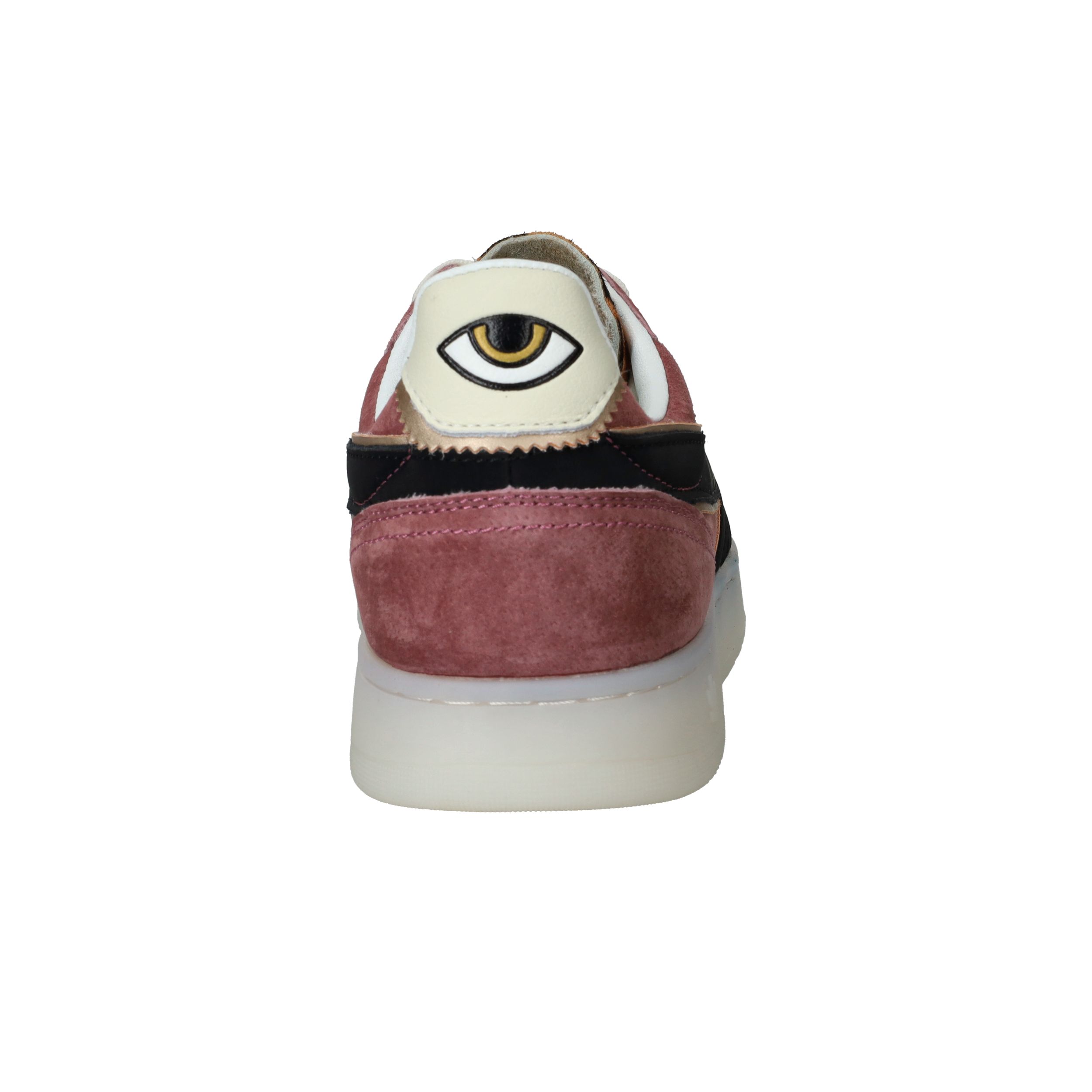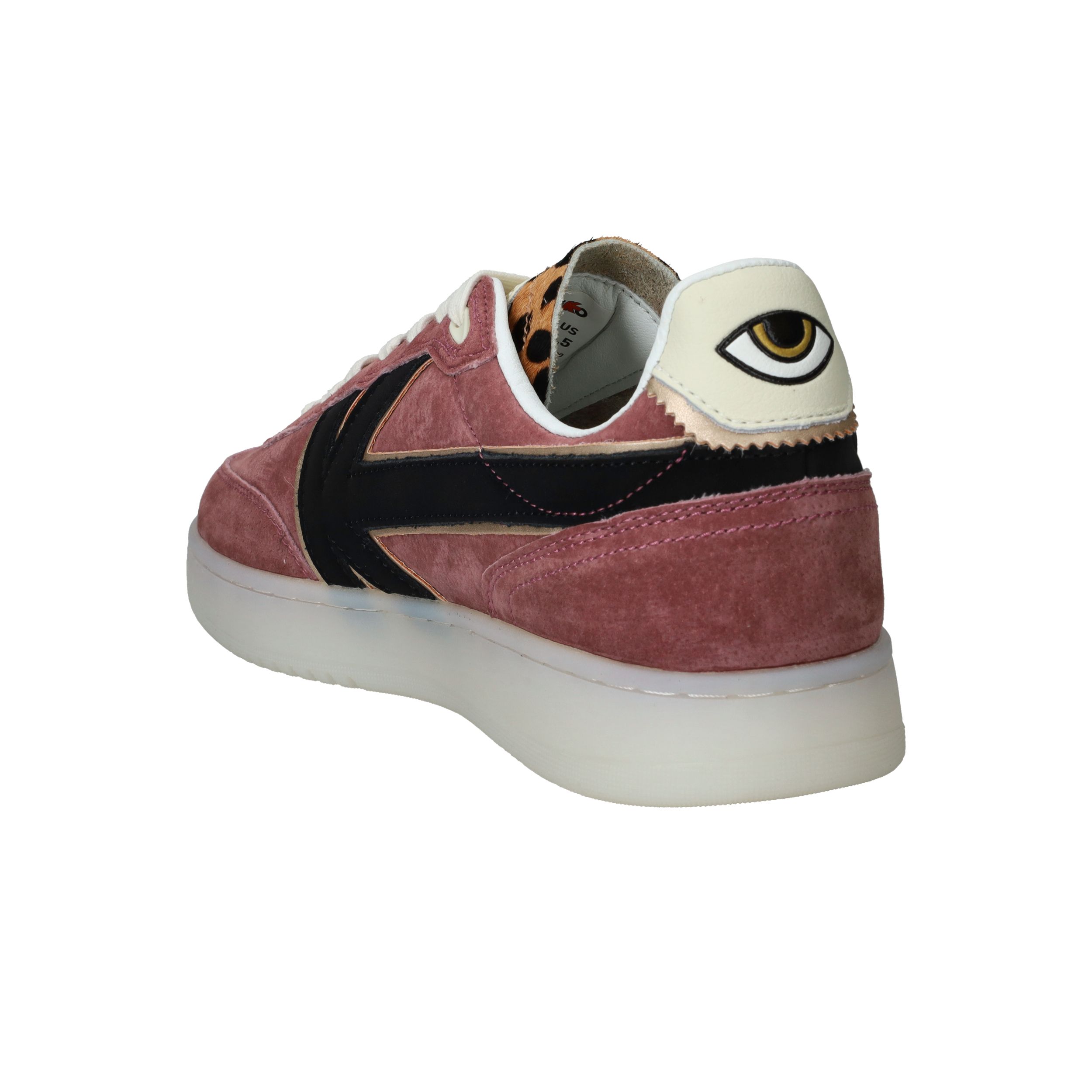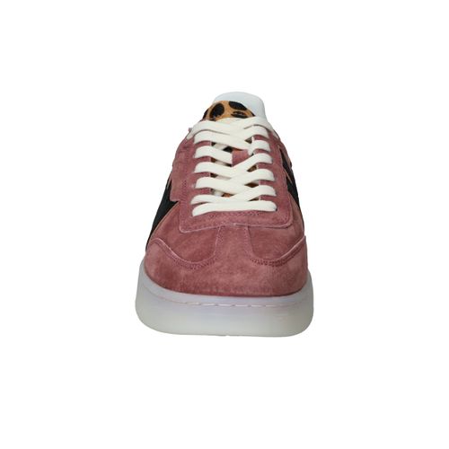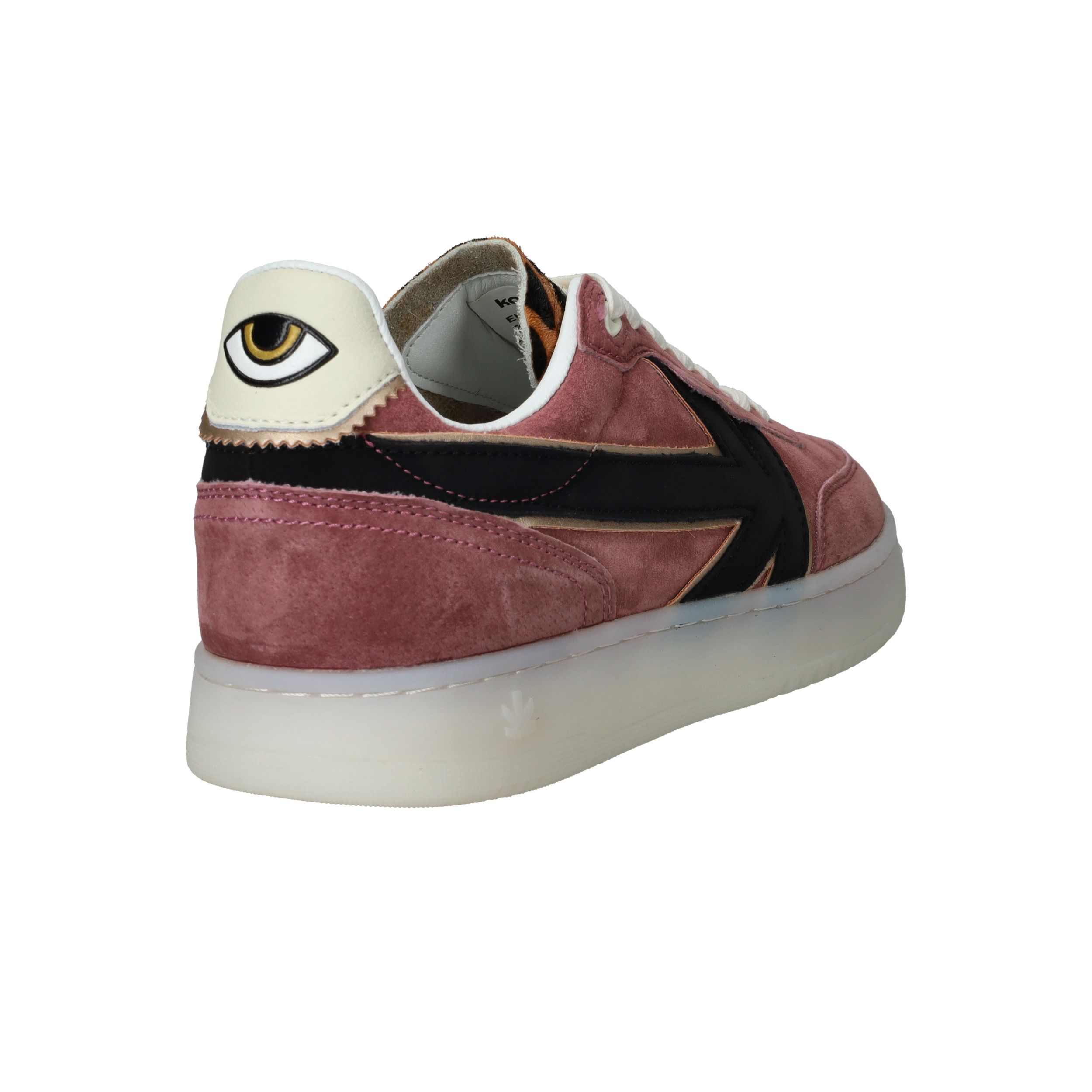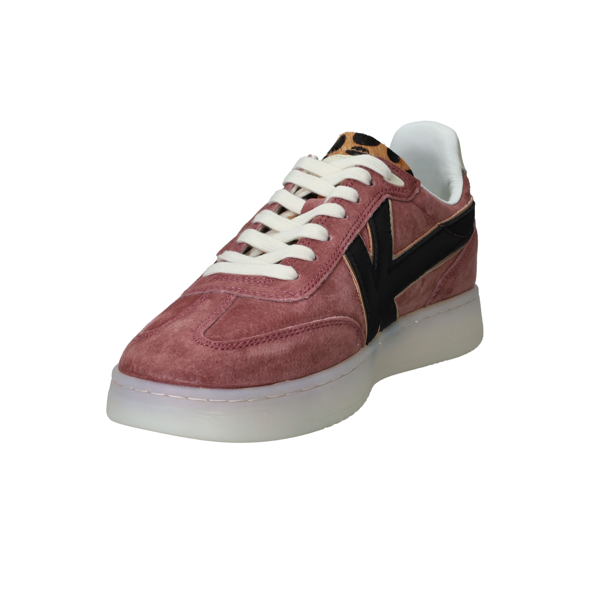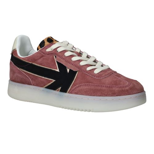 Gave Kaotiko Boston V sneaker voor dames. De sneaker is gemaakt van roze suède en afgewerkt met een zwarte streep en dierenprint detail.